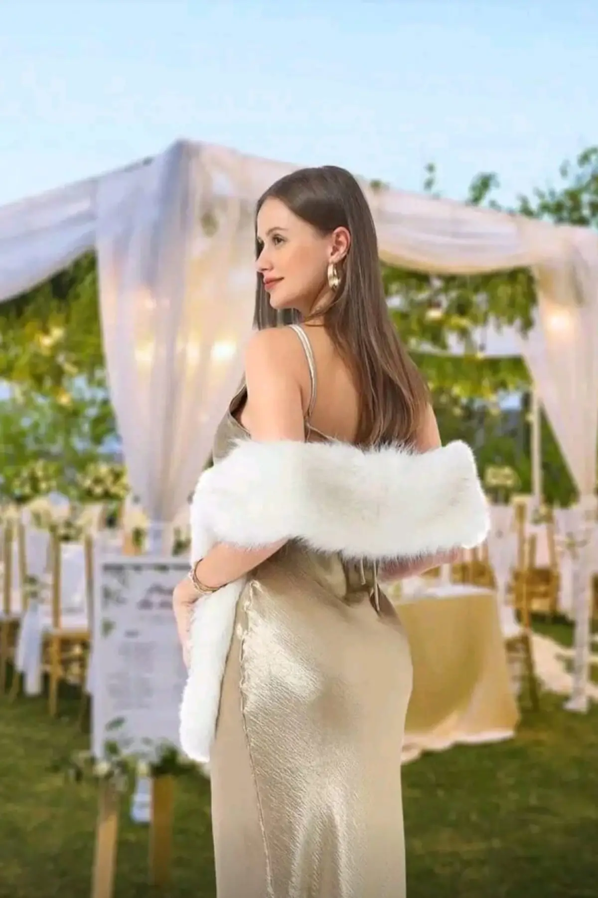 Kürk Orijinal Beyaz Seksi Omuzluk Şık Kürk