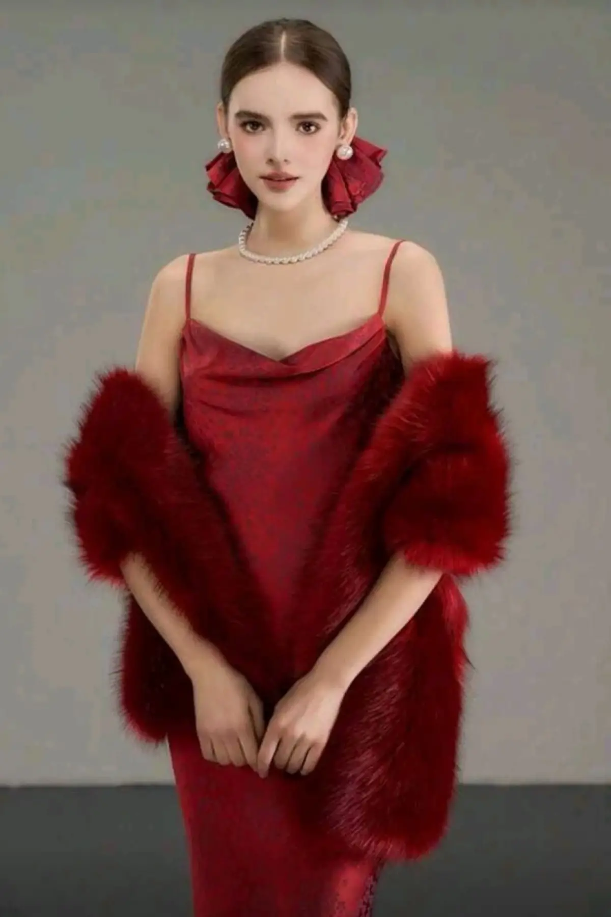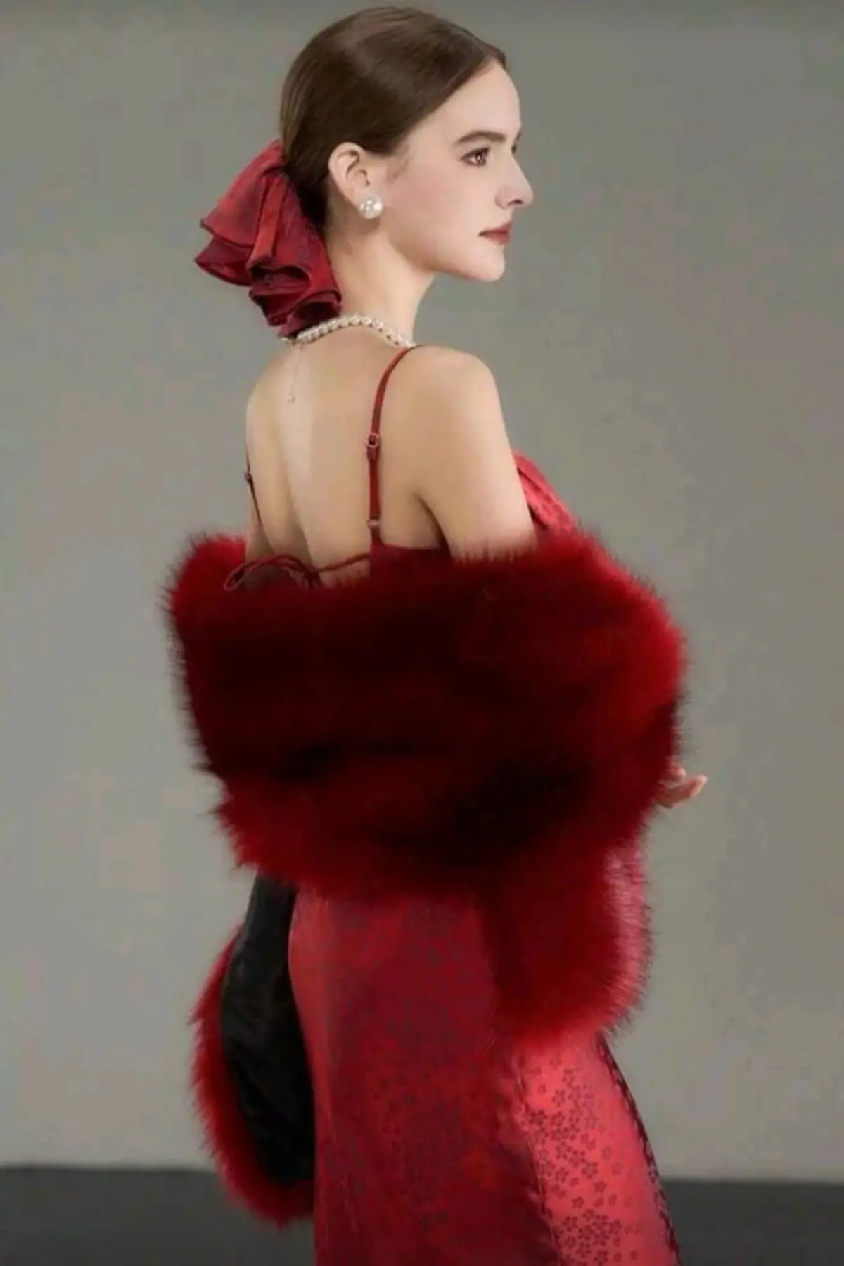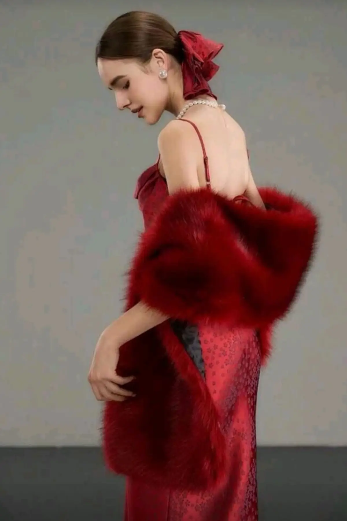 Kürk Orijinal Kırmızı Seksi Omuzluk Şık Kürk