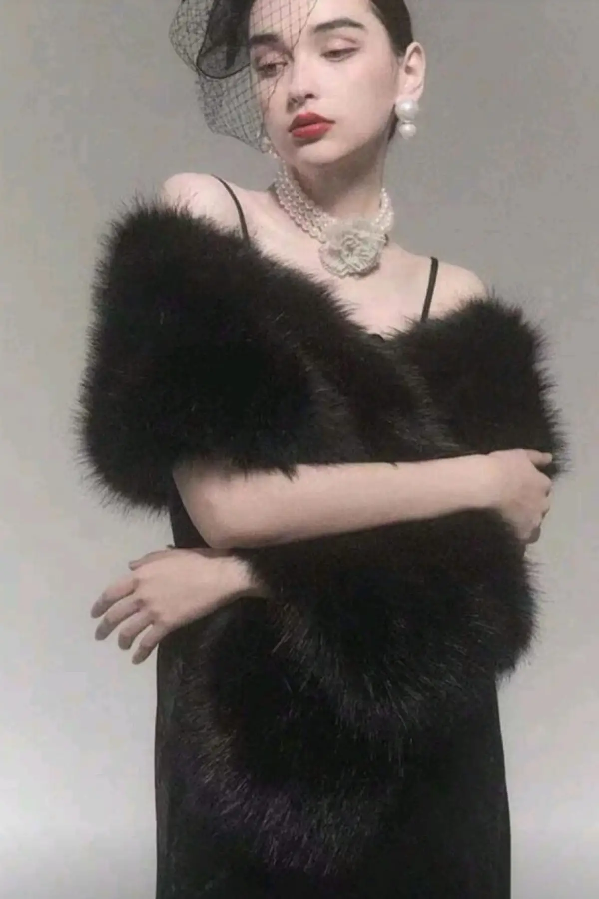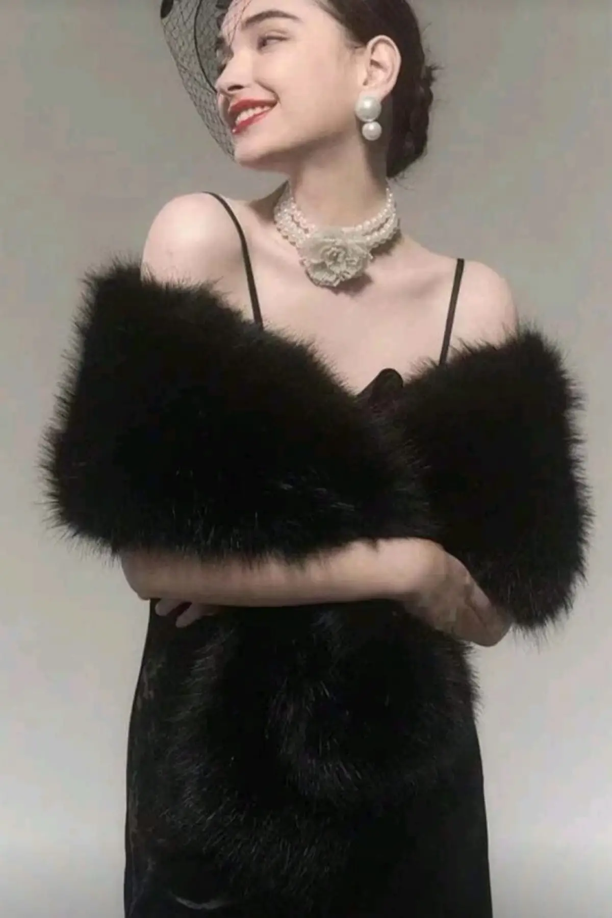 Kürk Orijinal Siyah Seksi Omuzluk Şık Kürk