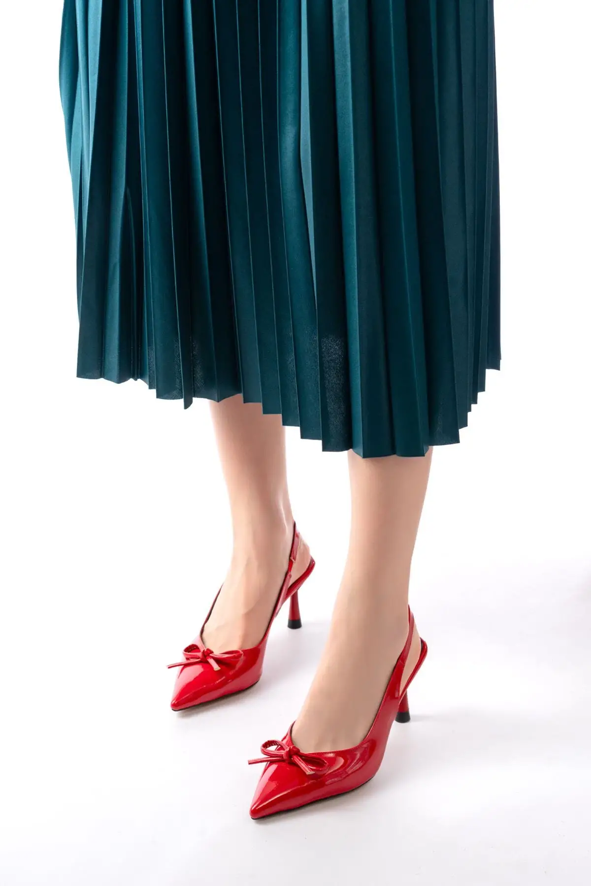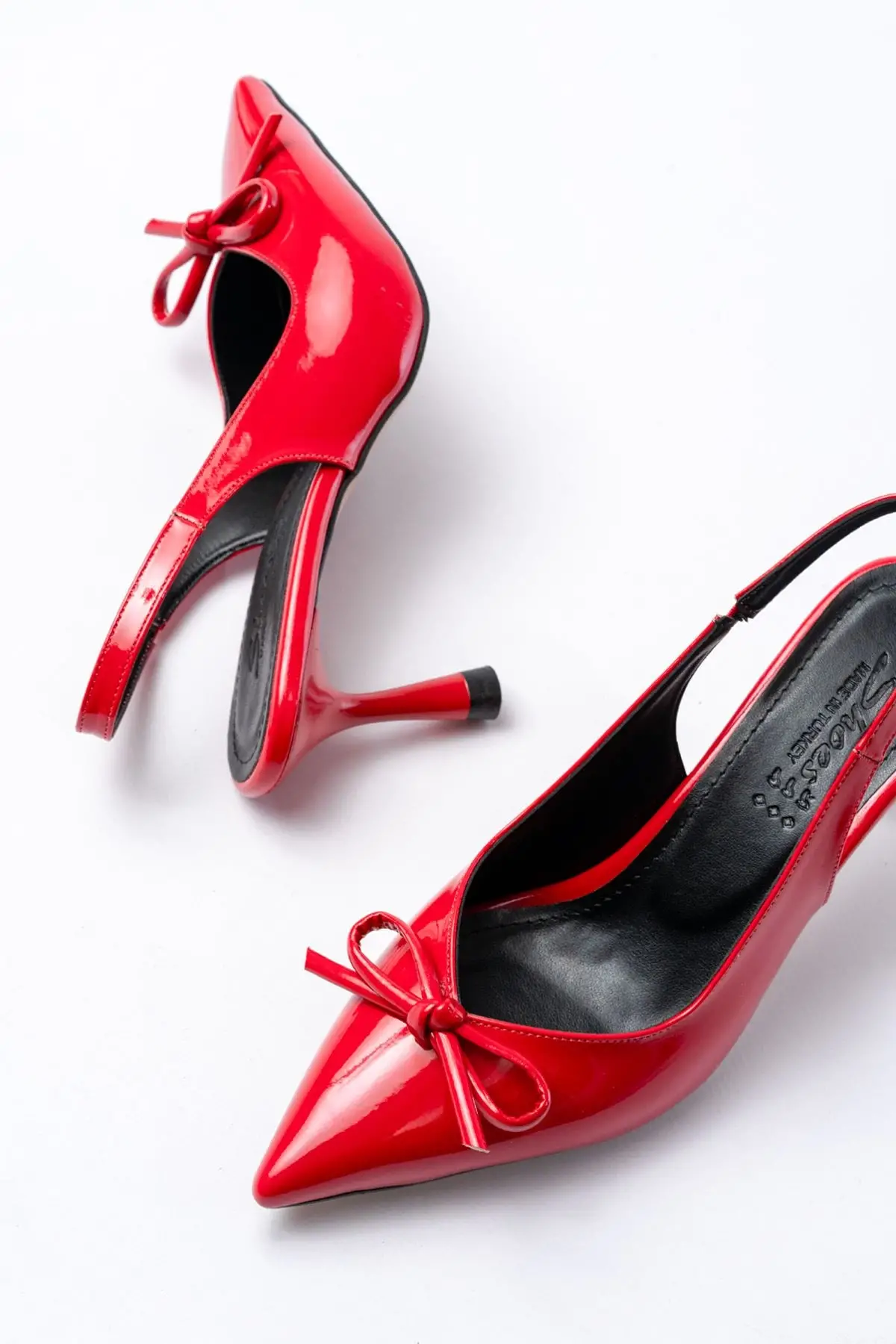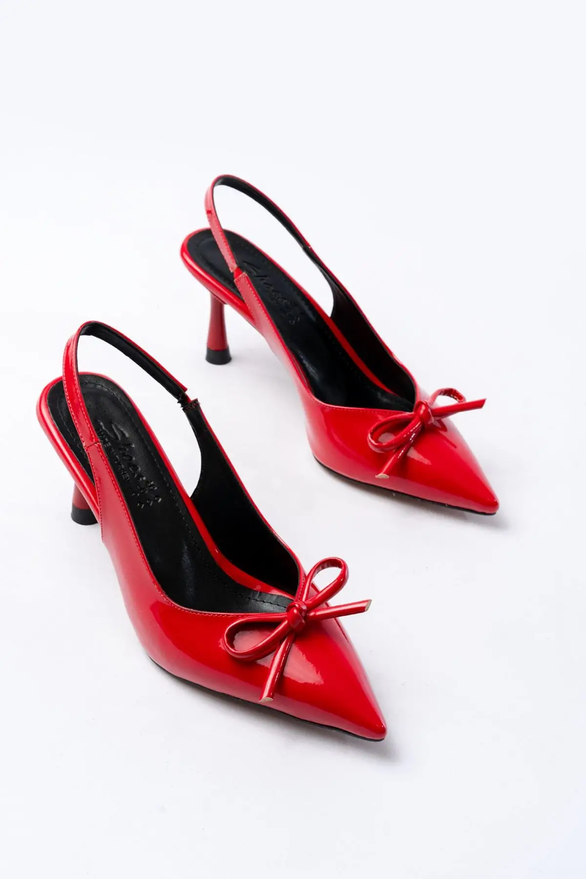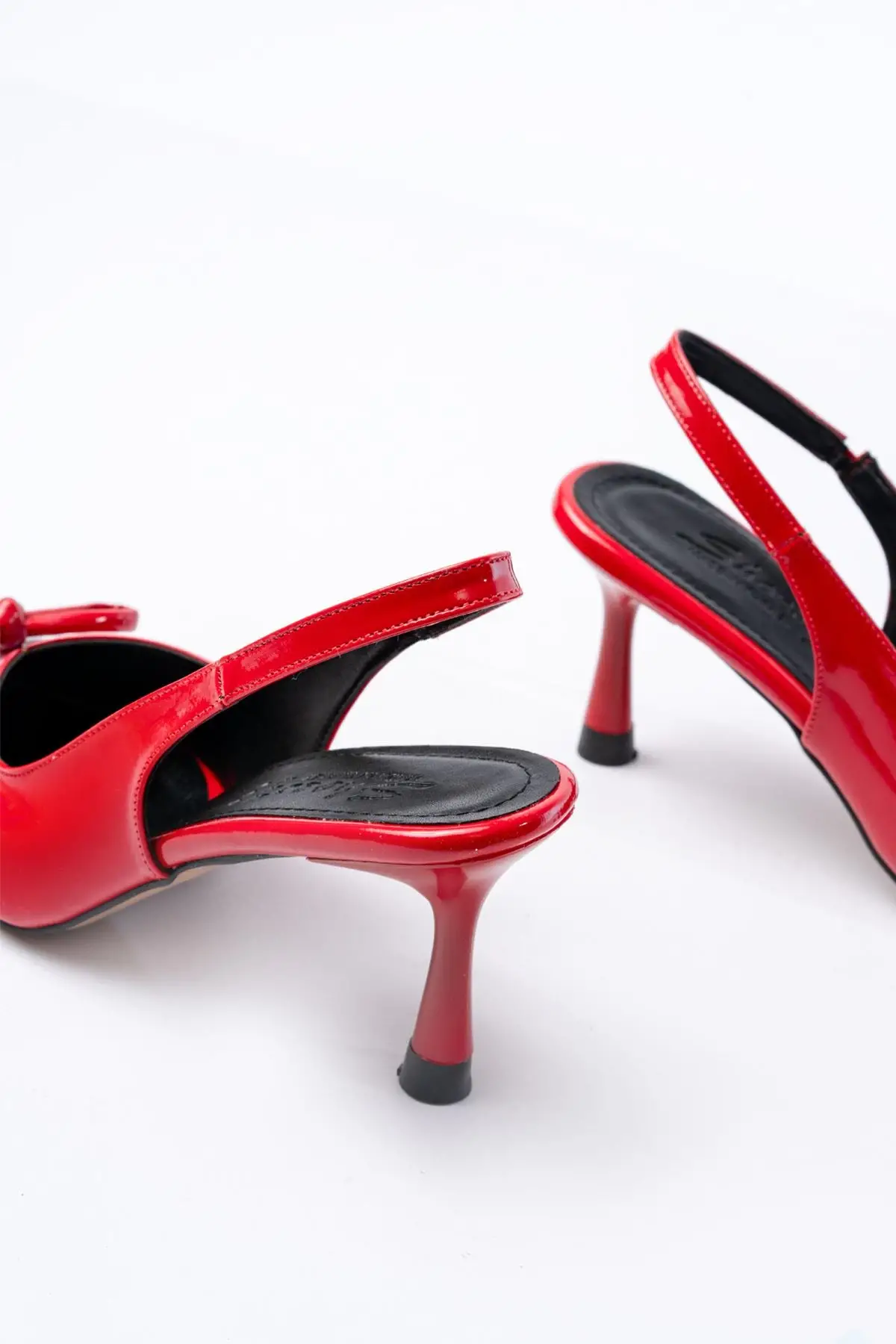 İNF-4500 Kırmızı Rugan Günlük Arkası Açık Fiyonklu Topuklu Bayan Ayakkabı