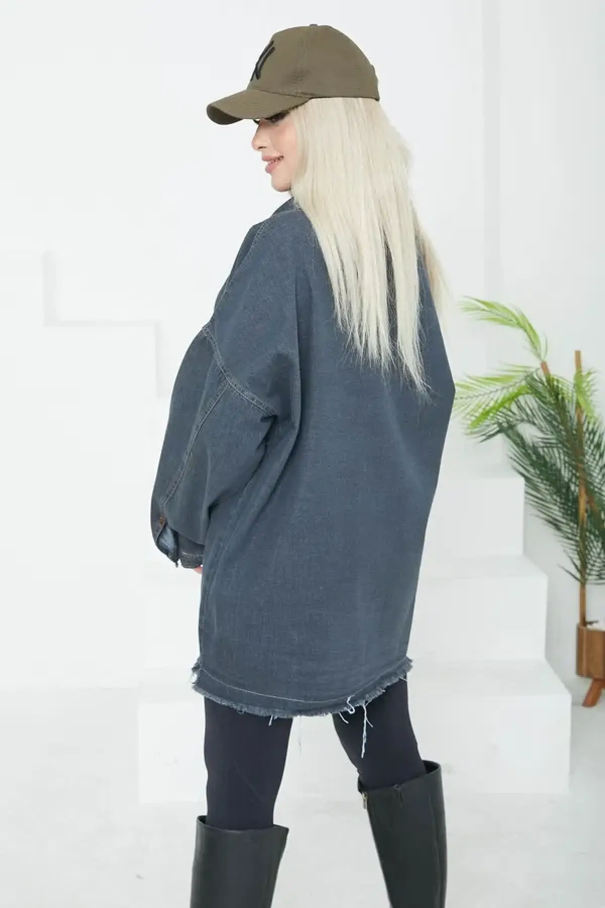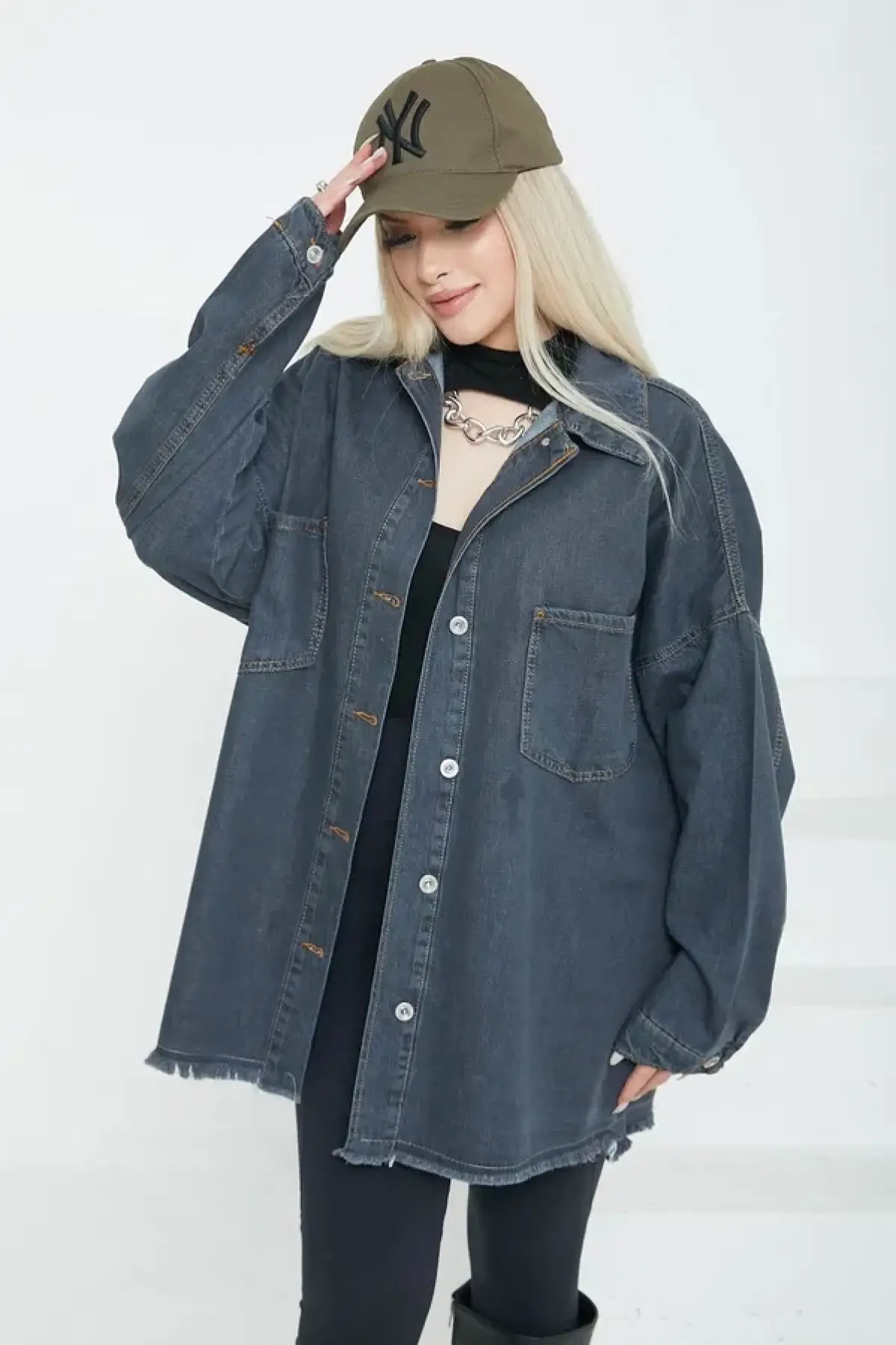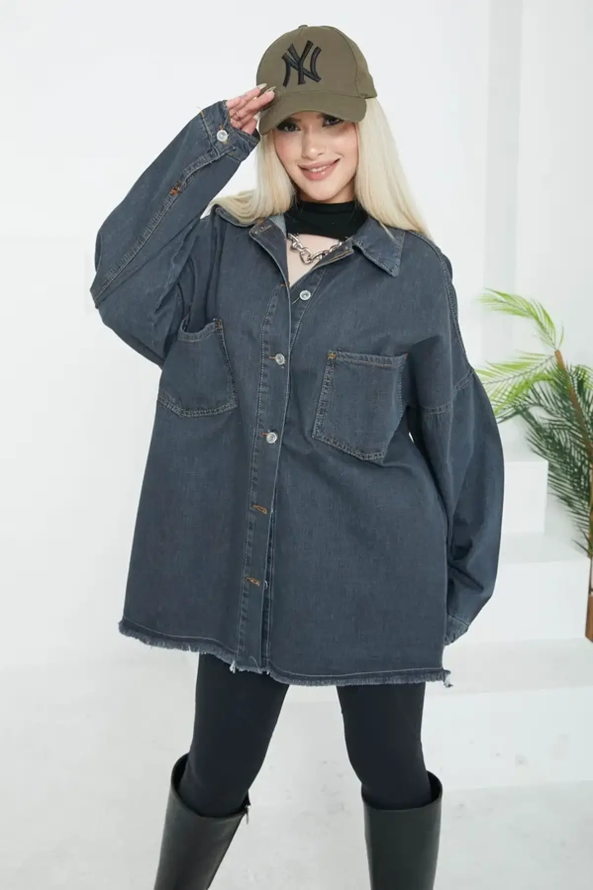 Kadın Çift Cepli Püskül Detay Kot Ceket