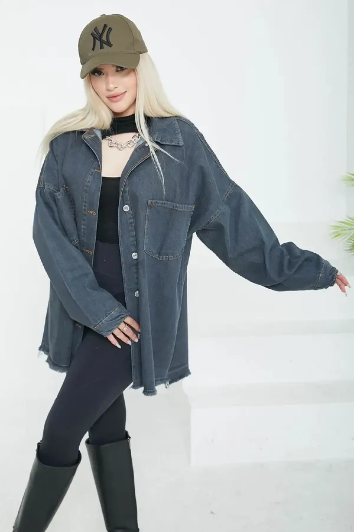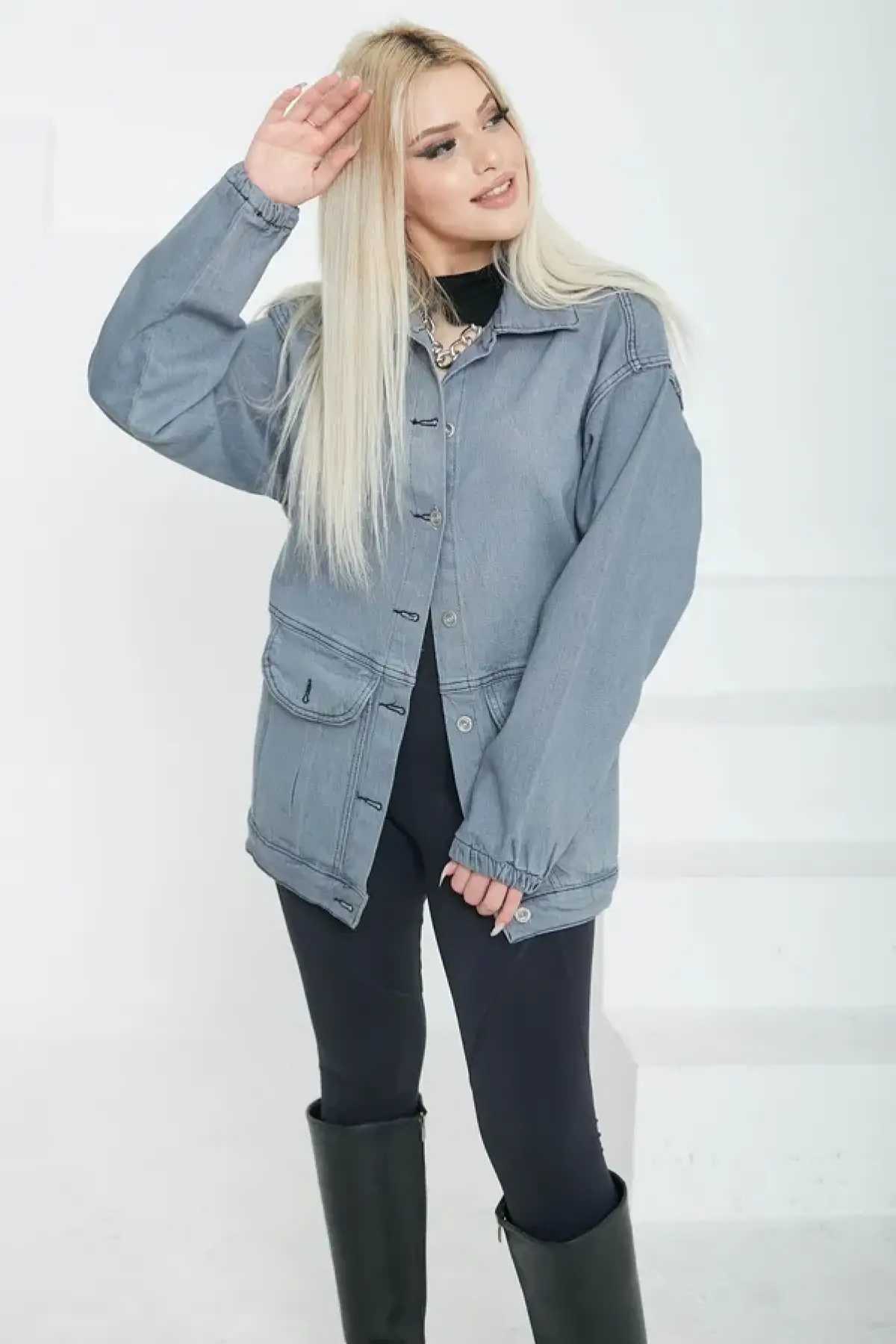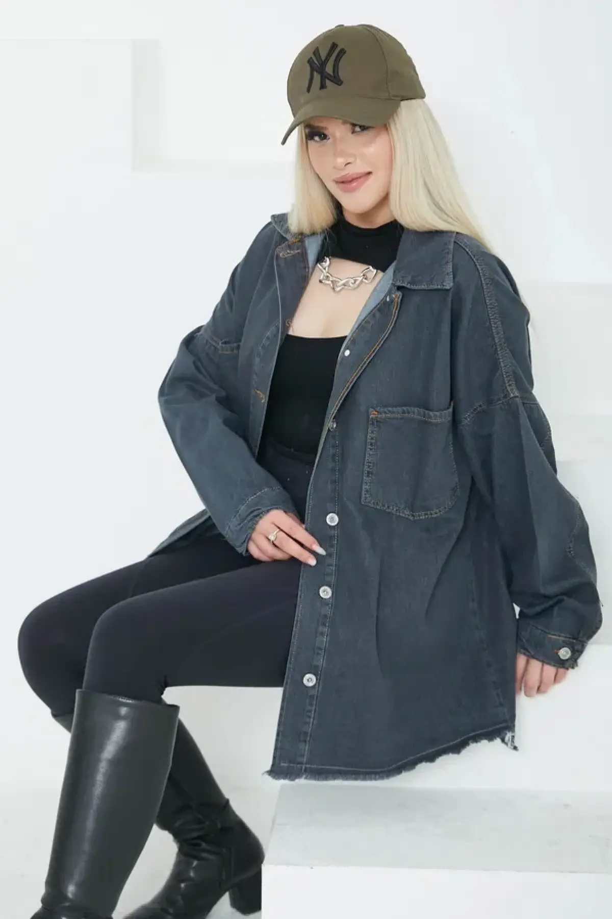 Kadın Çift Cepli Püskül Detay Kot Ceket