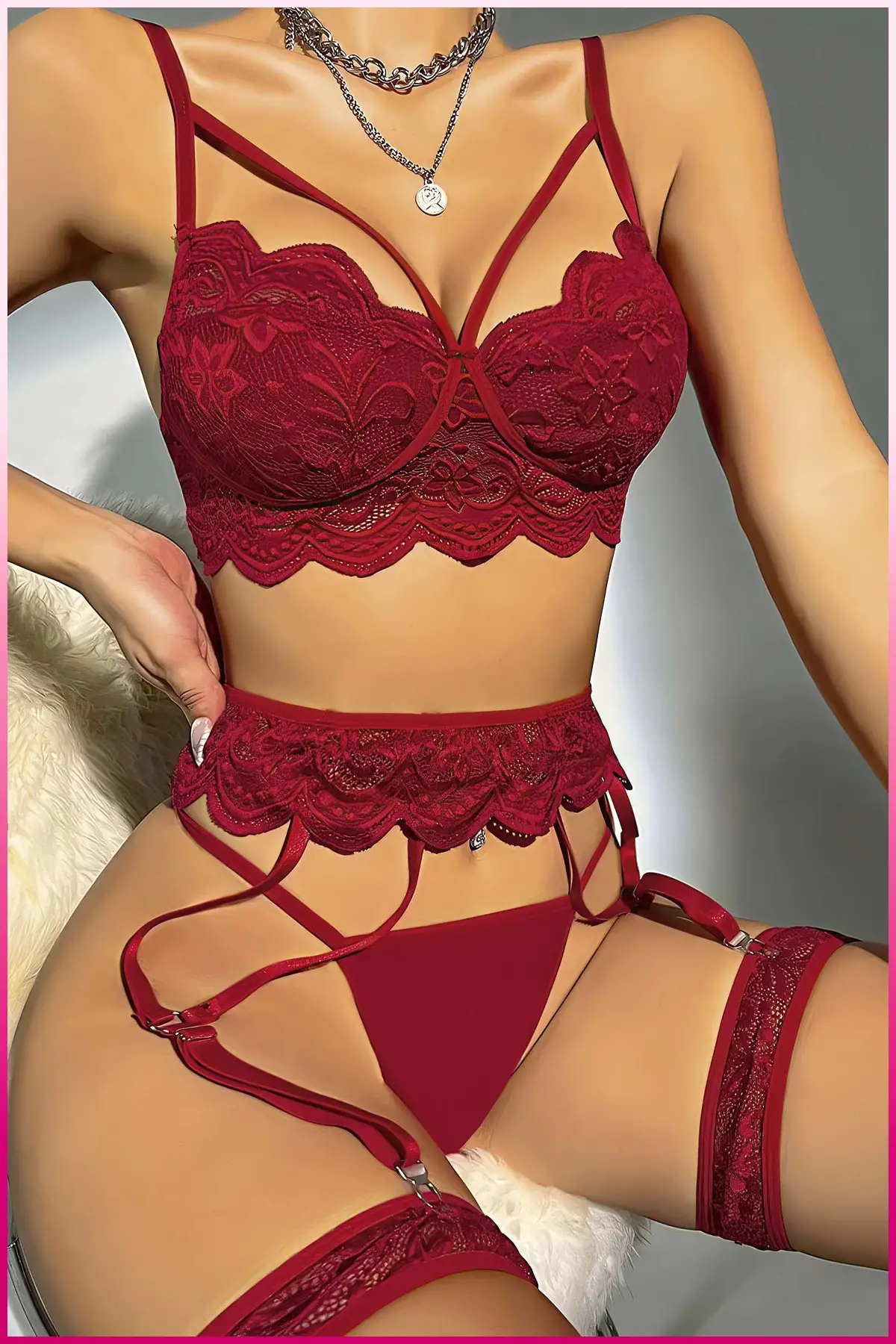 Kadın Bordo Dantel Detaylı Jartiyer Takım