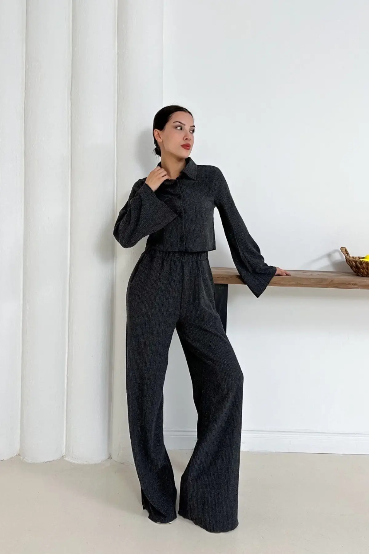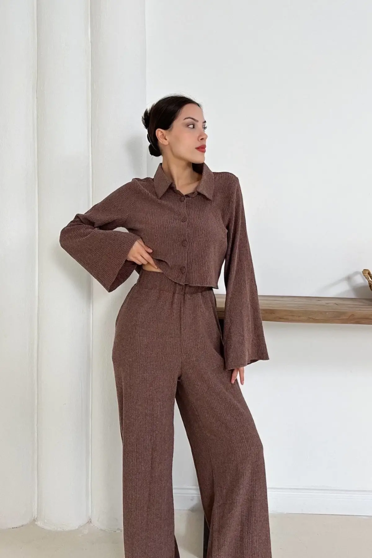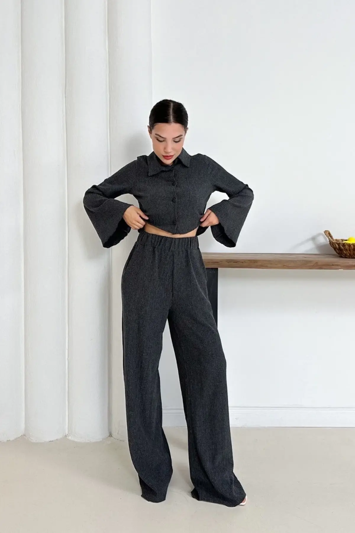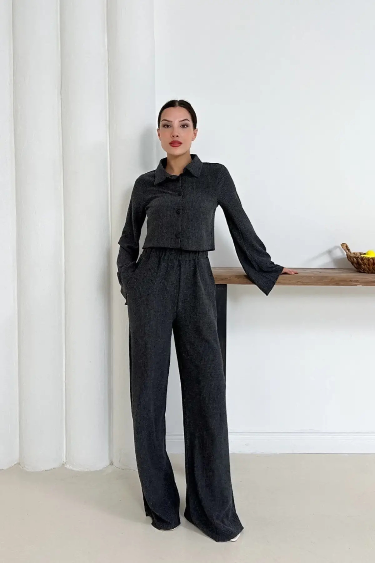 Triko Hırka Elbise İkili Takım, feminen ve şık bir görünüm sunar. KırmızıSiyah renk kombinasyonuyla dikkat çeker.