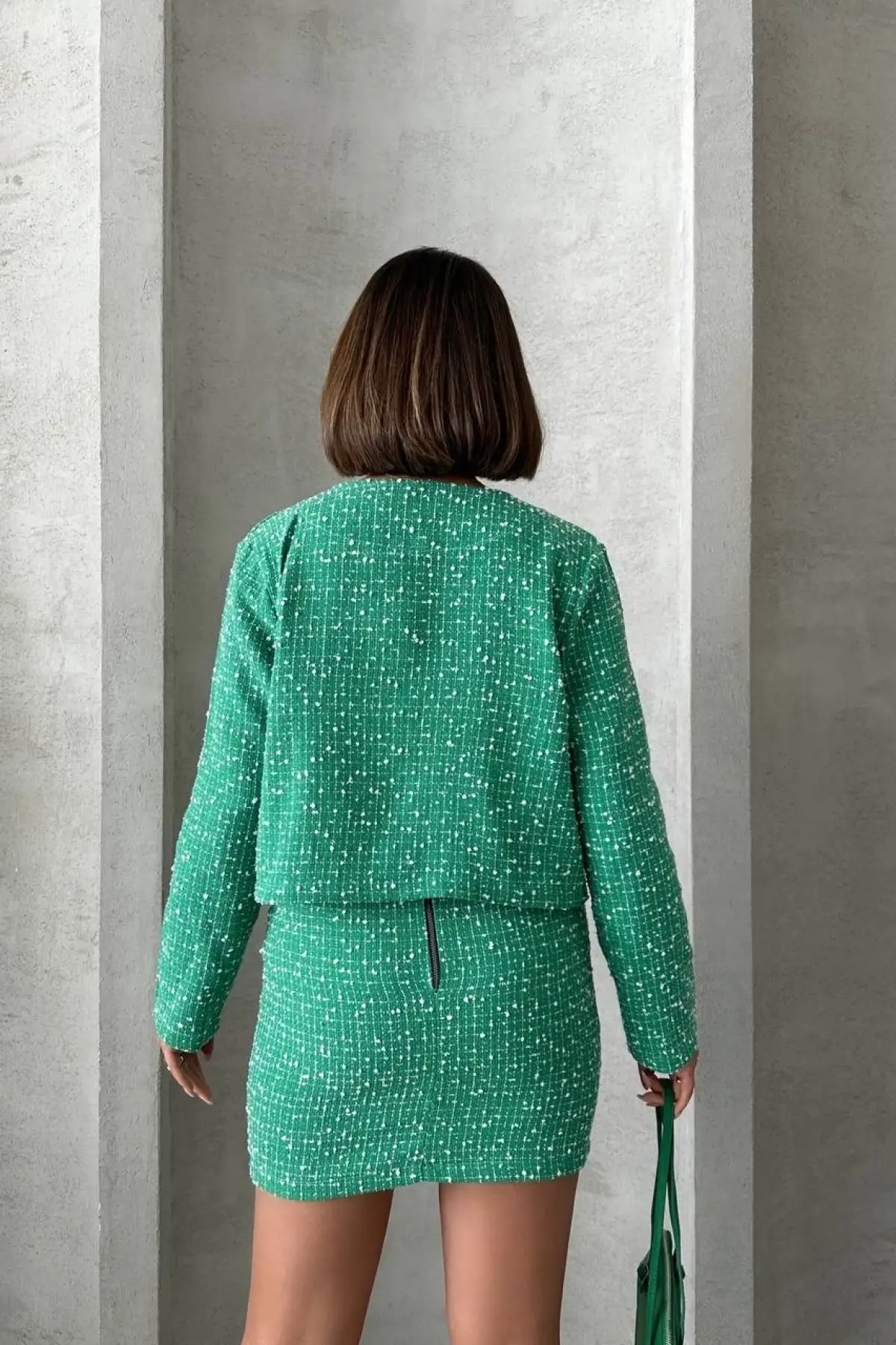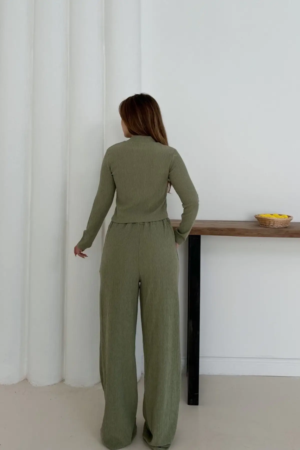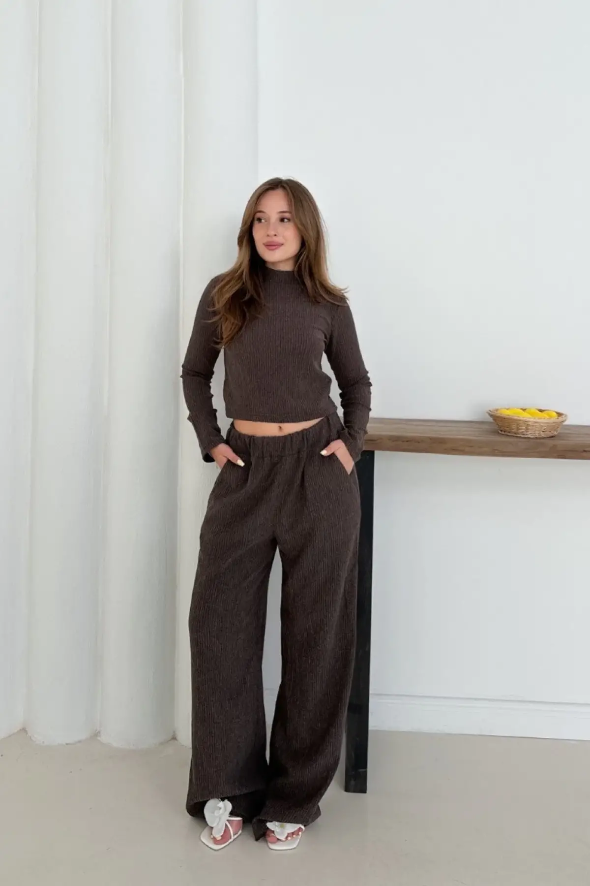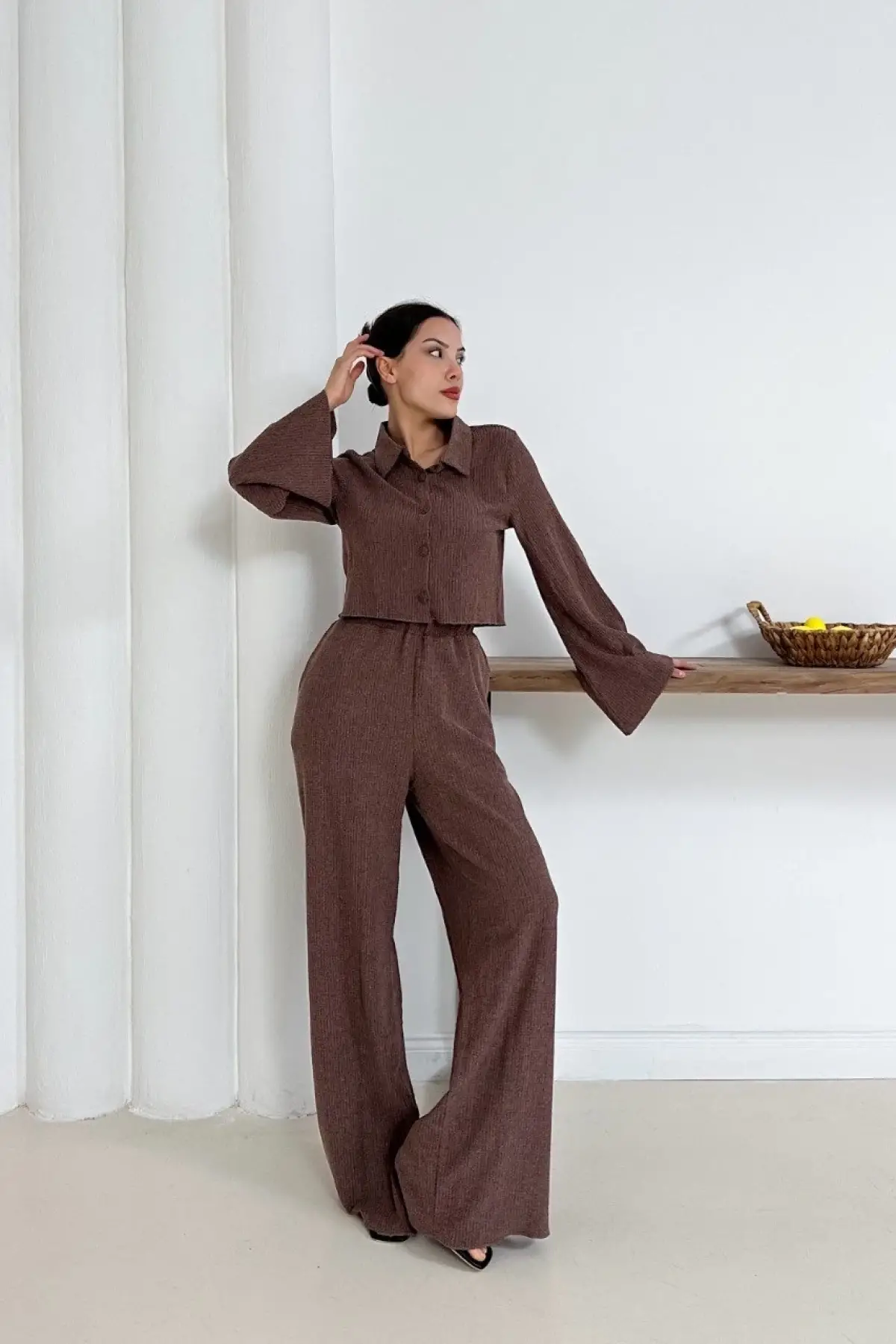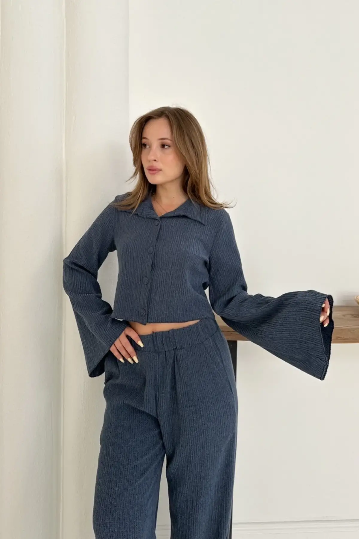 Triko Hırka Elbise İkili Takım, feminen ve şık bir görünüm sunar. KırmızıSiyah renk kombinasyonuyla dikkat çeker.
