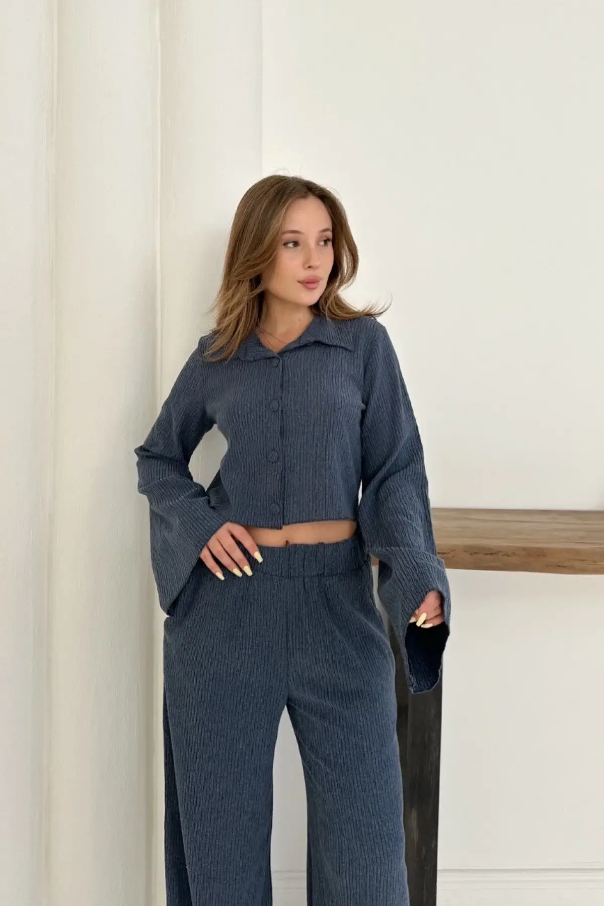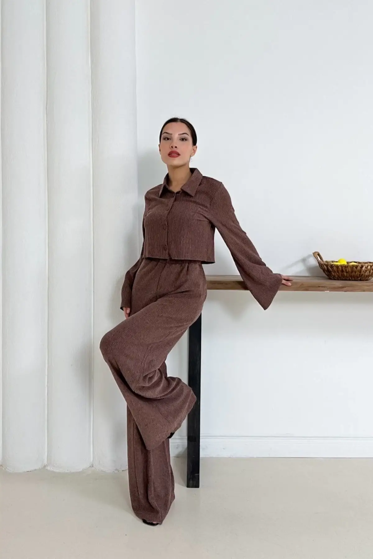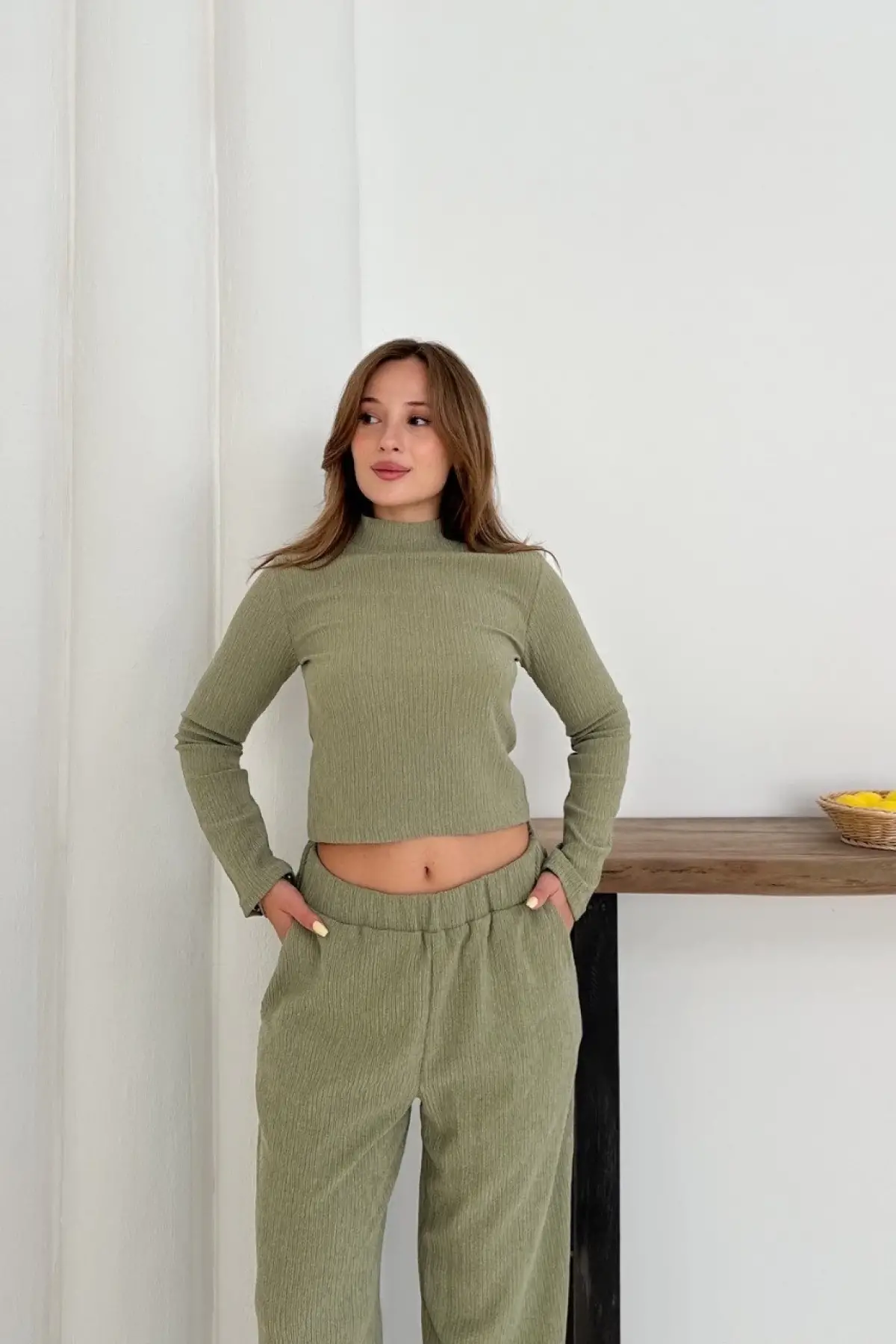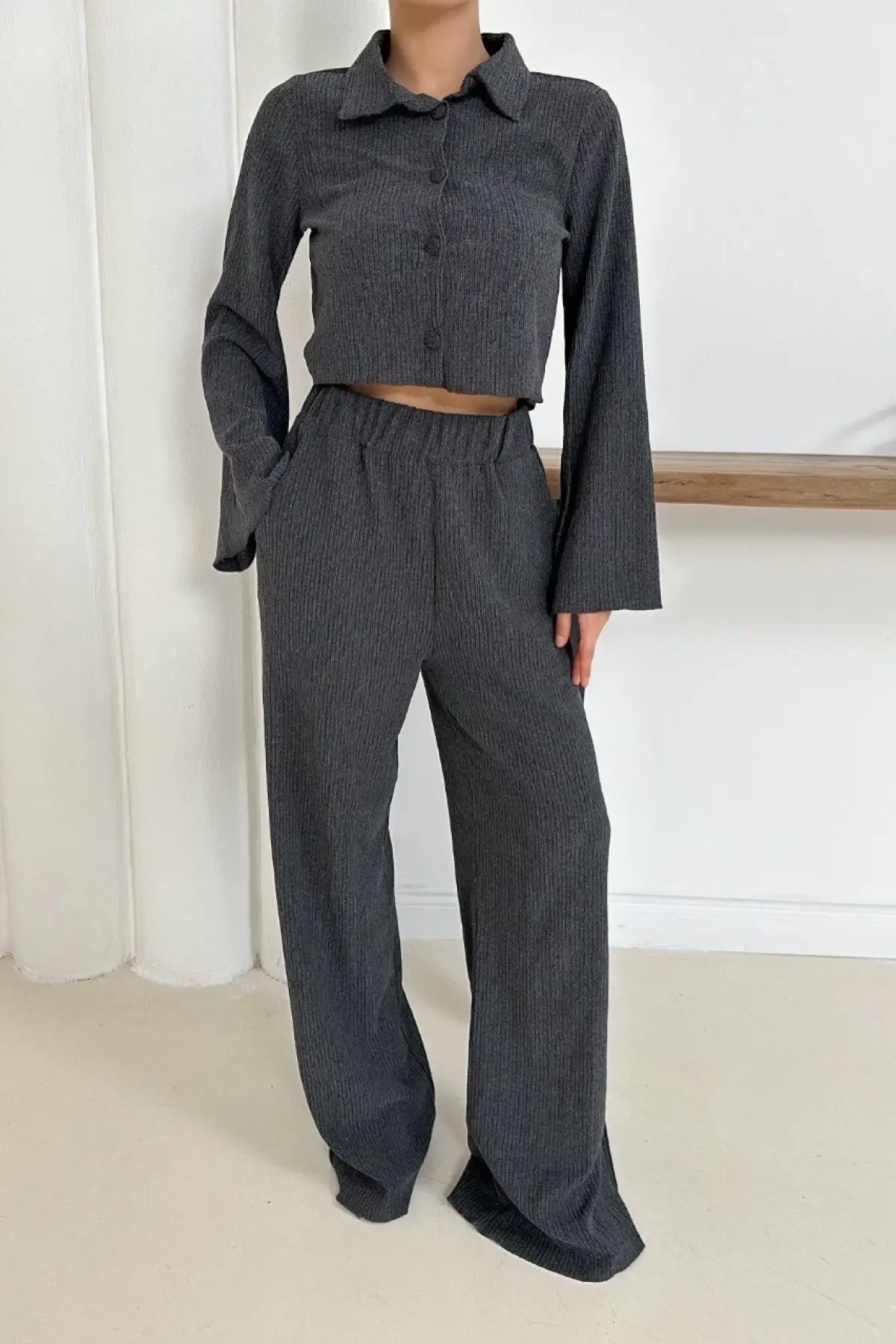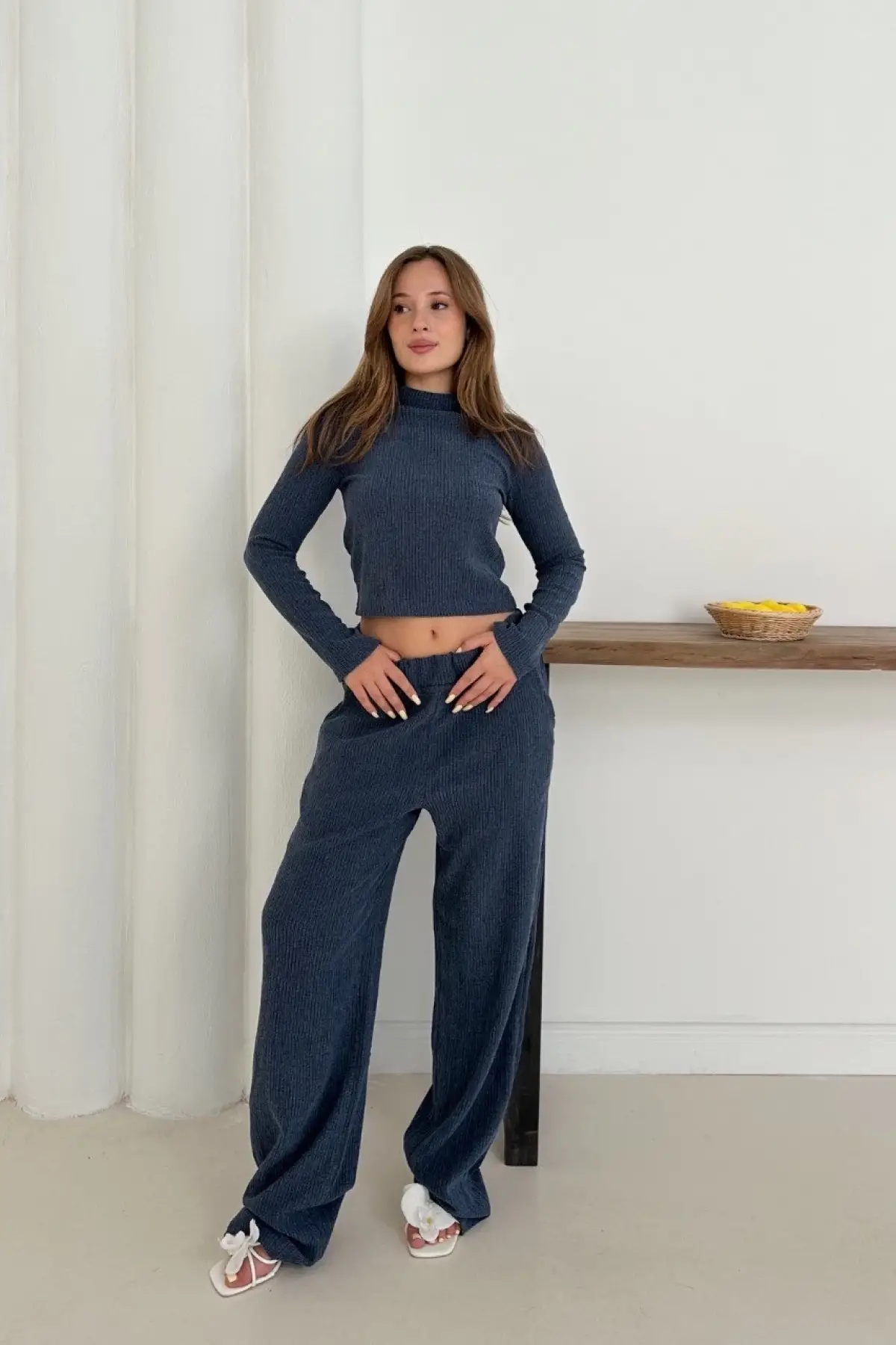 Triko Hırka Elbise İkili Takım, feminen ve şık bir görünüm sunar. KırmızıSiyah renk kombinasyonuyla dikkat çeker.