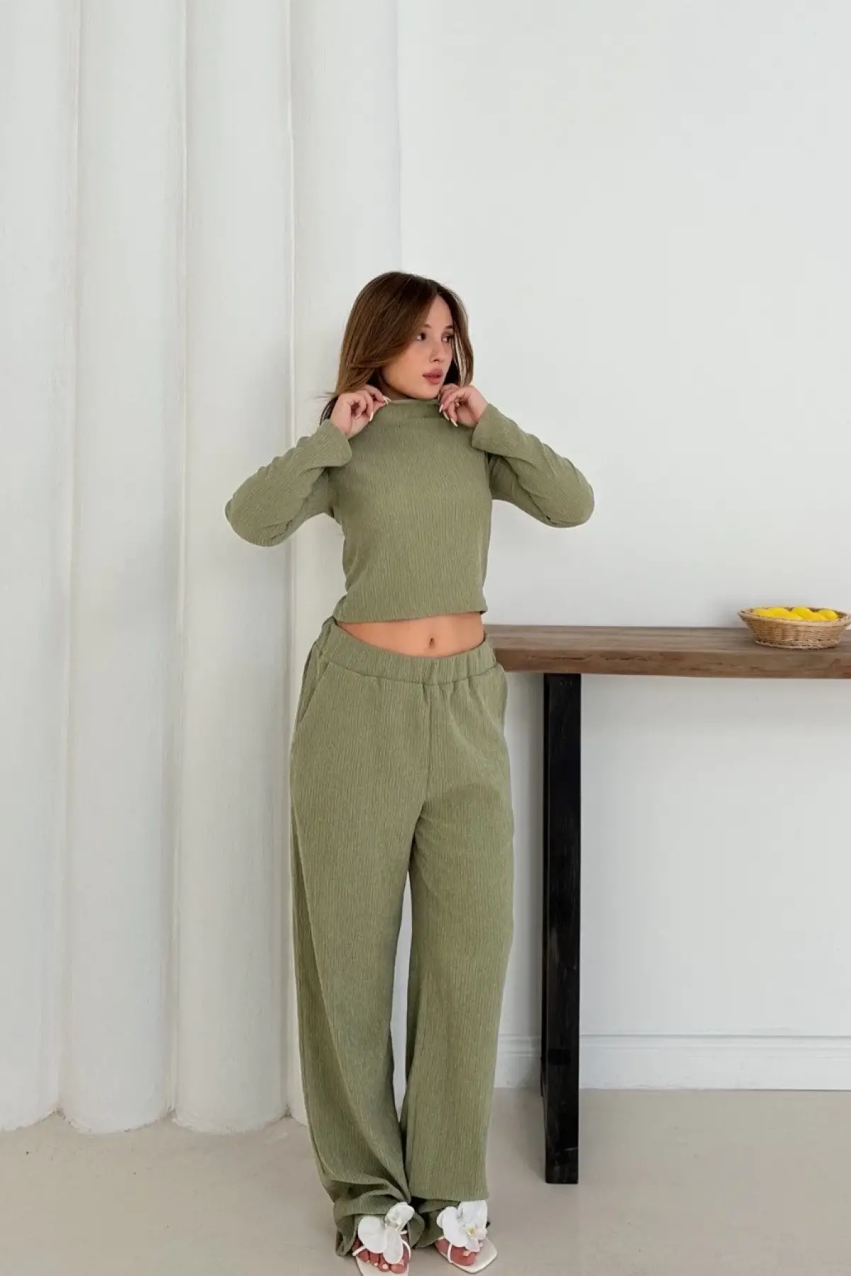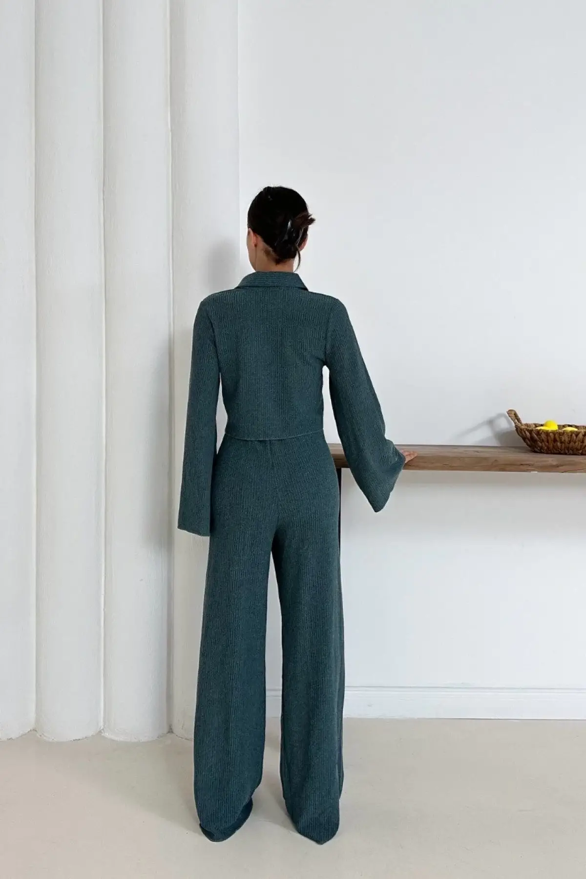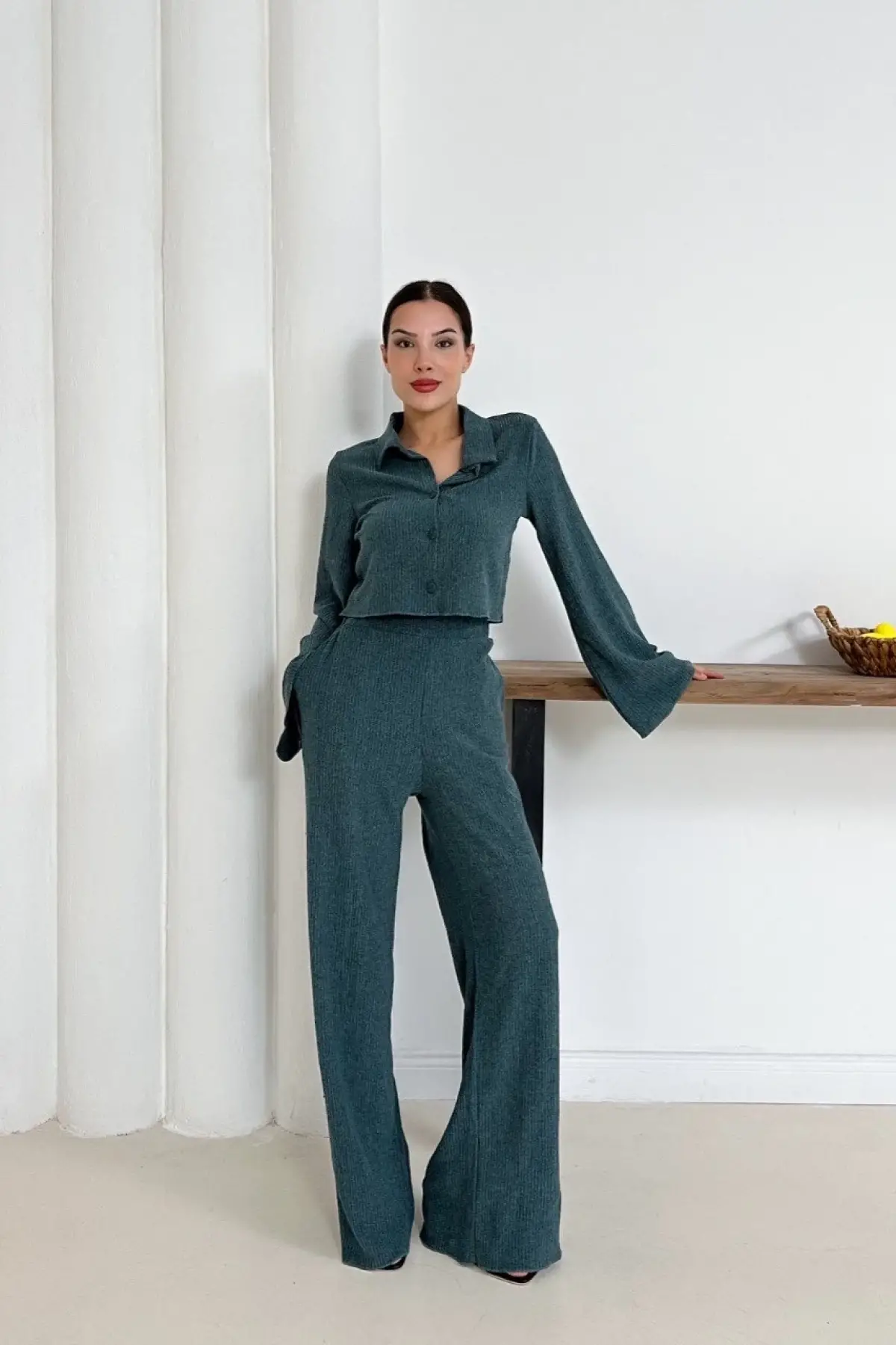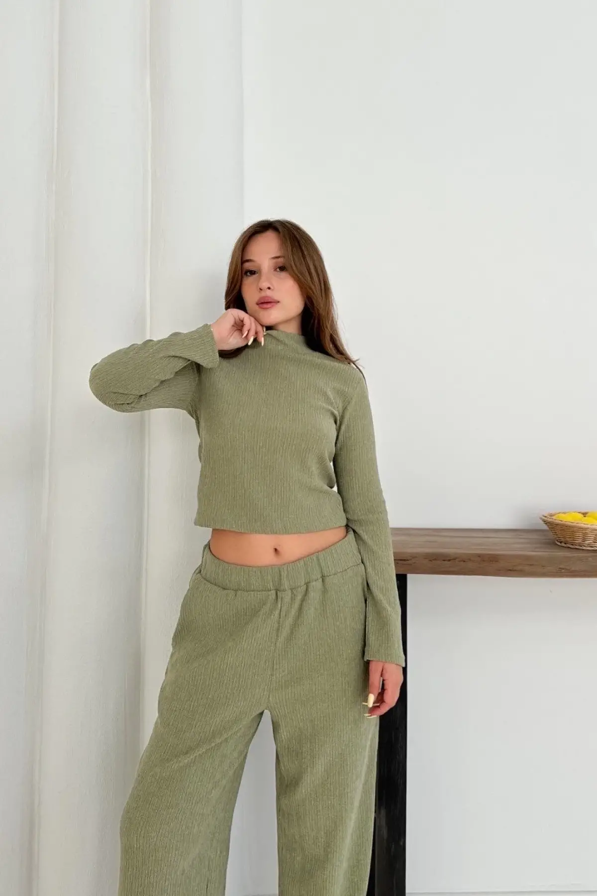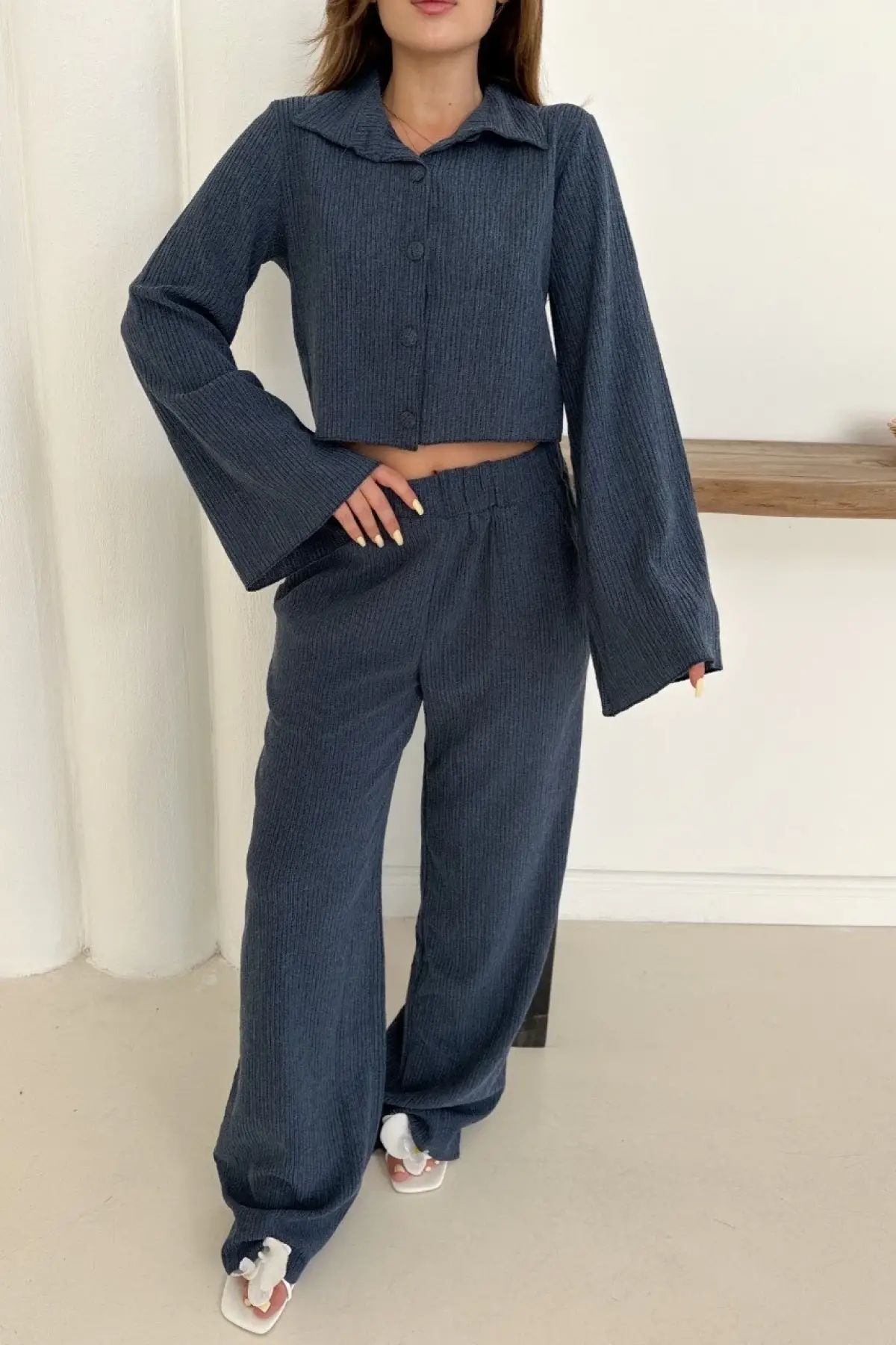 Triko Hırka Elbise İkili Takım, feminen ve şık bir görünüm sunar. KırmızıSiyah renk kombinasyonuyla dikkat çeker.