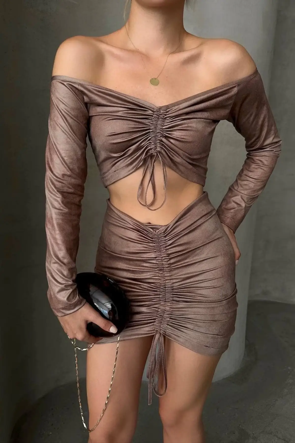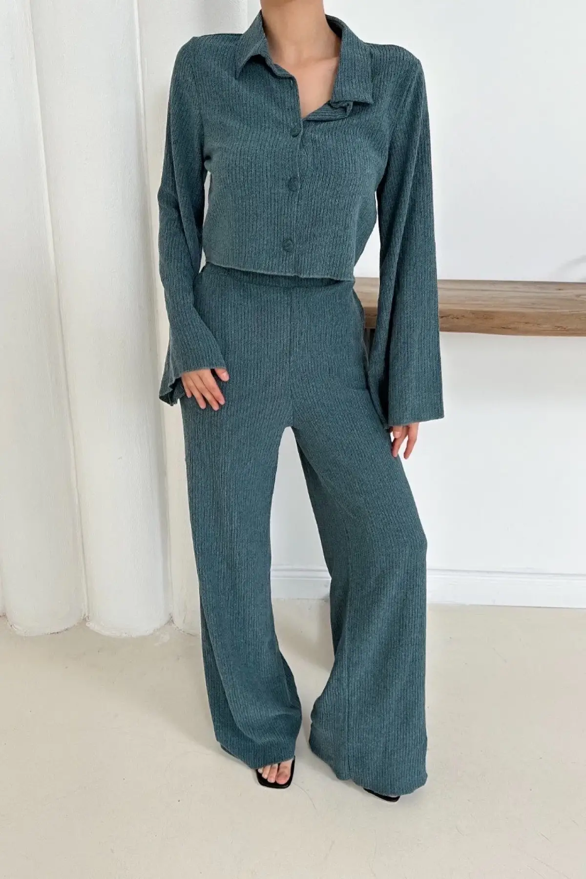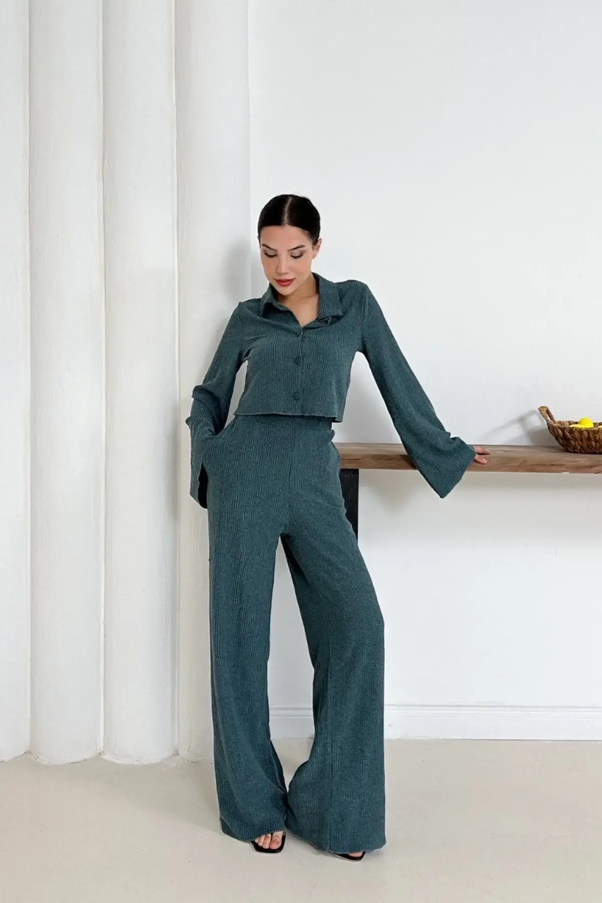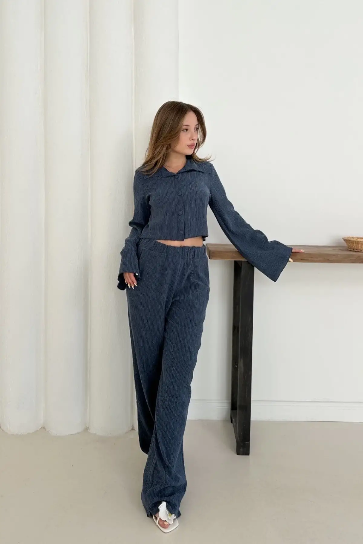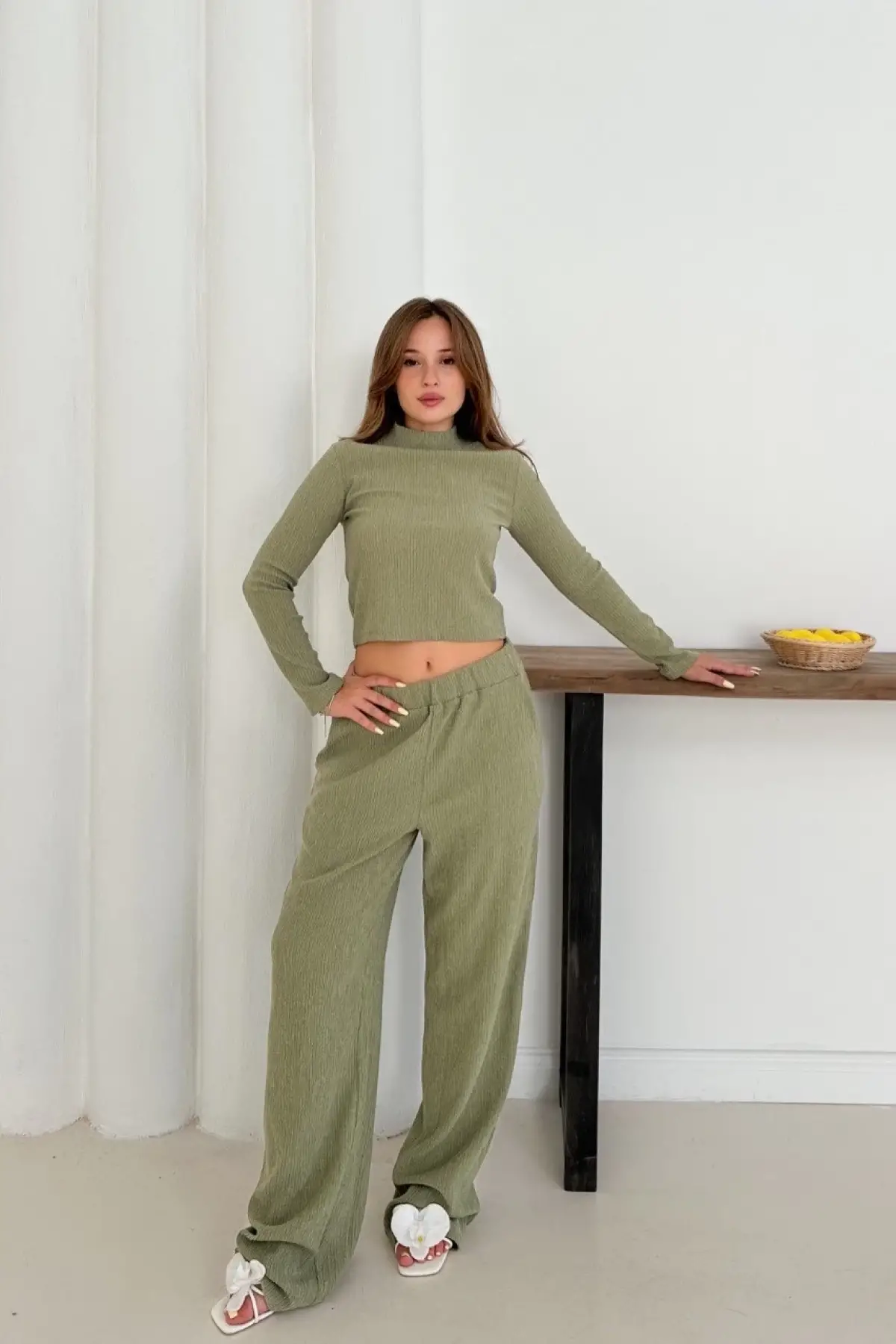 Triko Hırka Elbise İkili Takım, feminen ve şık bir görünüm sunar. KırmızıSiyah renk kombinasyonuyla dikkat çeker.