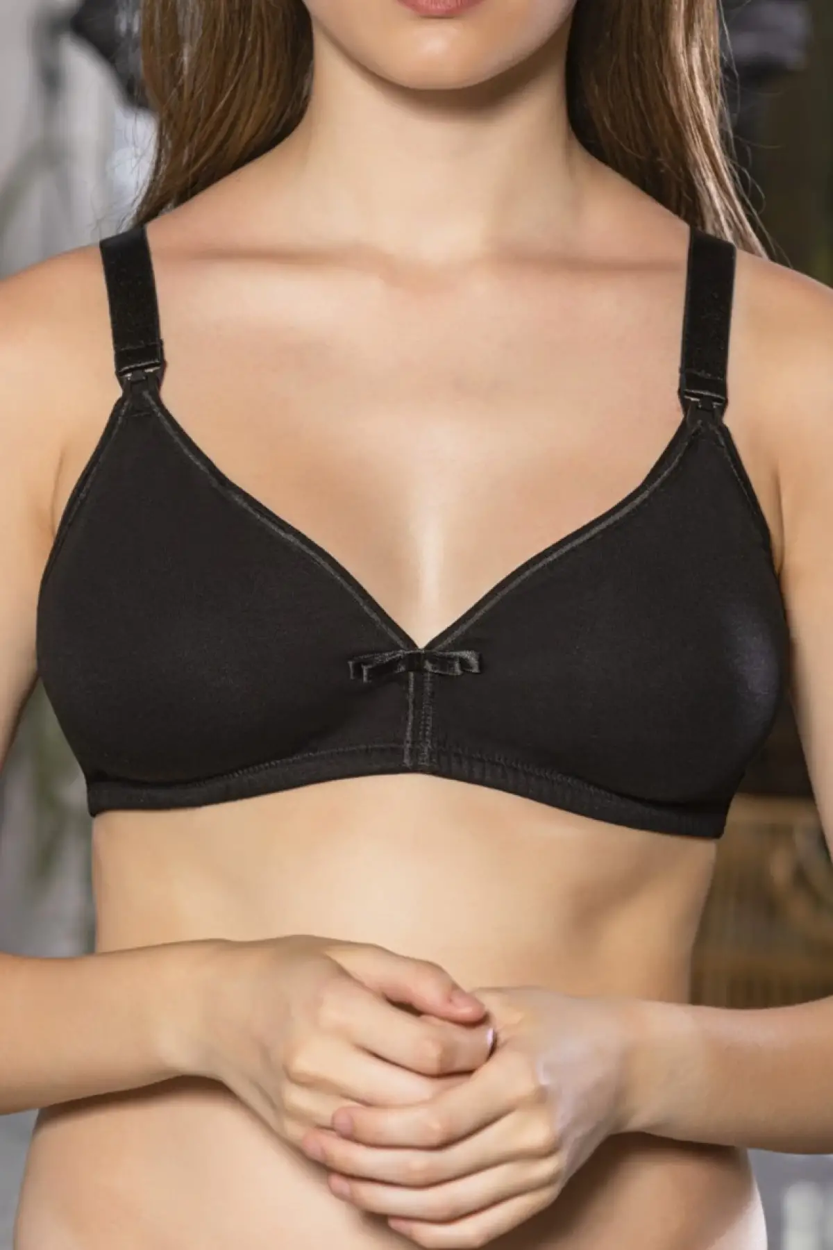 Siyah Anne İçin Konforlu Emzirme Sütyeni,pamuklutelsiz,süngersiz, Mom Bra