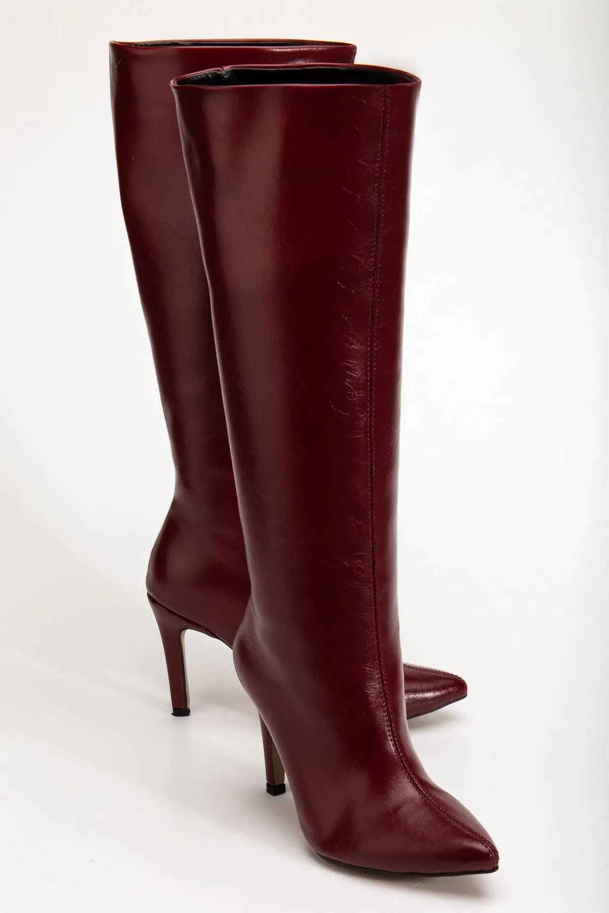 Syt-2004 Bordo Kırışık Rugan Günlük Bayan Çizme