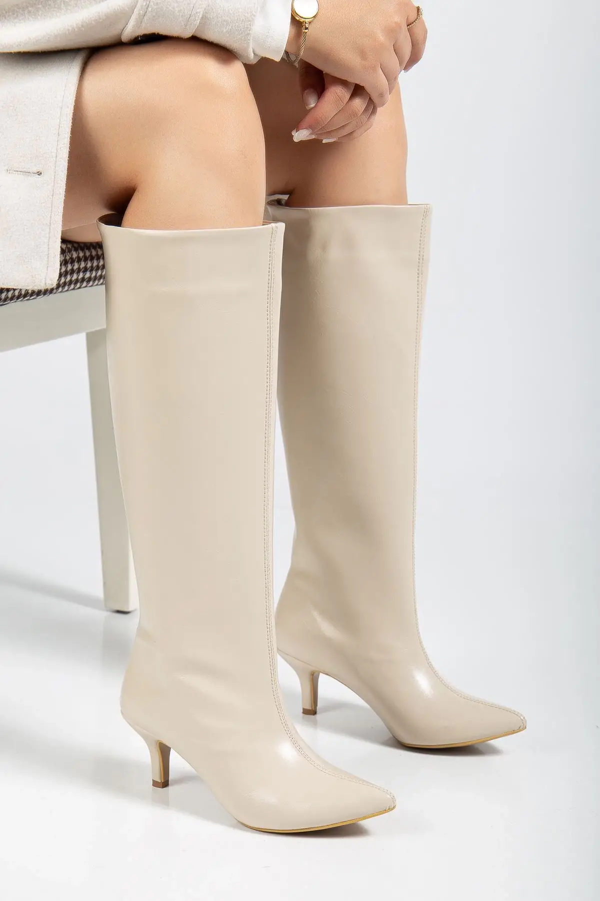 Syt-2025 Bej Kırışık Rugan Günlük Kadın Çizme