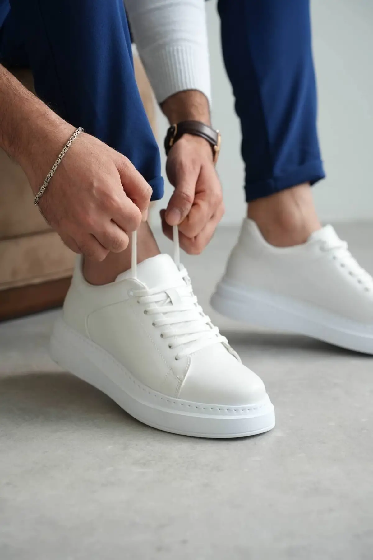 Tb-b2 Terzi Bey Beyaz Cilt Günlük Erkek Ayakkabı