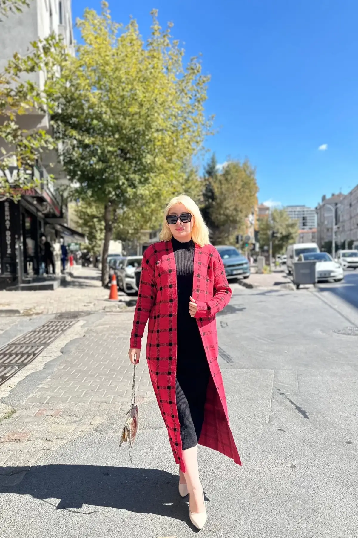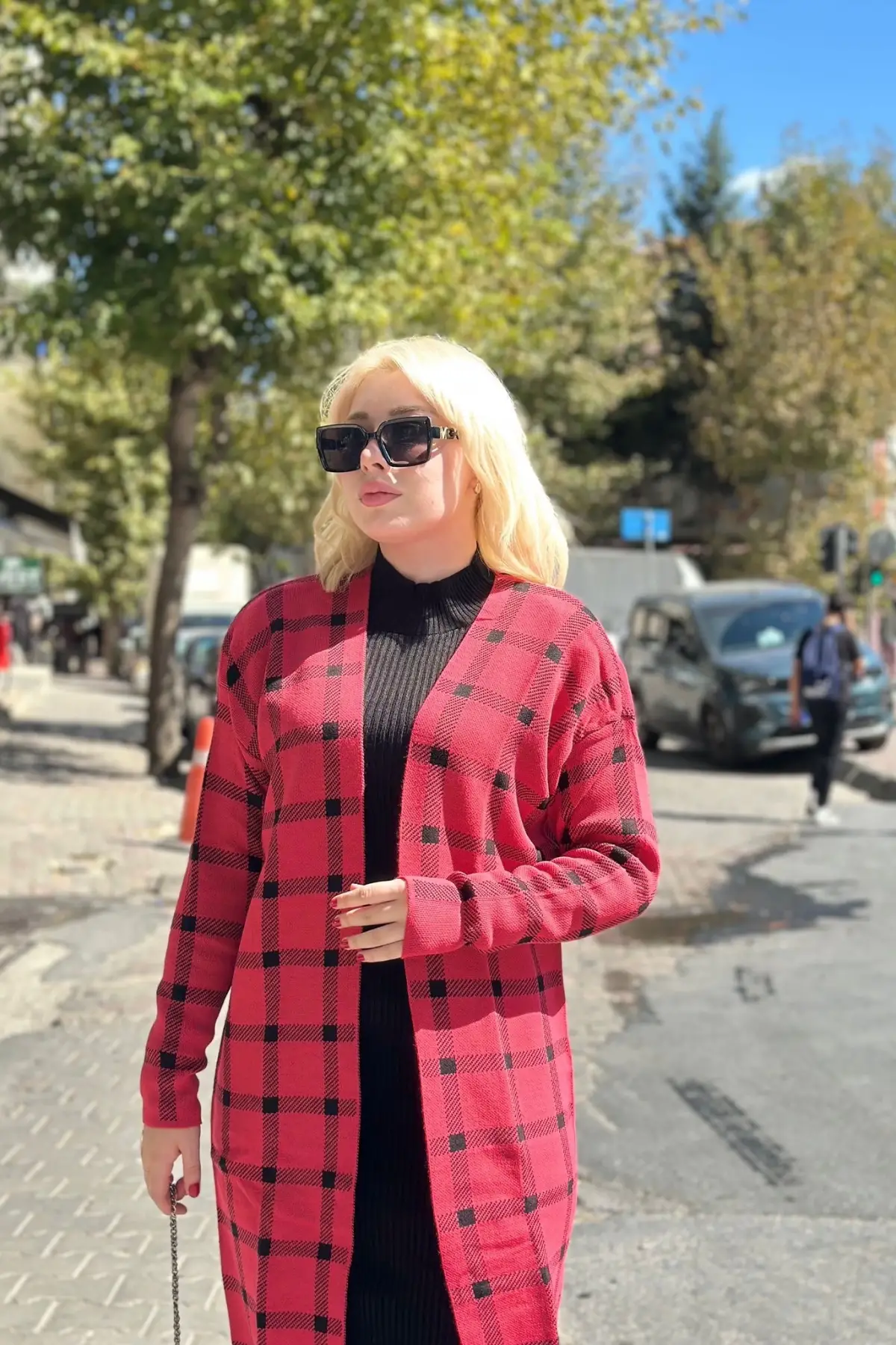 Triko Hırka Elbise İkili Takım Kırmızısiyah