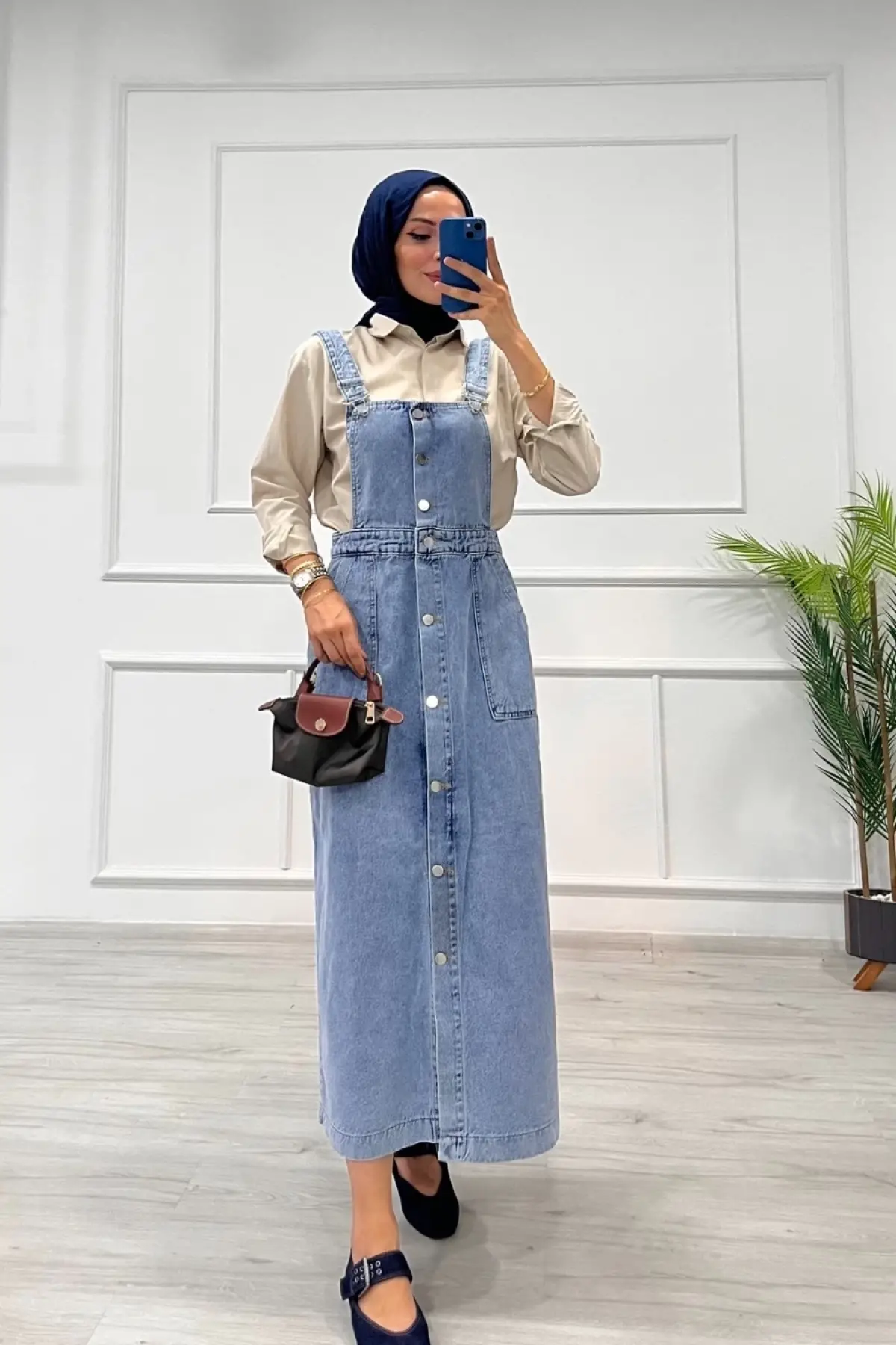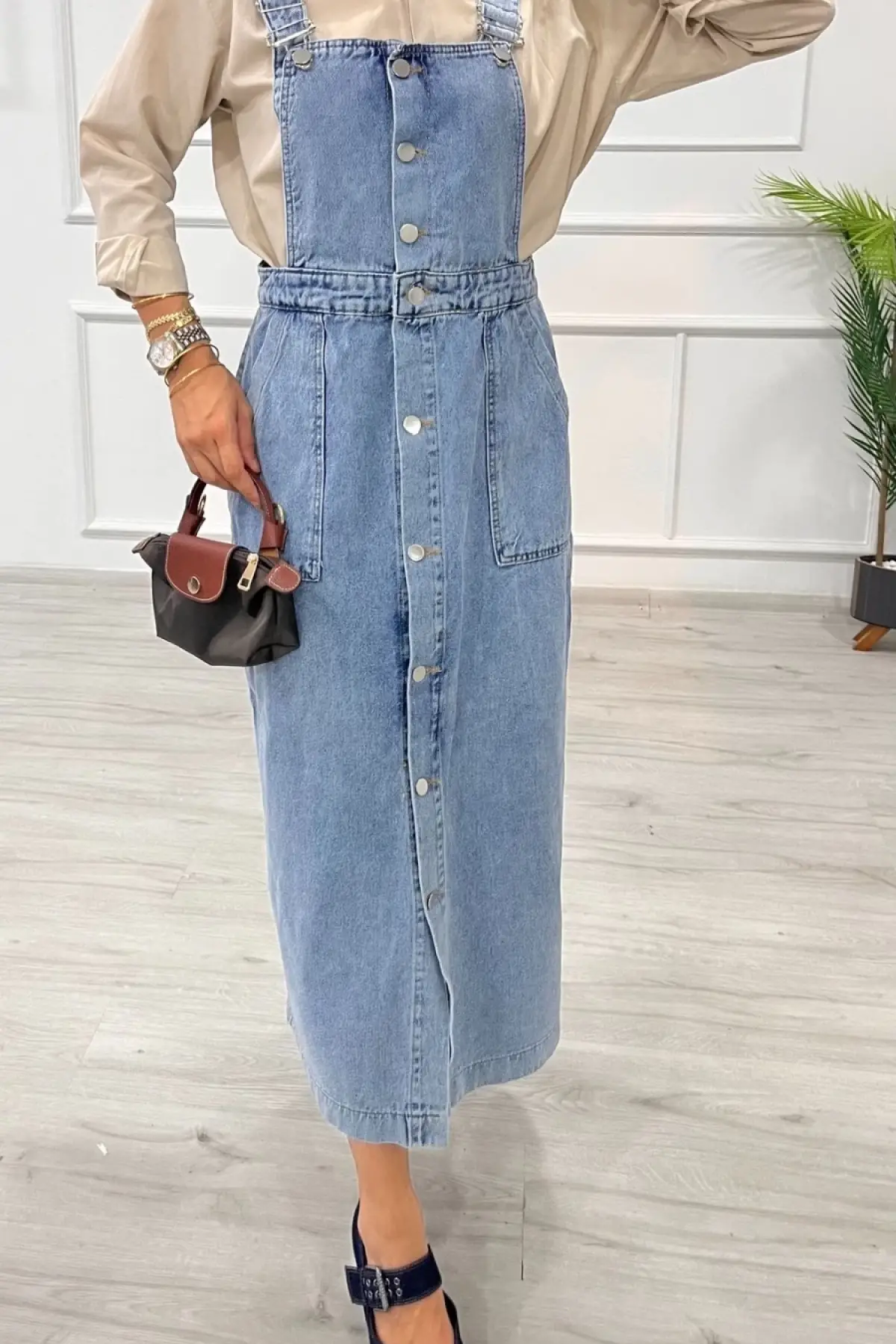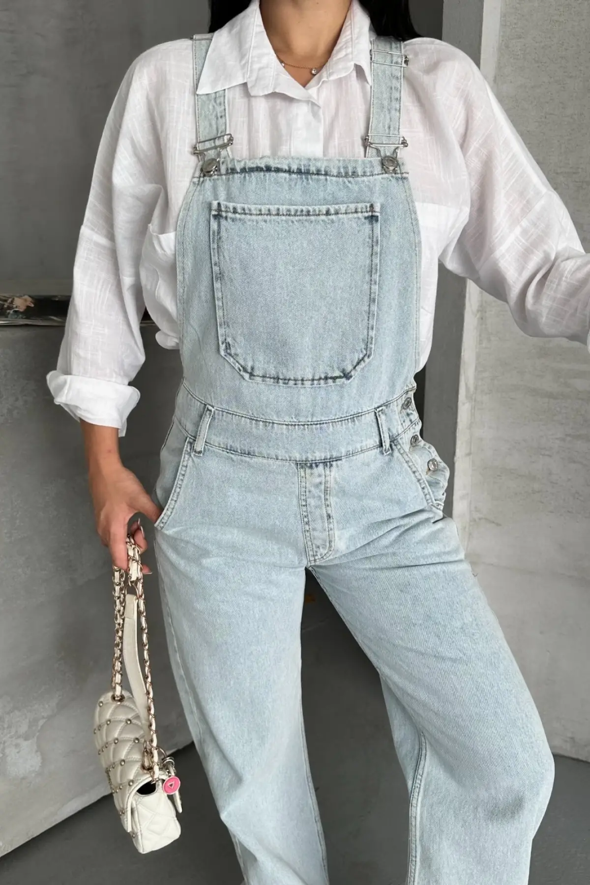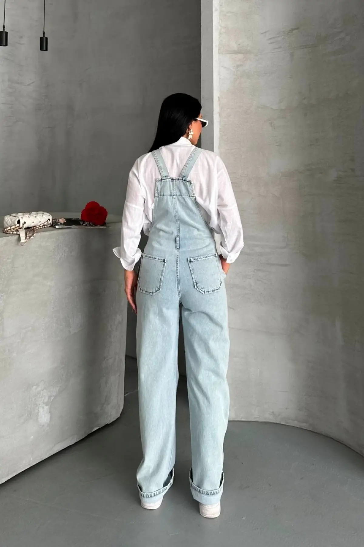 Etekli Salopet Enzim Süper Taş Yıkama Buz Mavi D 2521