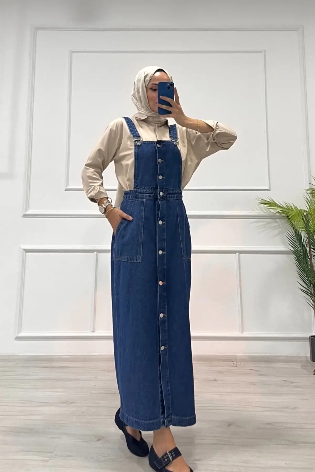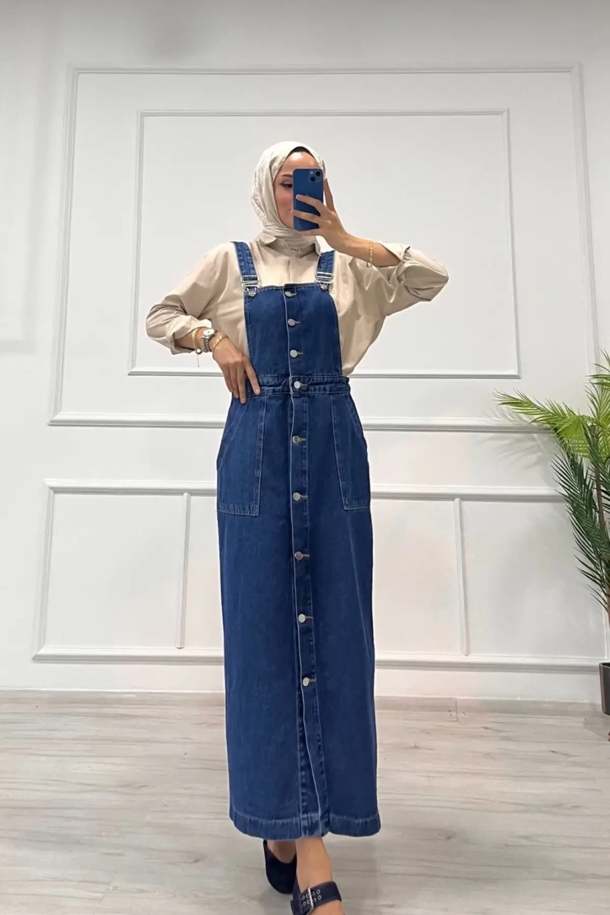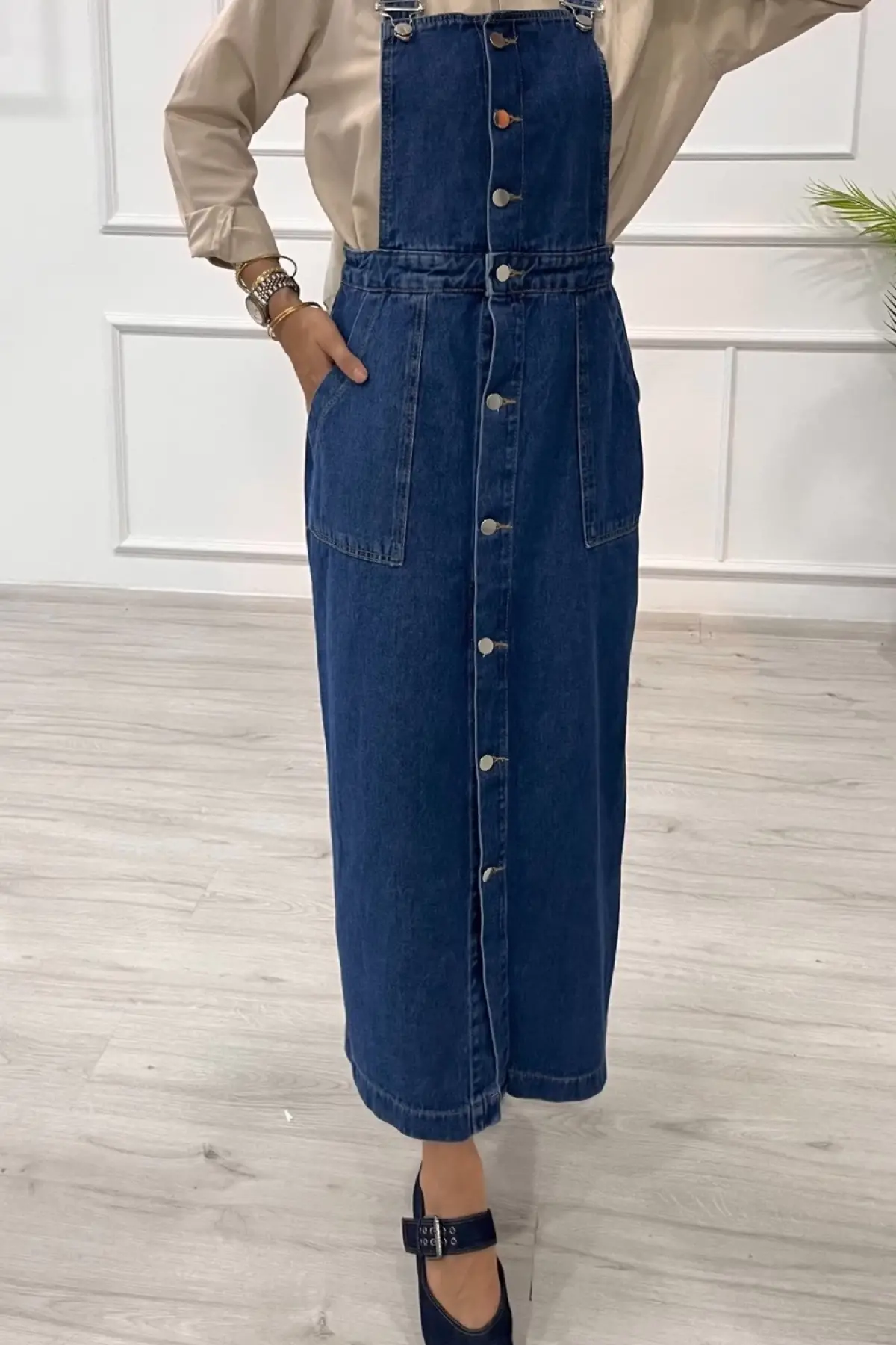 Etekli Salopet Enzim Süper Taş Yıkama Koyu Mavi D2521