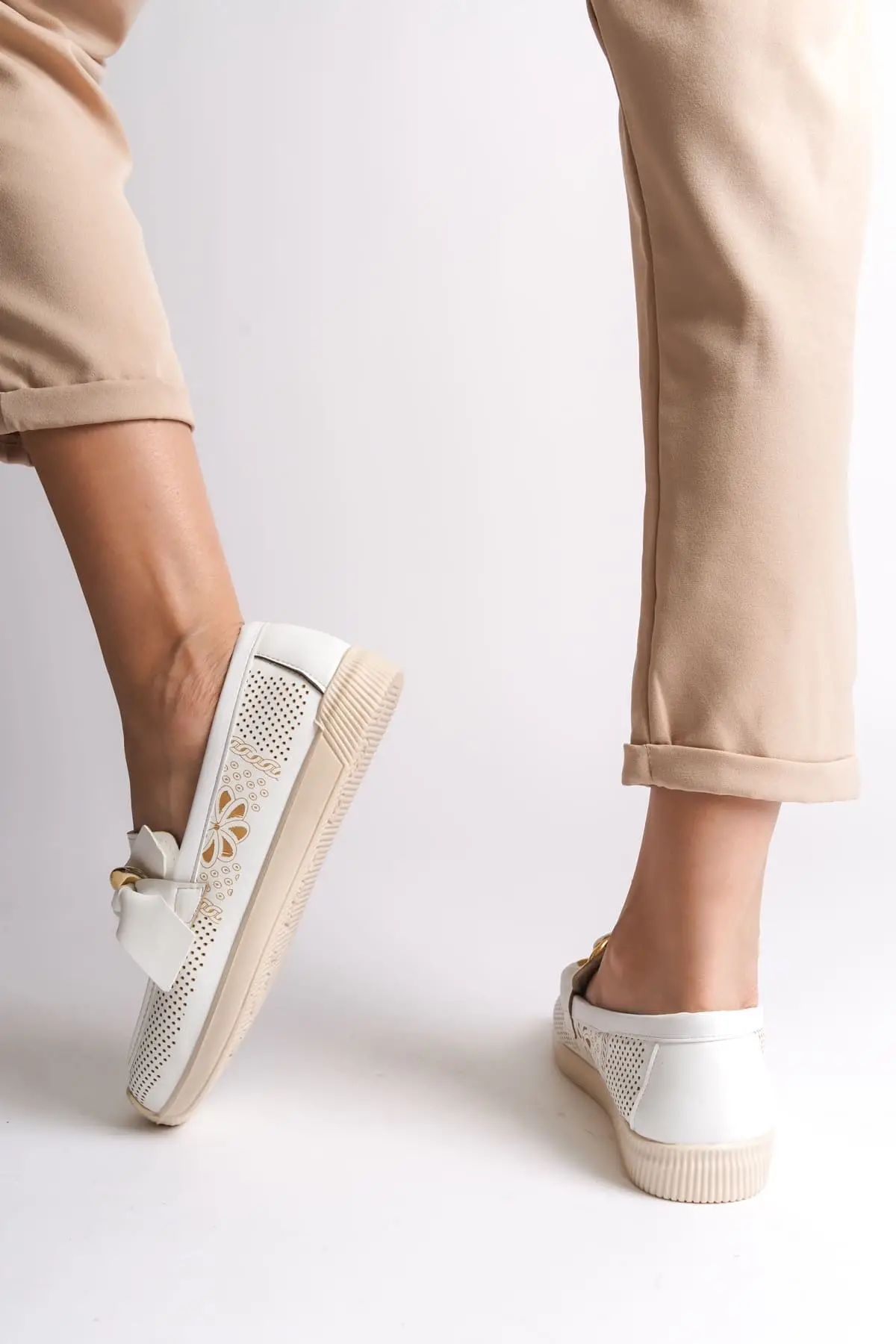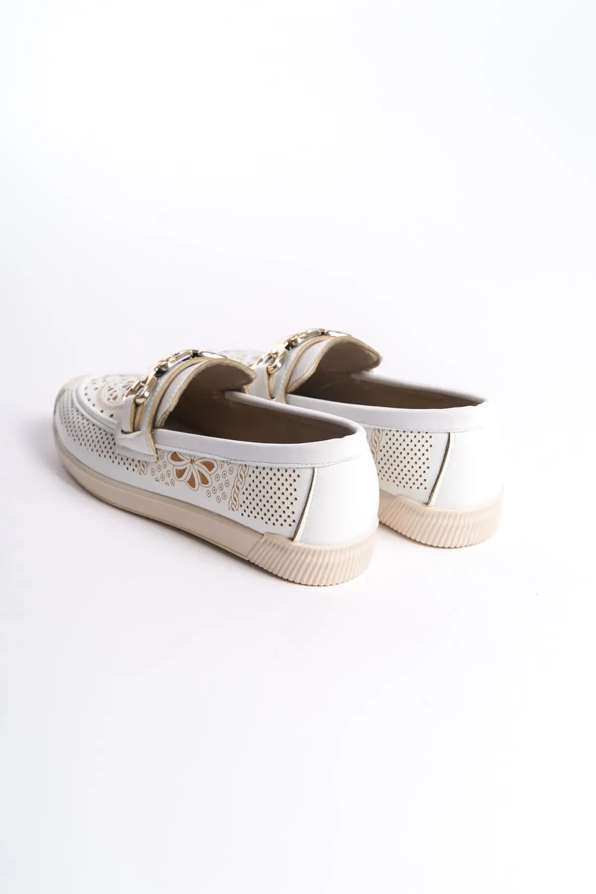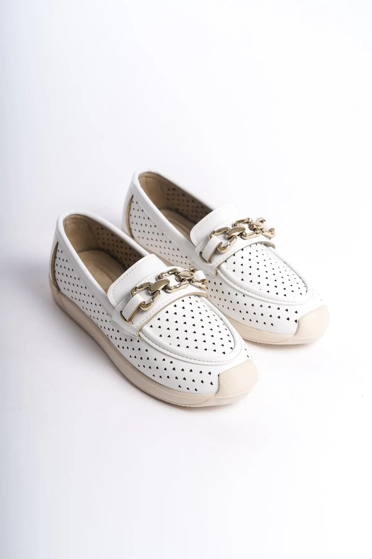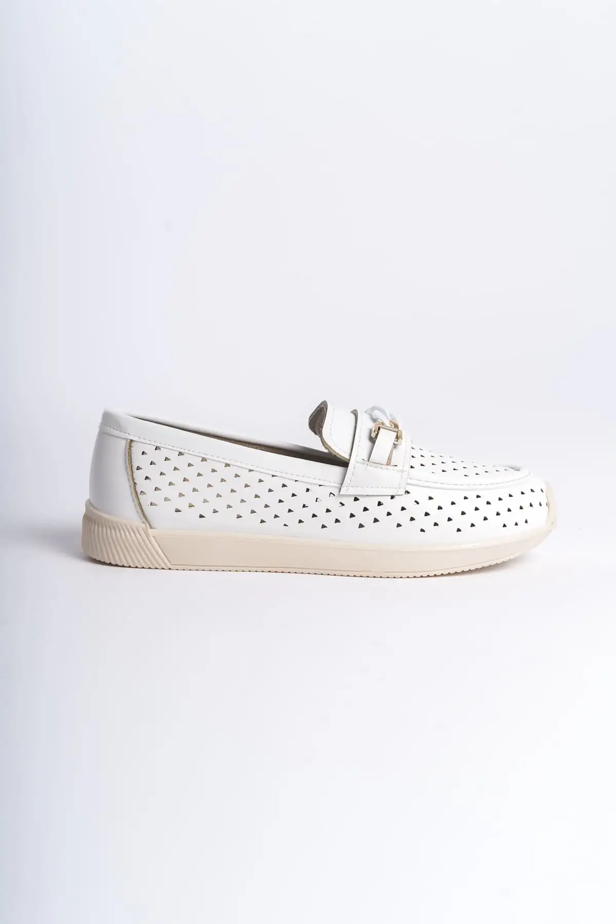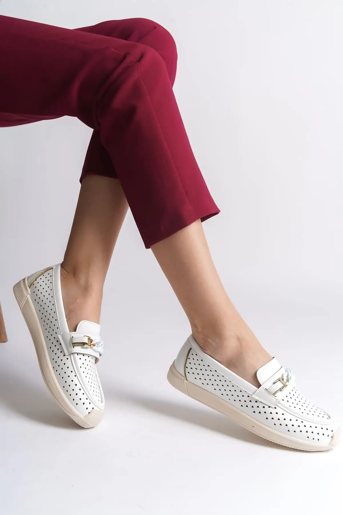 Layla Bağcıksız Ortopedik Rahat Taban Kalp Desenli Kadın Babet Ayakkabı Kt - Beyaz