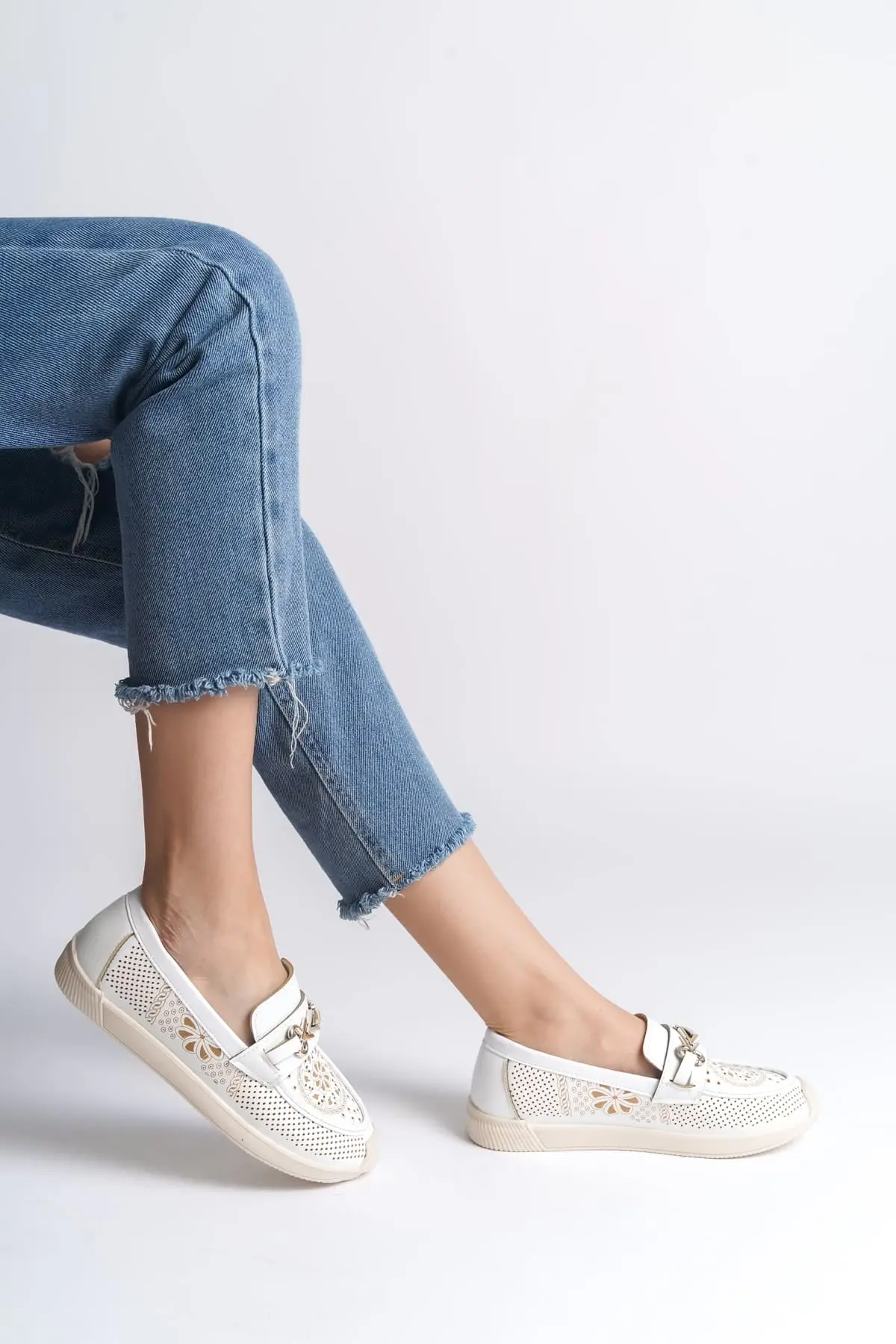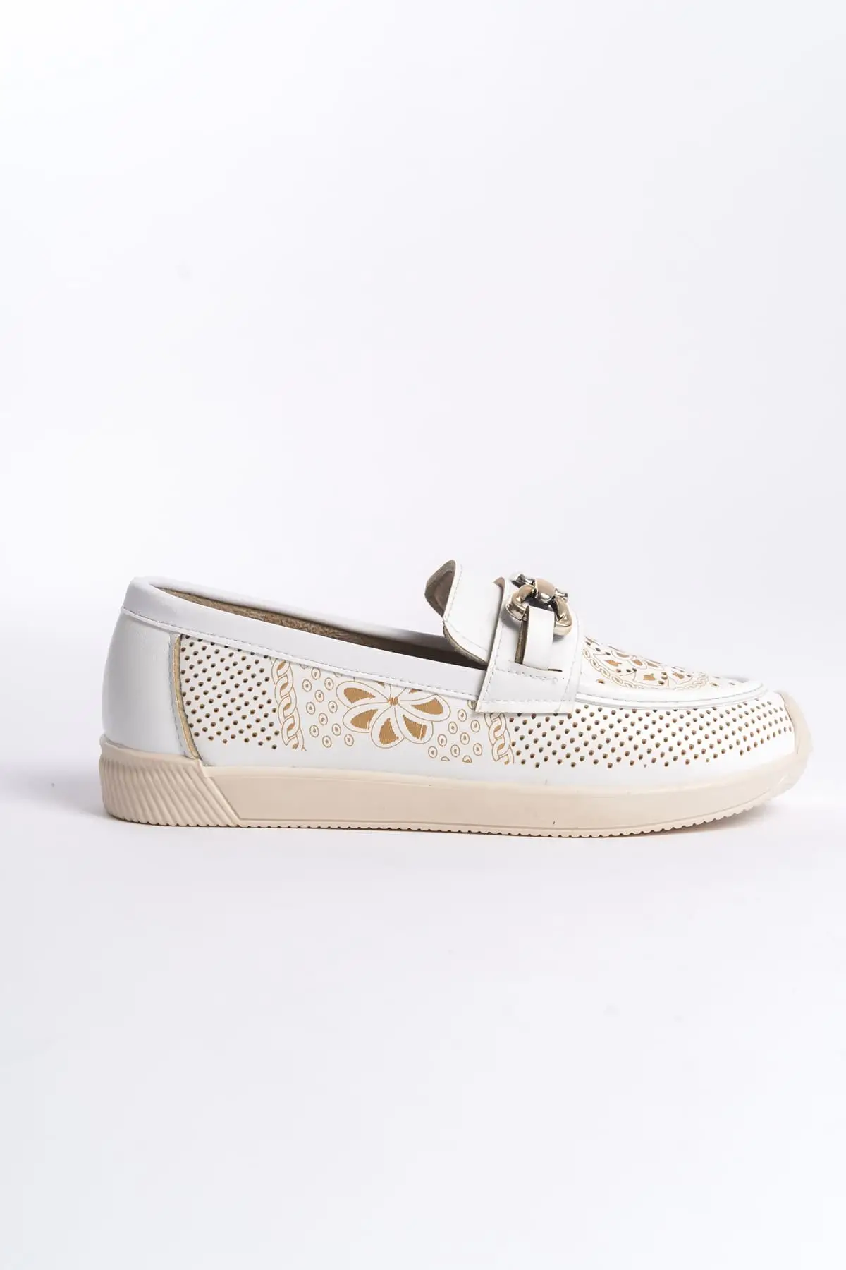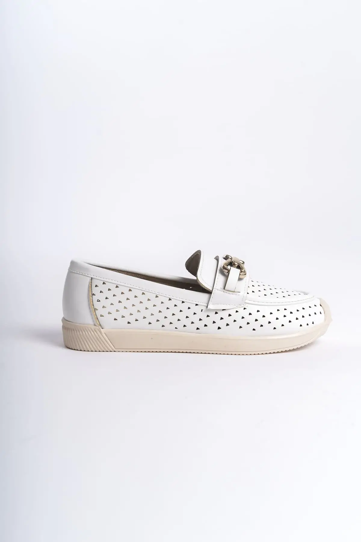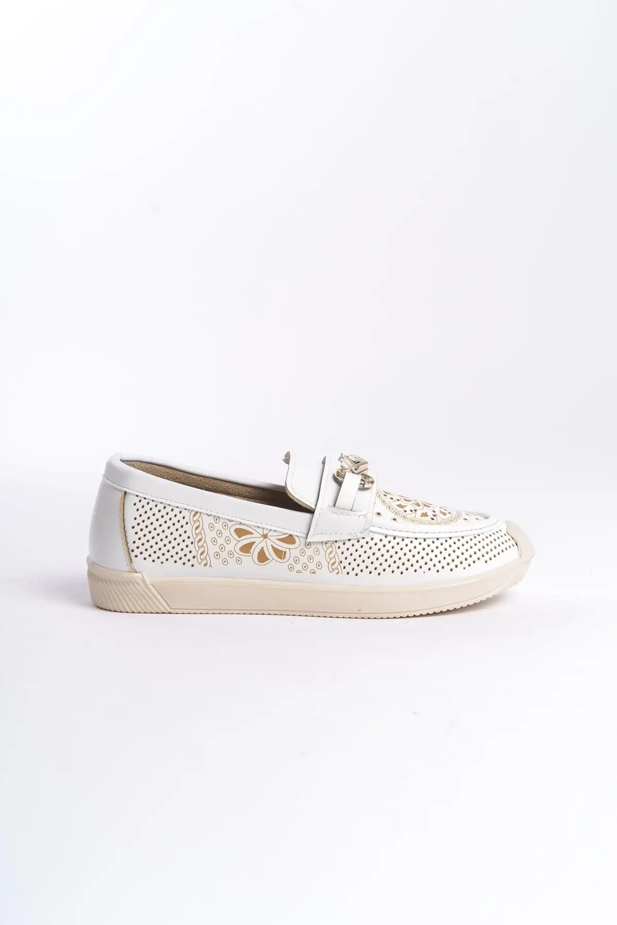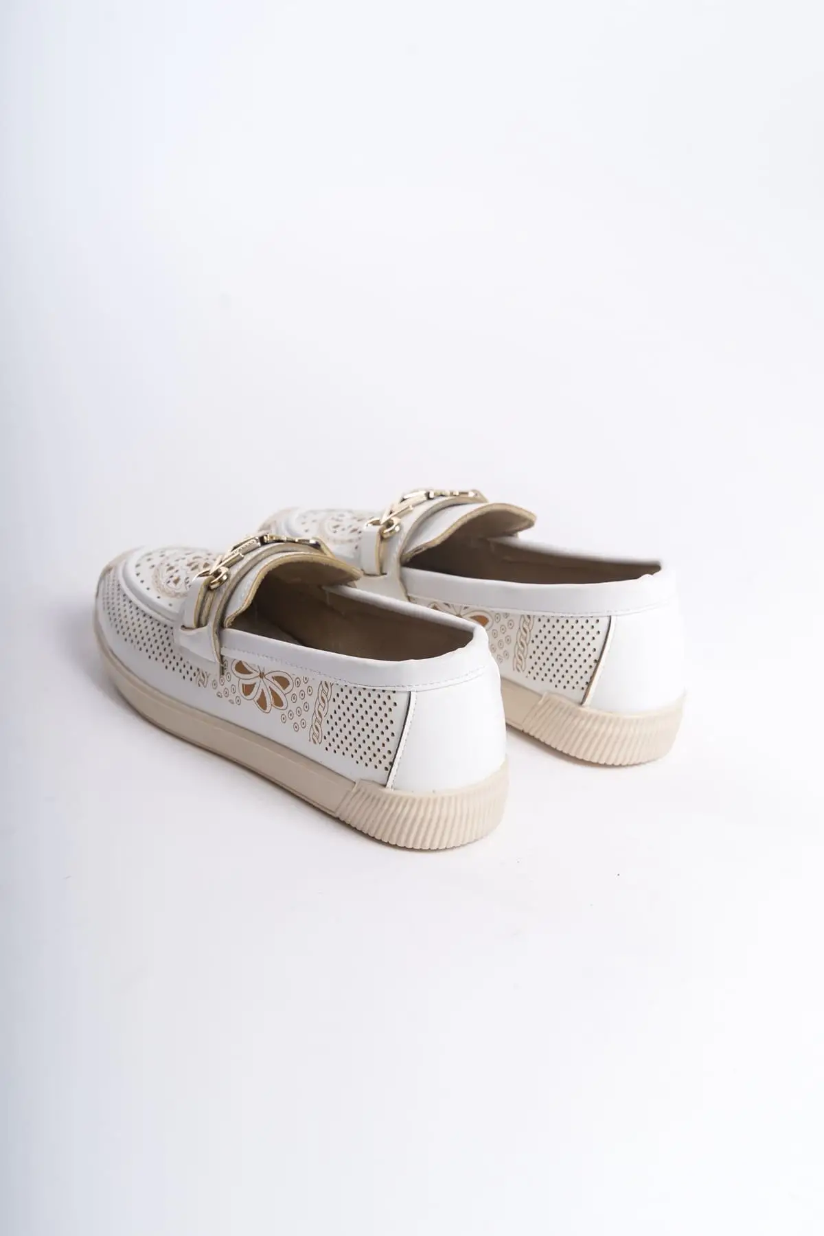 Layla Bağcıksız Ortopedik Rahat Taban Kalp Desenli Kadın Babet Ayakkabı Kt - Beyaz