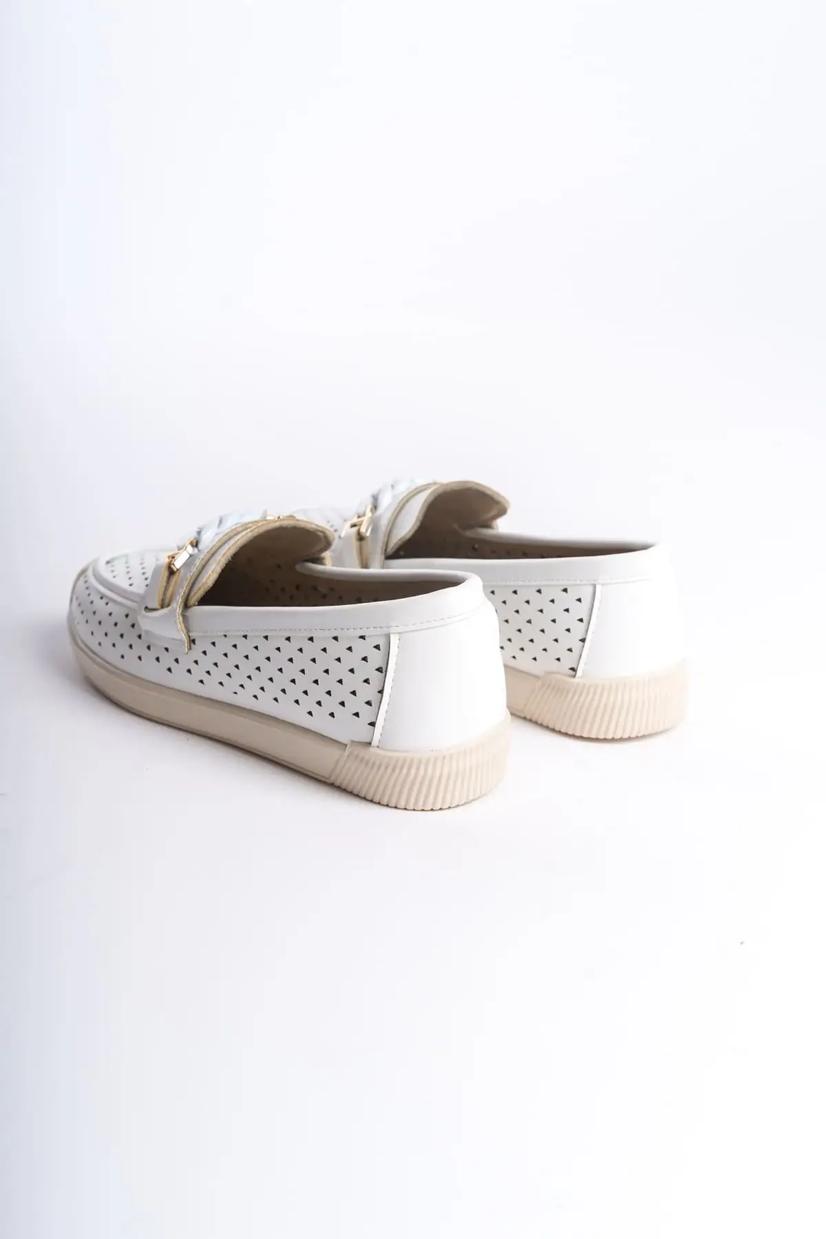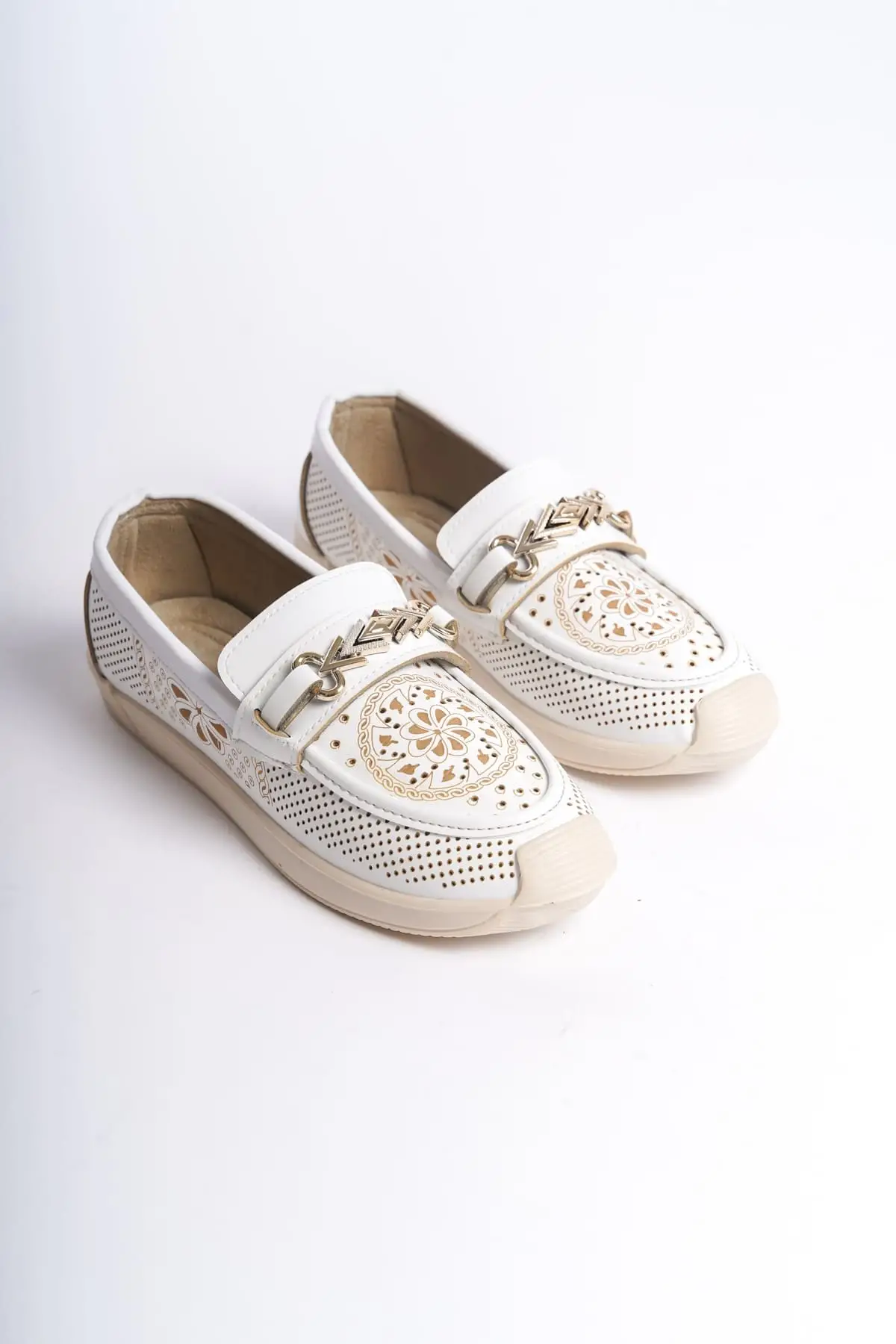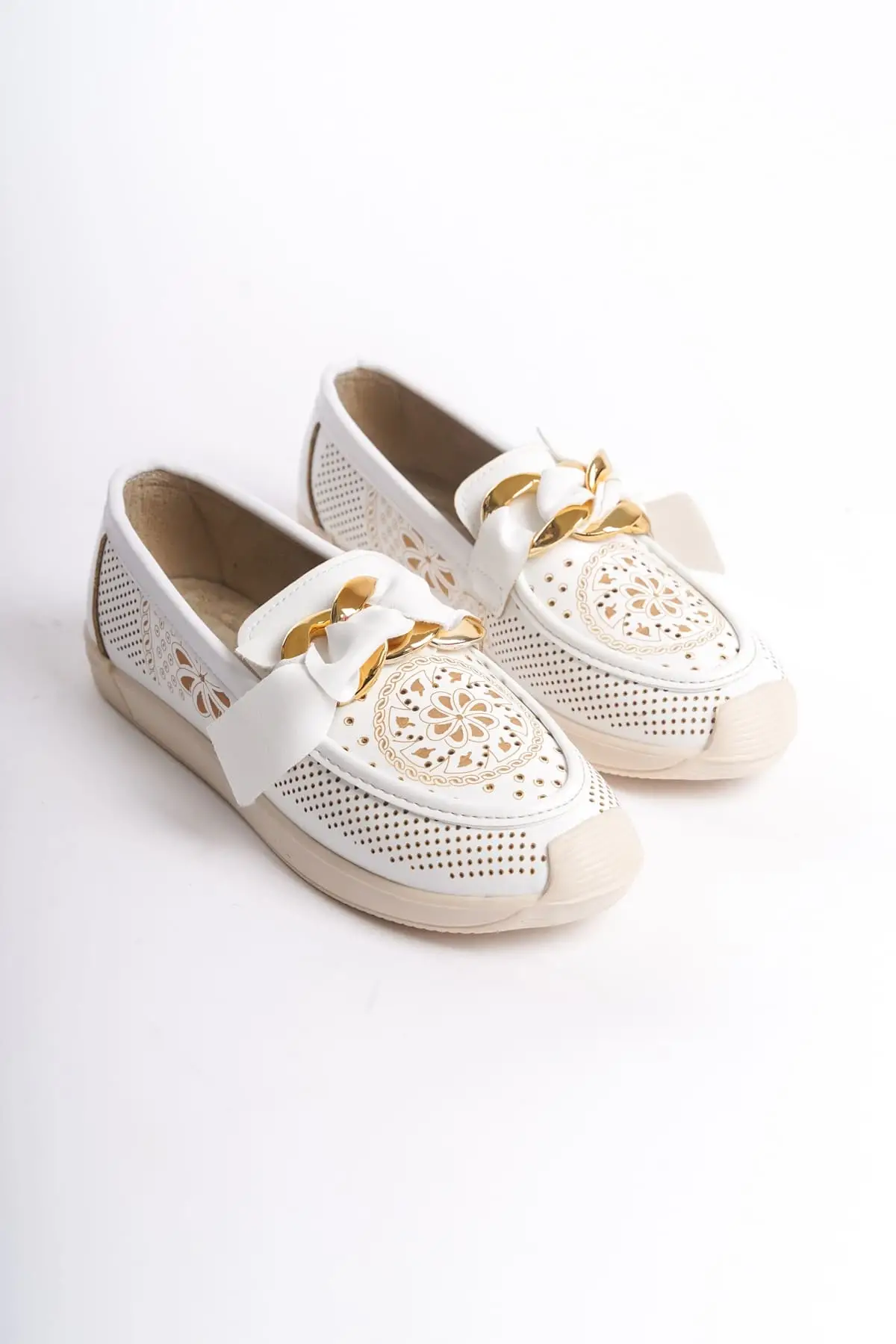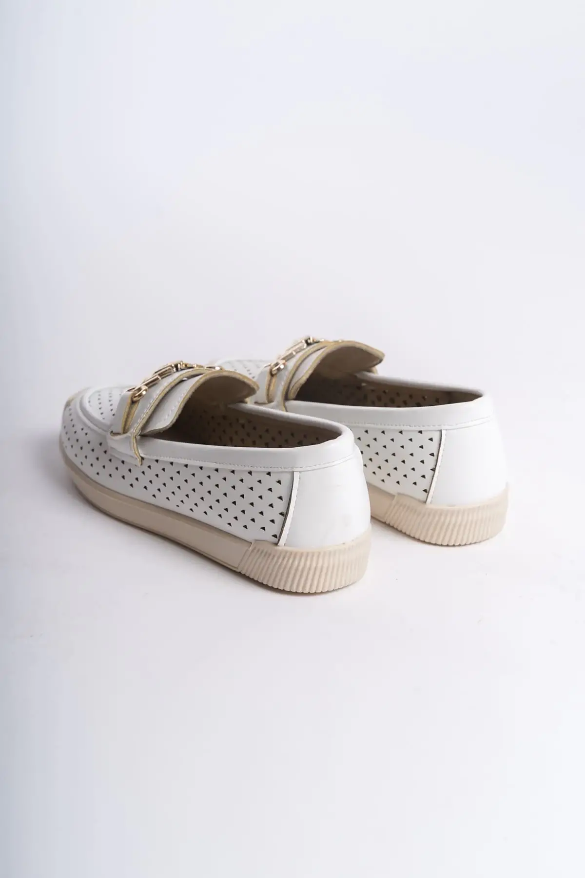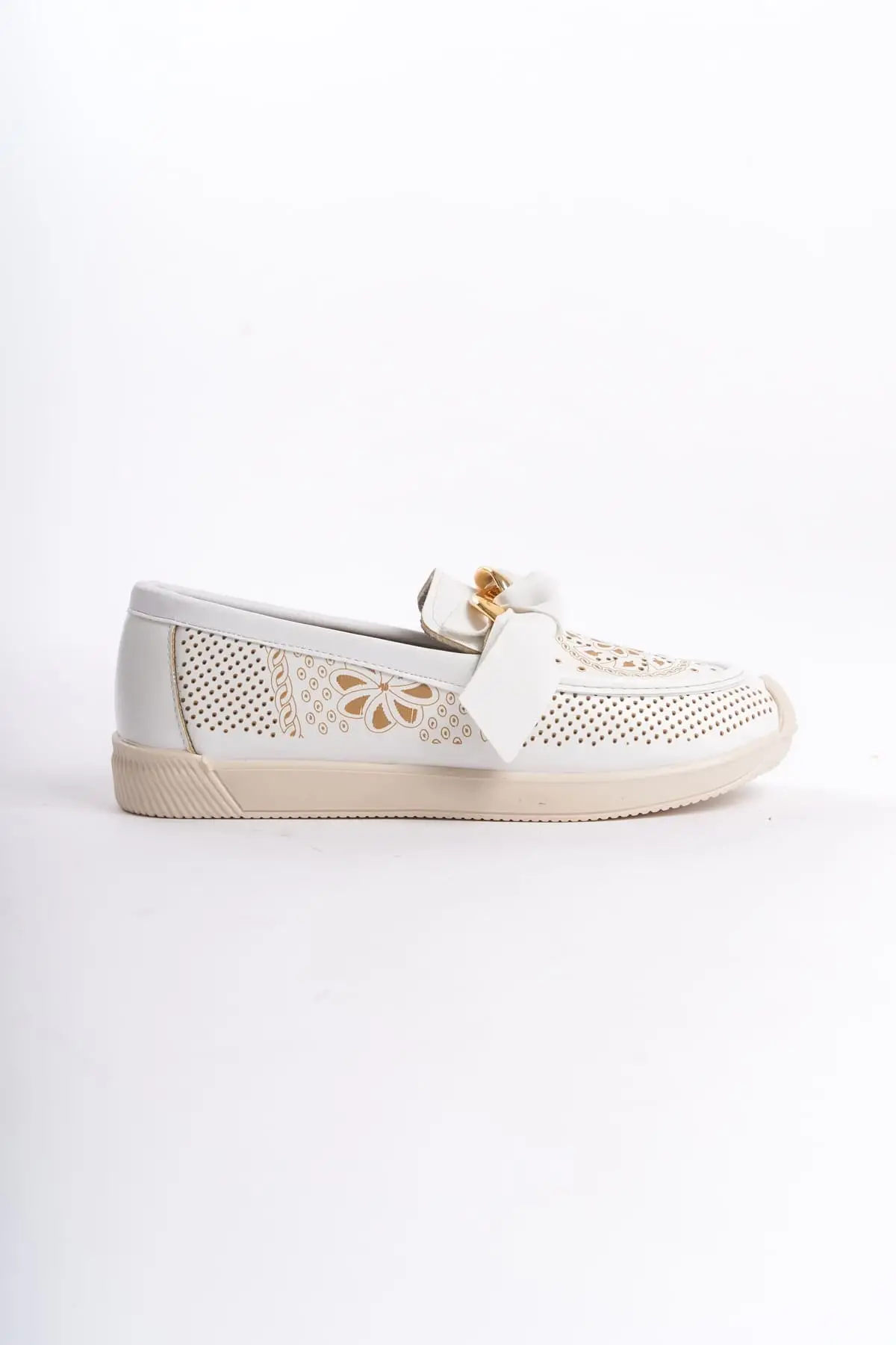 Layla Bağcıksız Ortopedik Rahat Taban Kalp Desenli Kadın Babet Ayakkabı Kt - Beyaz