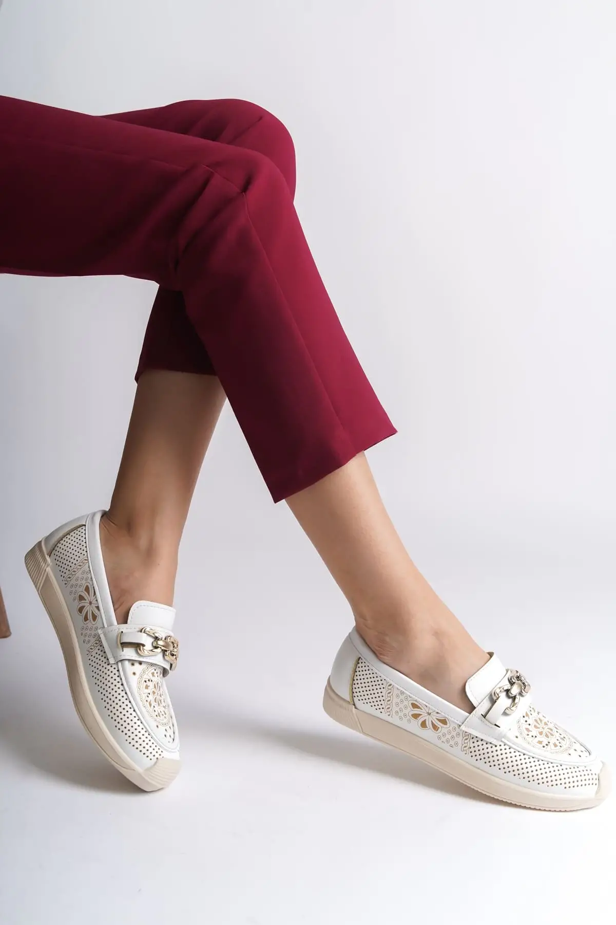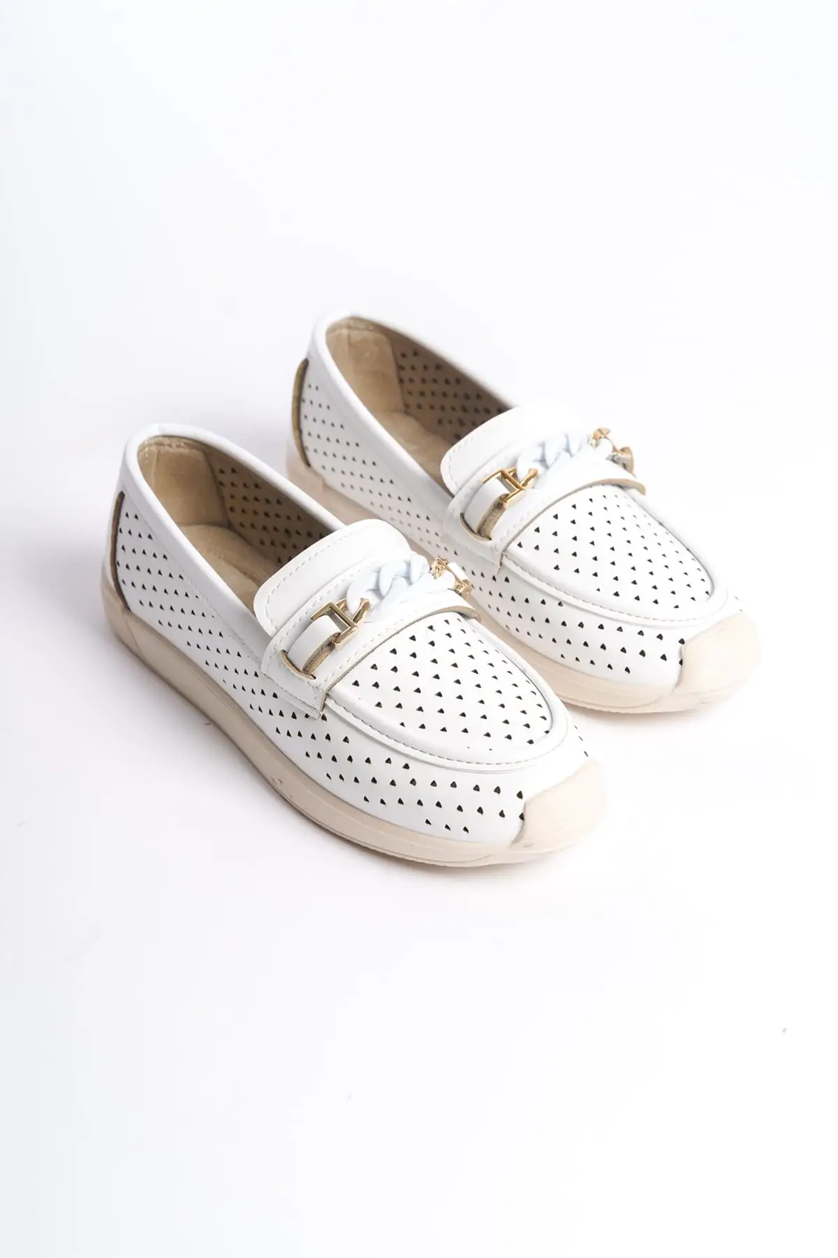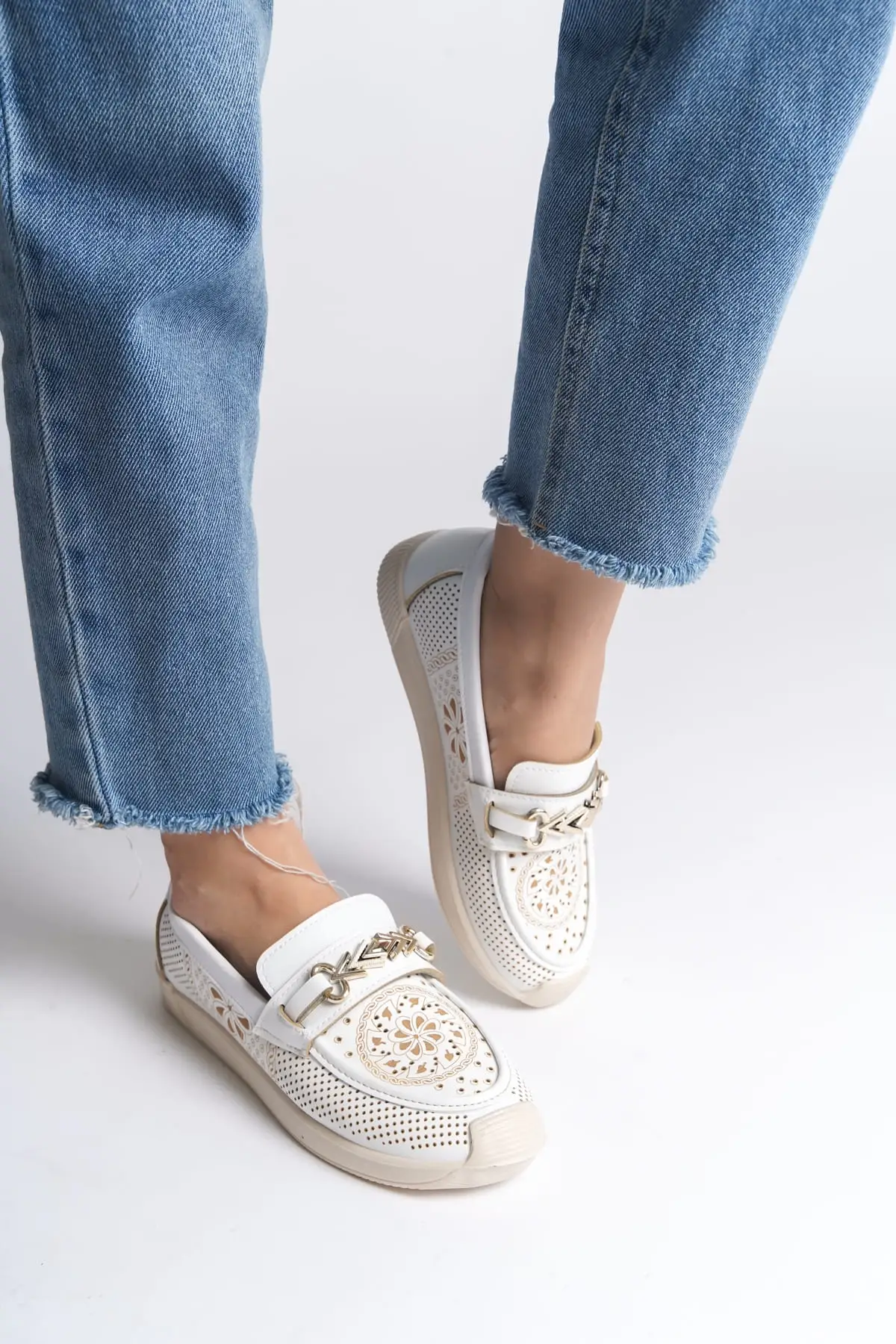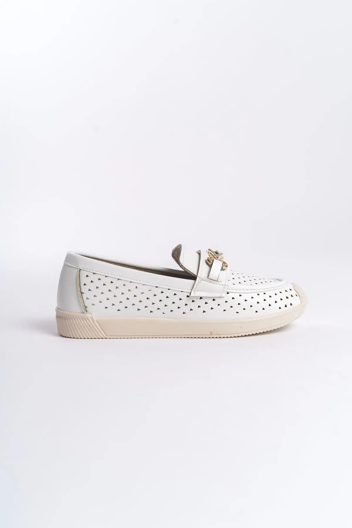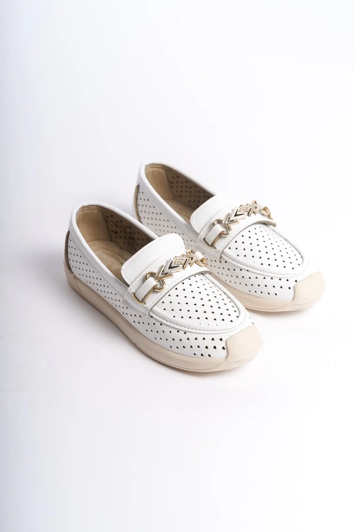 Layla Bağcıksız Ortopedik Rahat Taban Kalp Desenli Kadın Babet Ayakkabı Kt - Beyaz