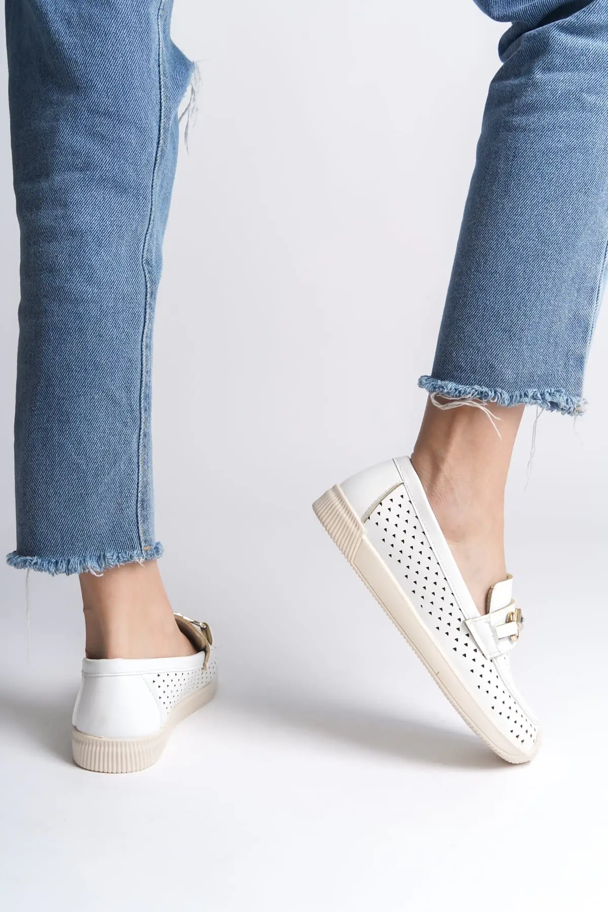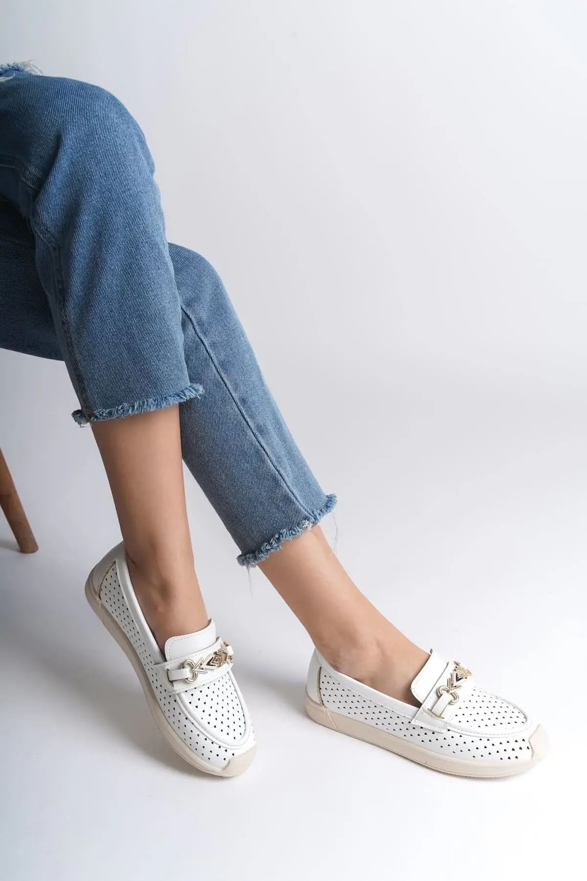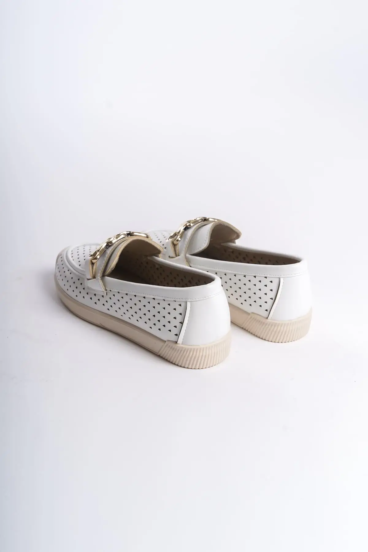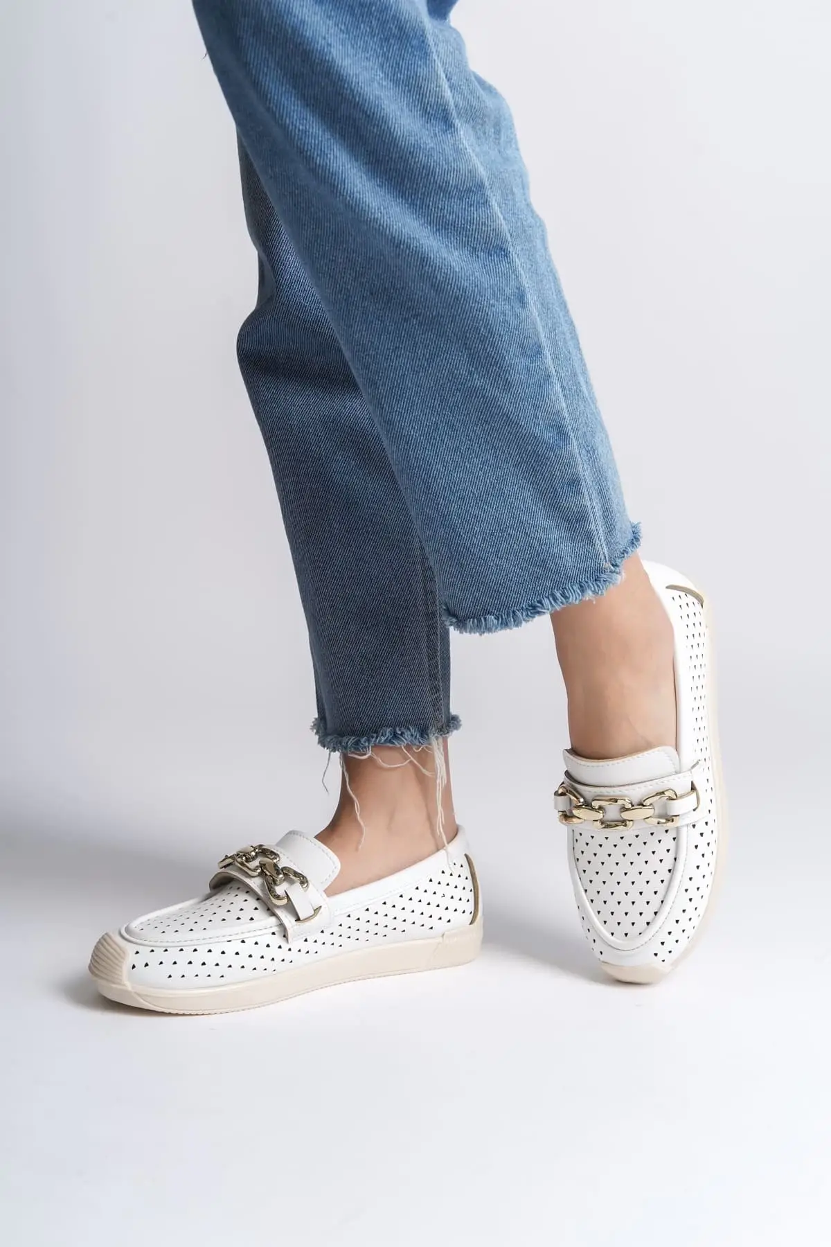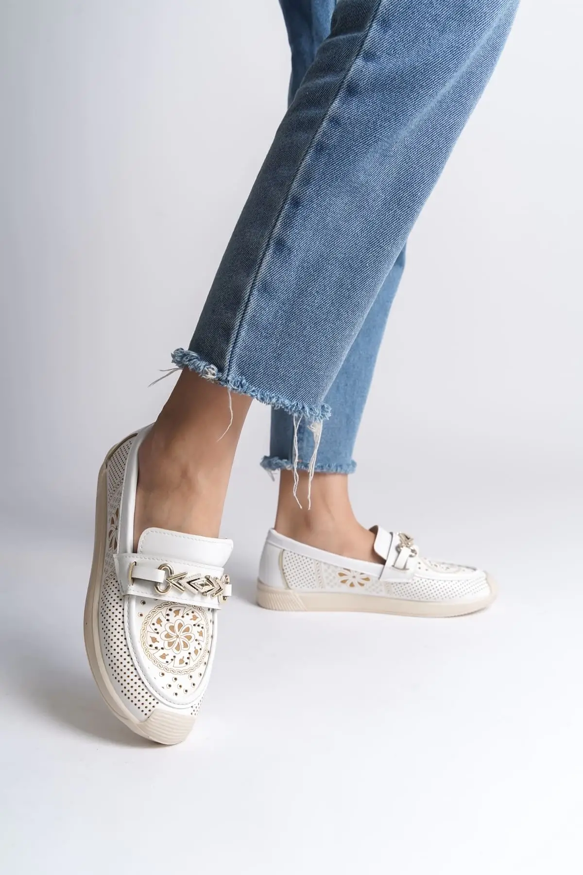 Layla Bağcıksız Ortopedik Rahat Taban Kalp Desenli Kadın Babet Ayakkabı Kt - Beyaz