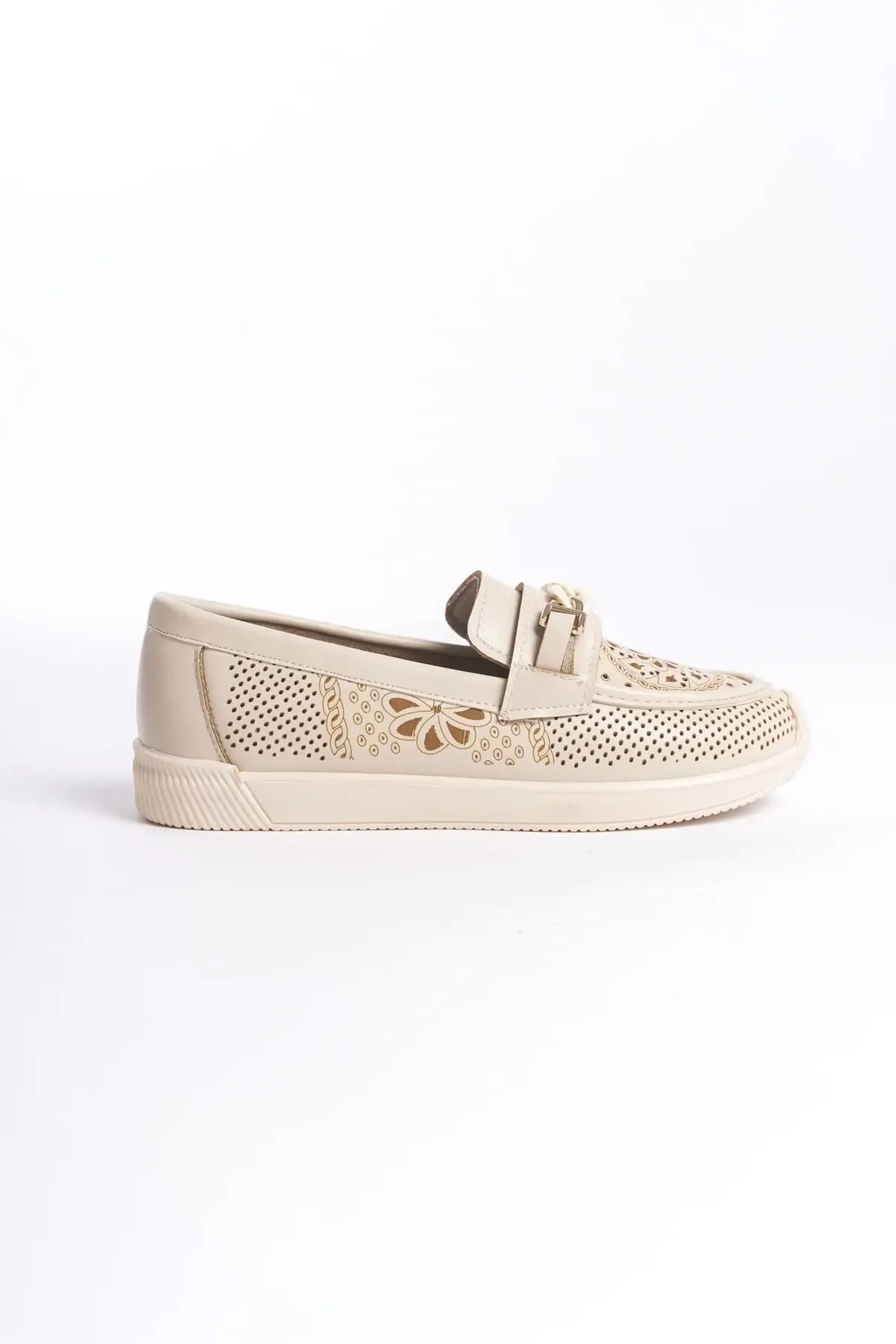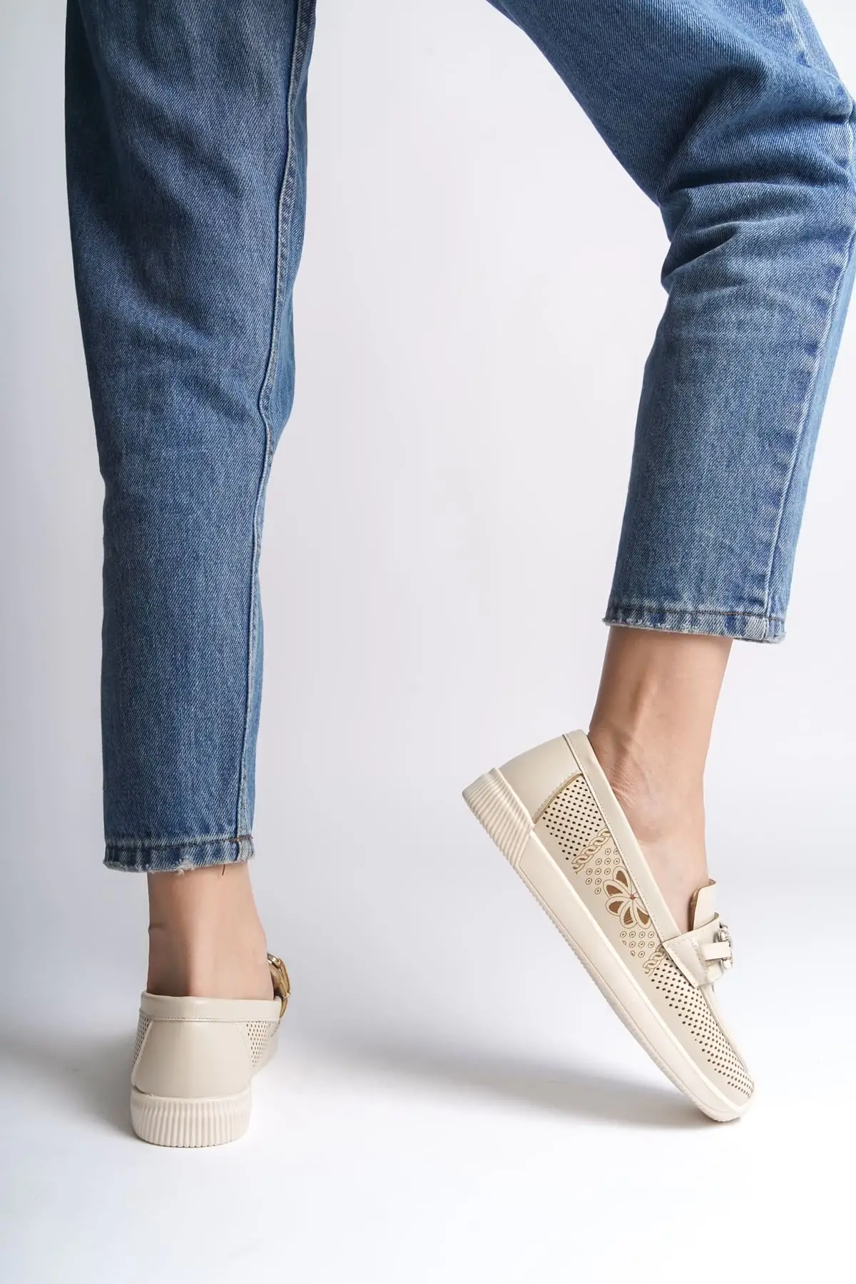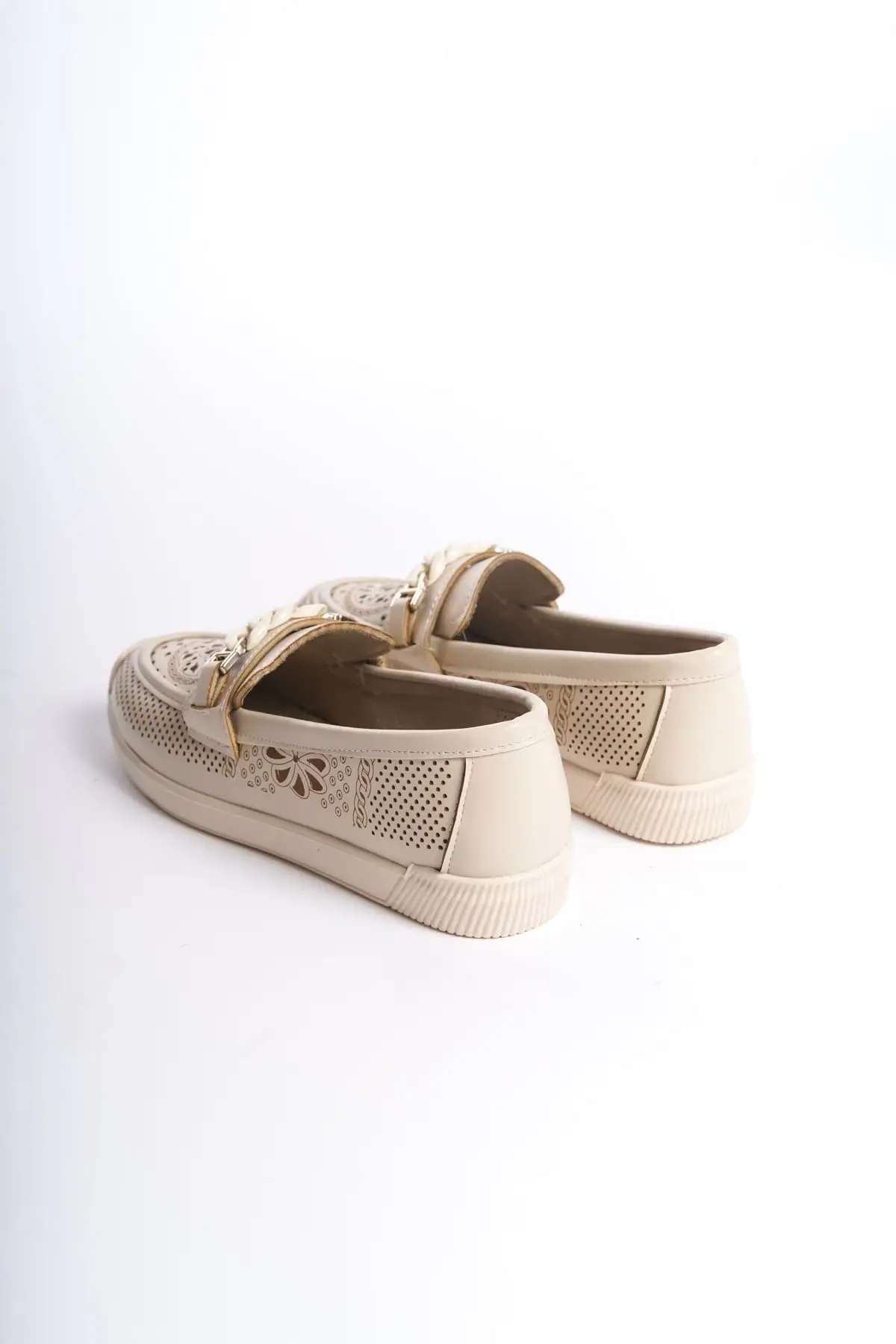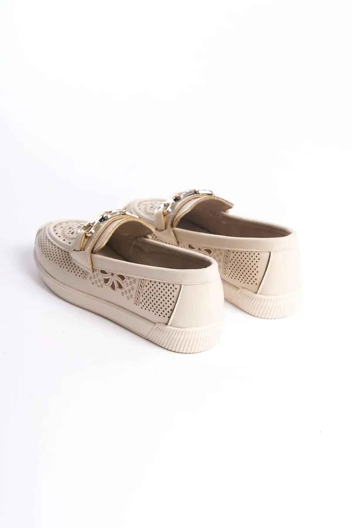 Lydıa Bağcıksız Ortopedik Rahat Taban Kalp Desenli Kadın Babet Ayakkabı Kt - Krem