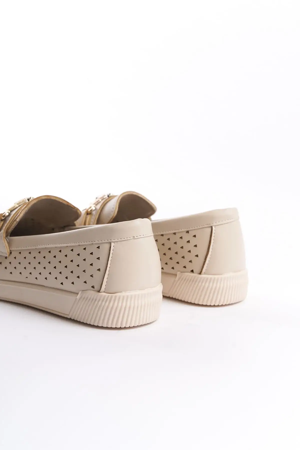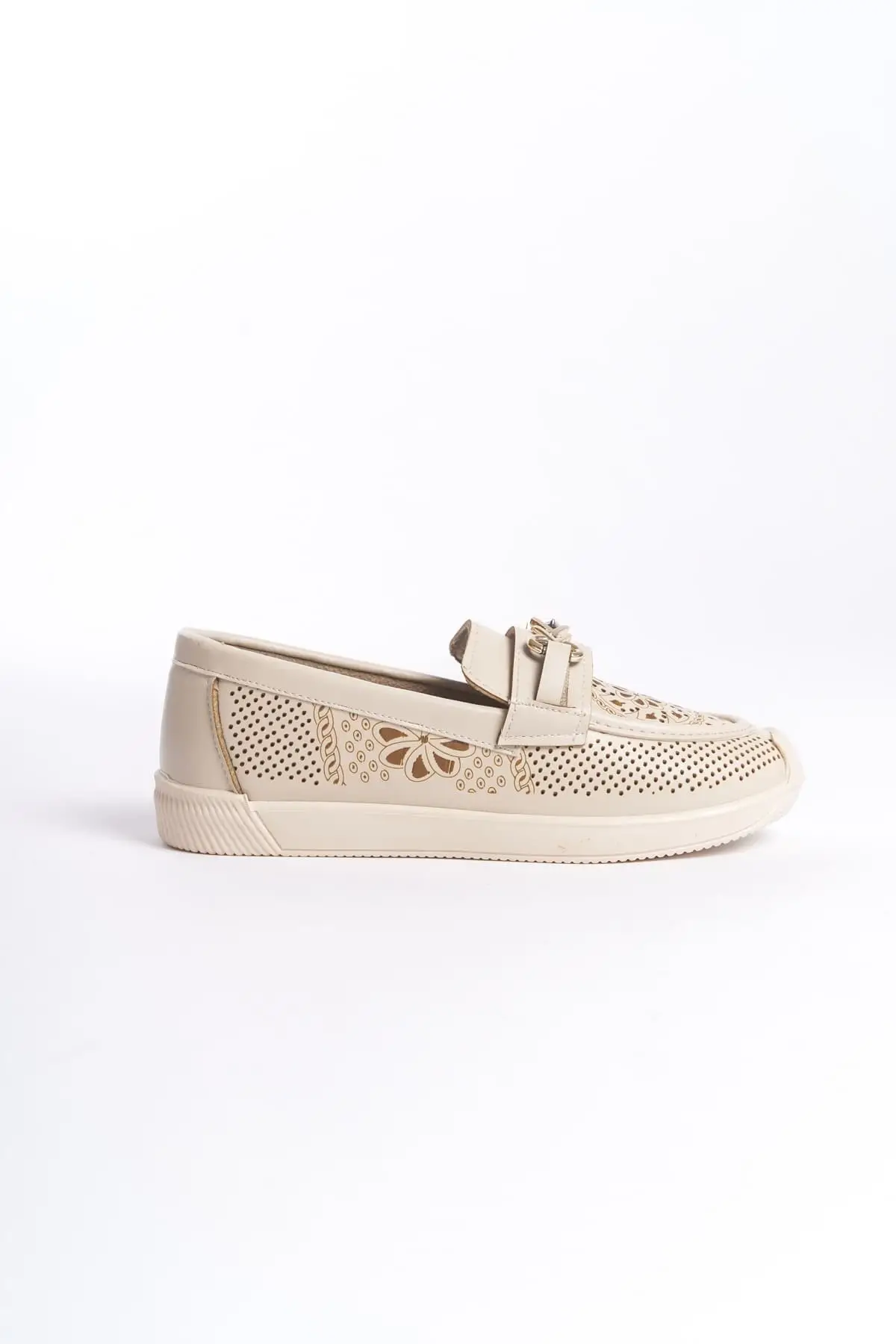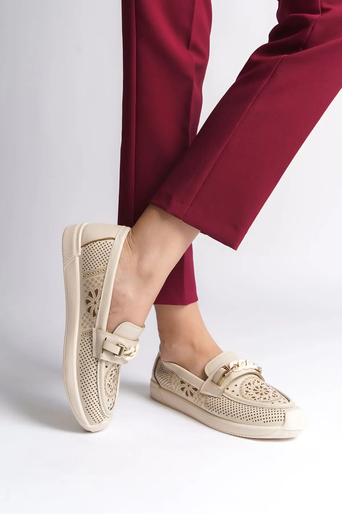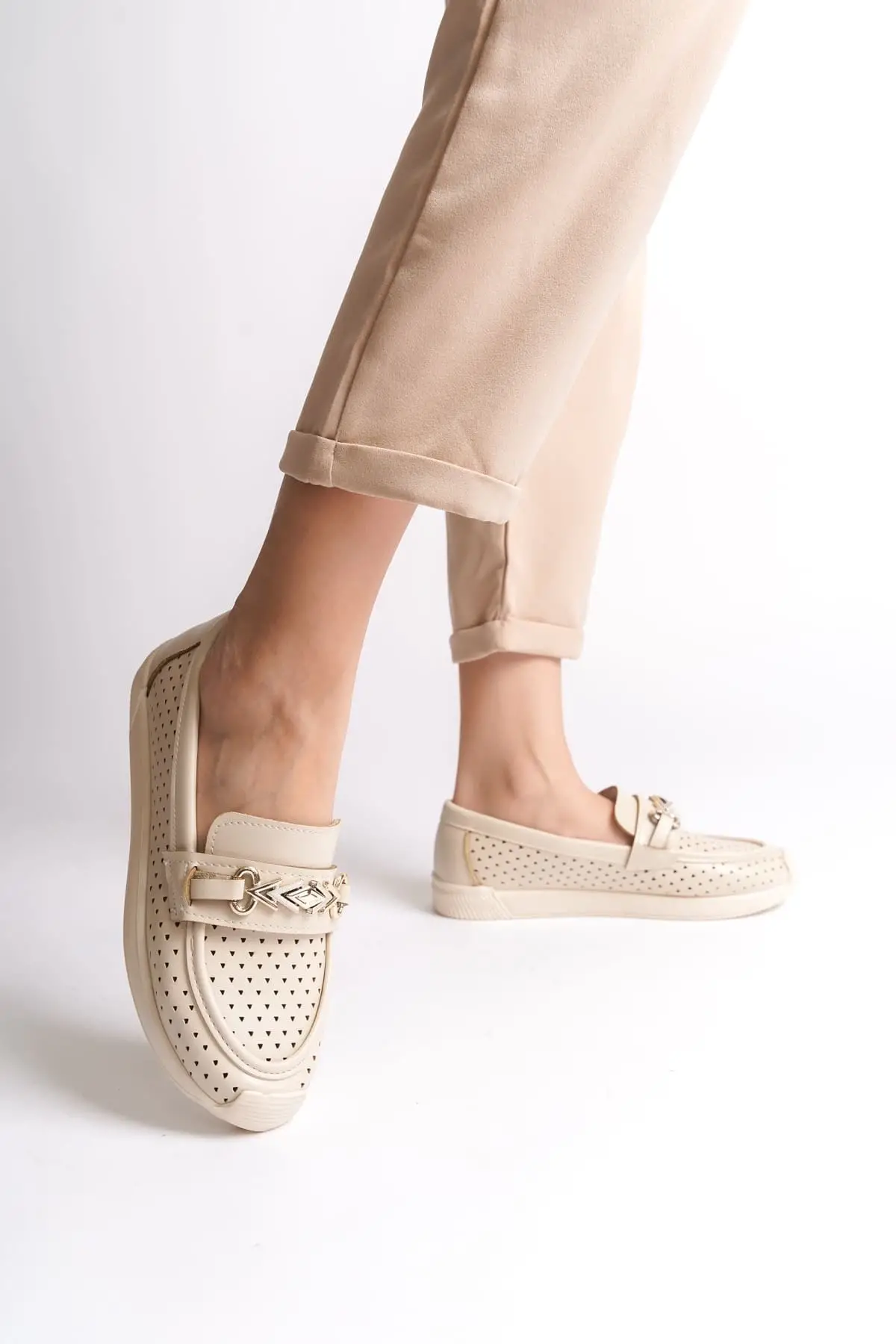 Lydıa Bağcıksız Ortopedik Rahat Taban Kalp Desenli Kadın Babet Ayakkabı Kt - Krem