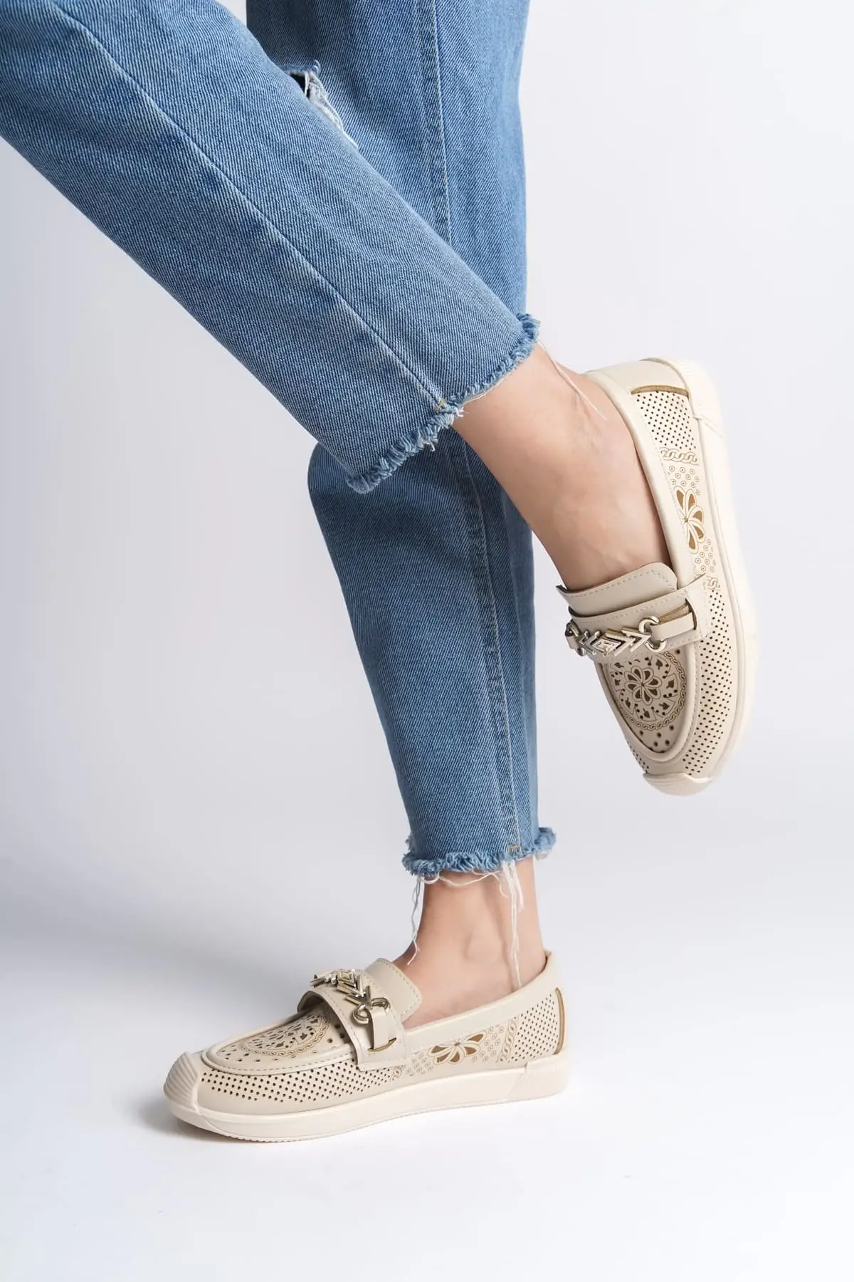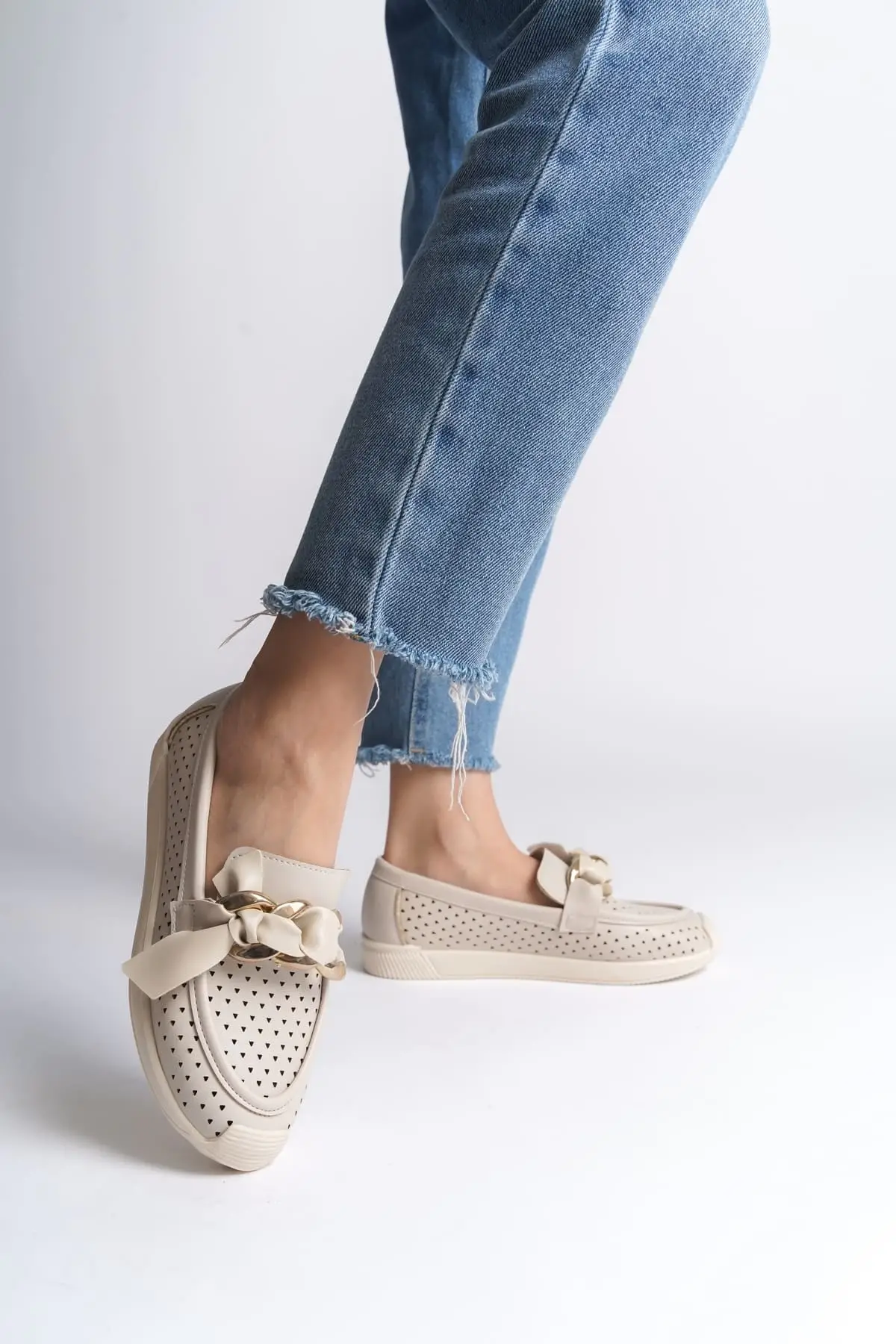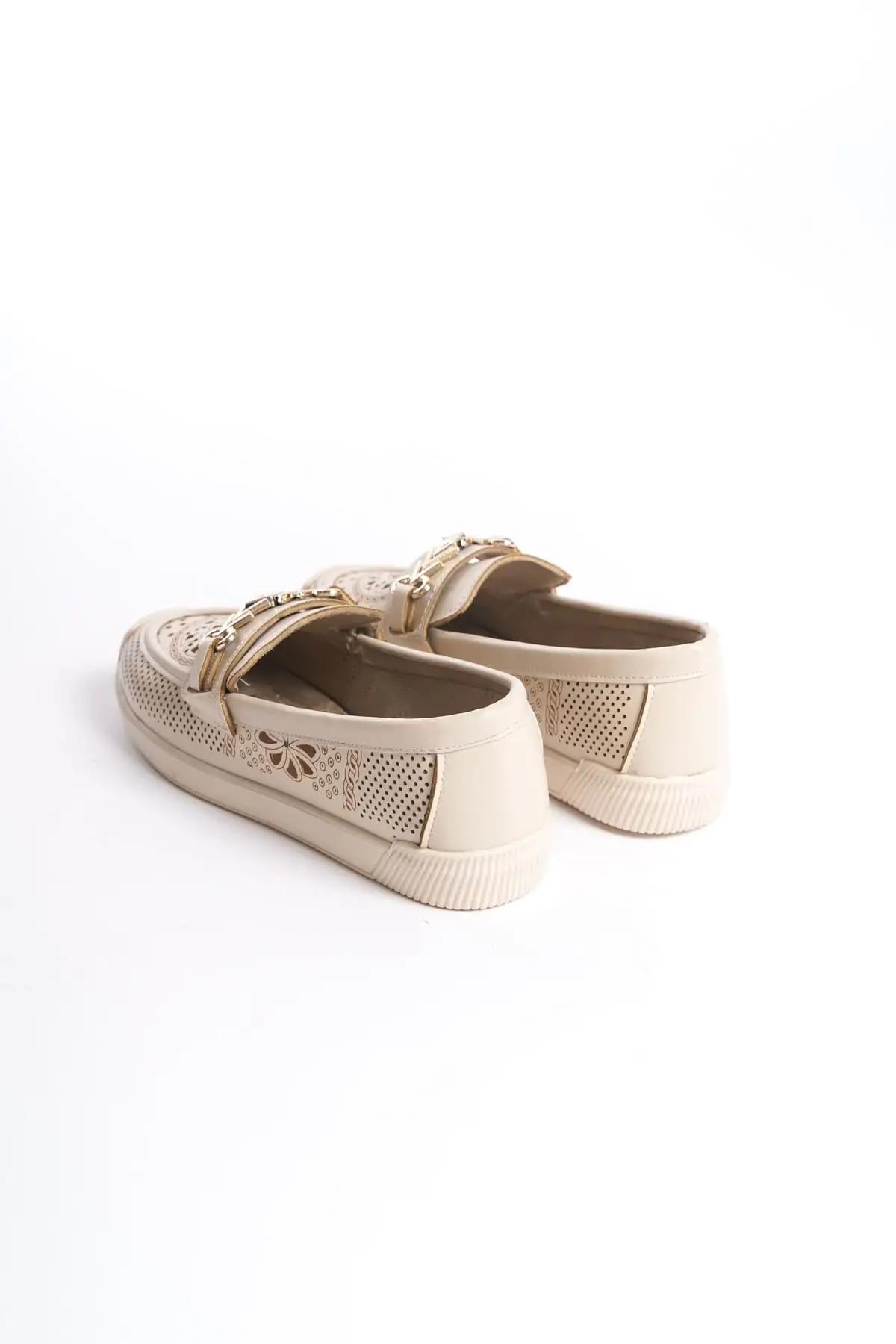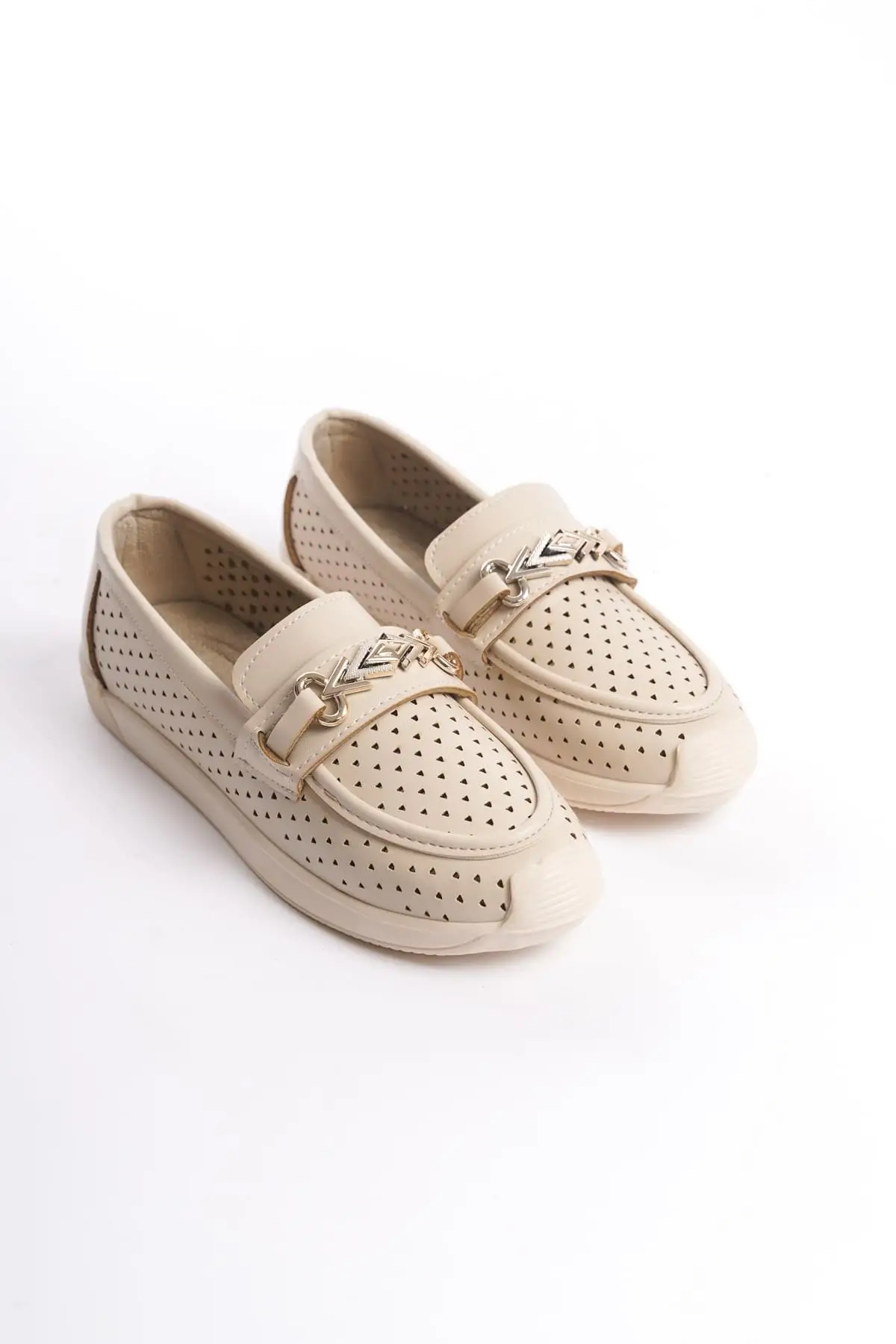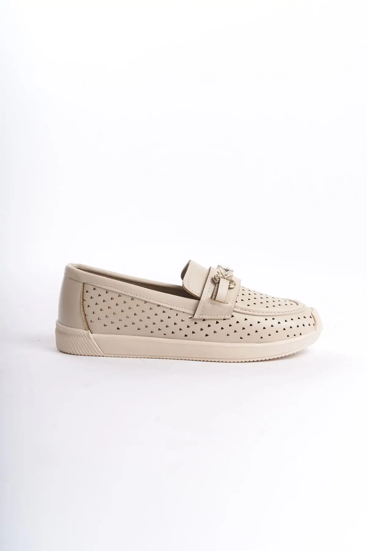 Lydıa Bağcıksız Ortopedik Rahat Taban Kalp Desenli Kadın Babet Ayakkabı Kt - Krem