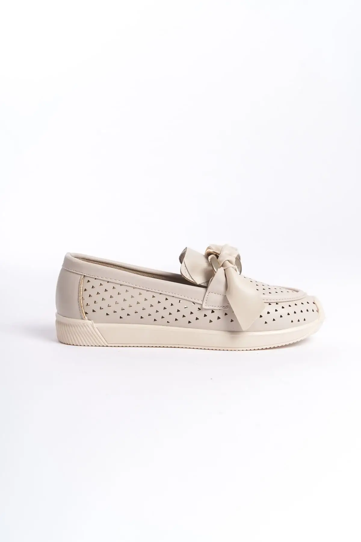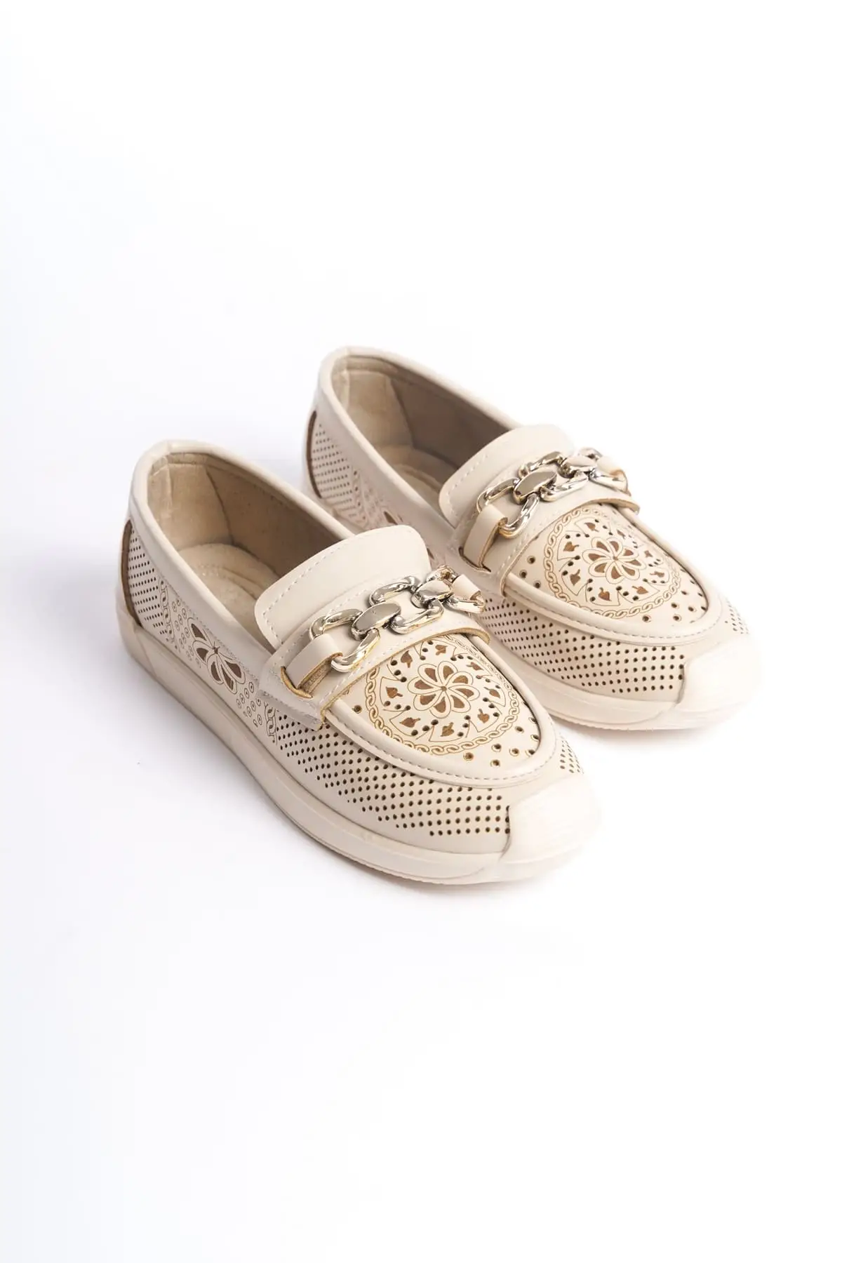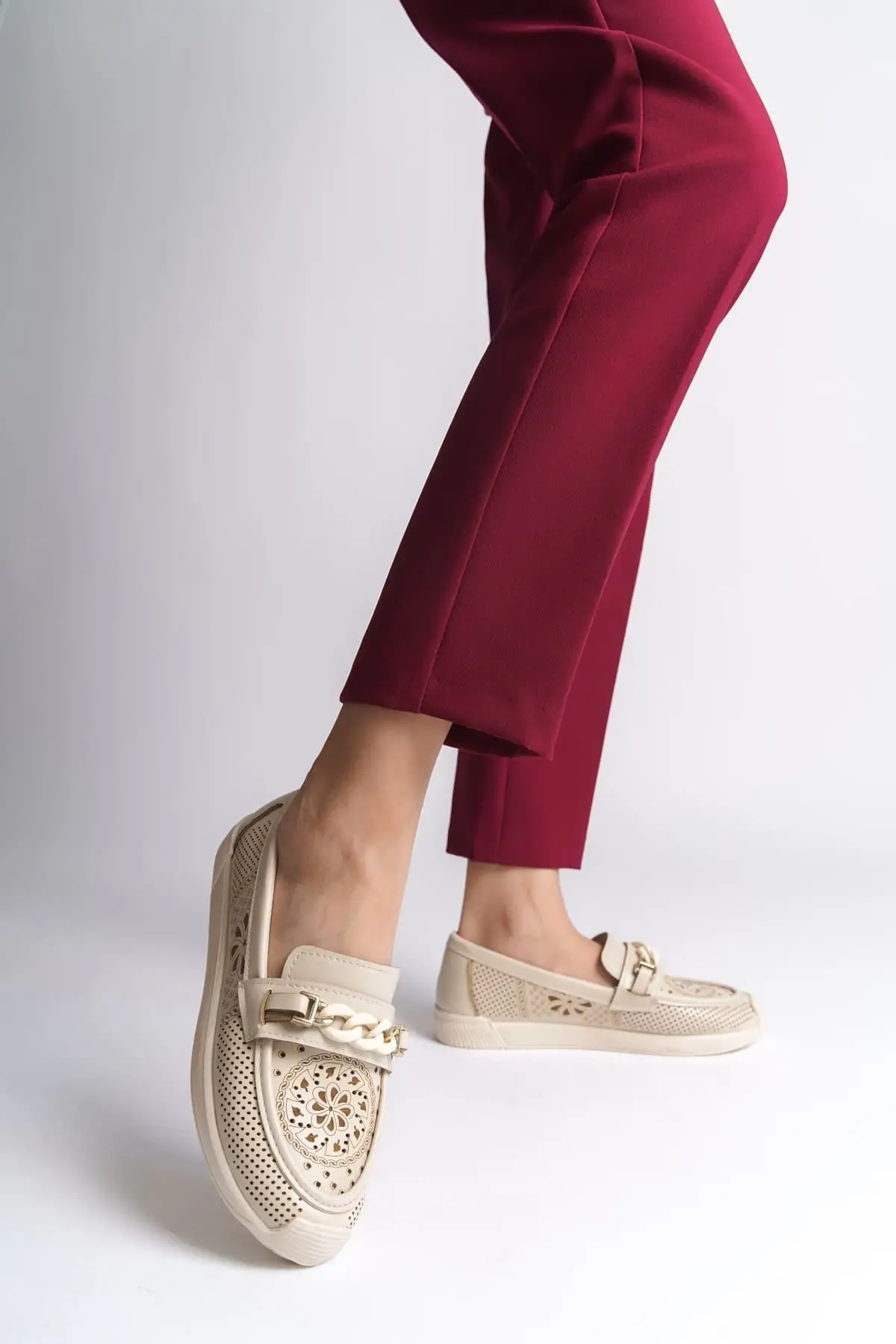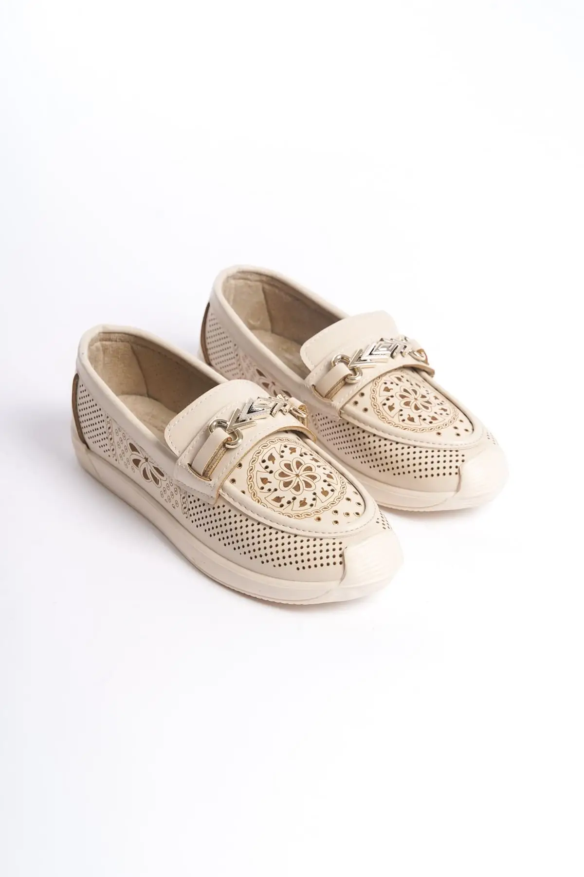 Lydıa Bağcıksız Ortopedik Rahat Taban Kalp Desenli Kadın Babet Ayakkabı Kt - Krem