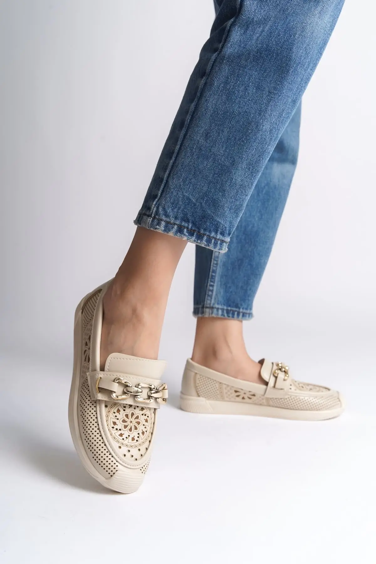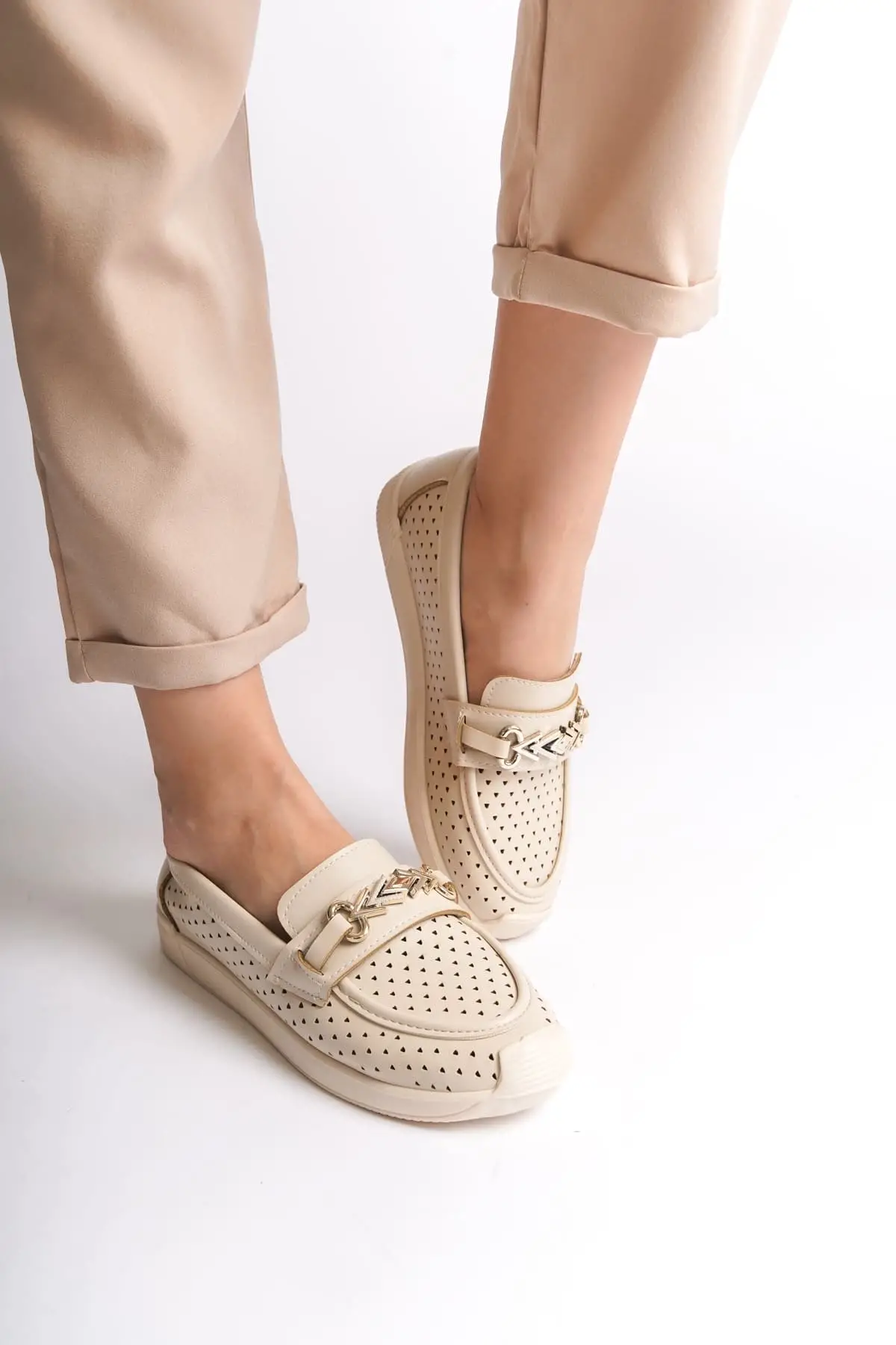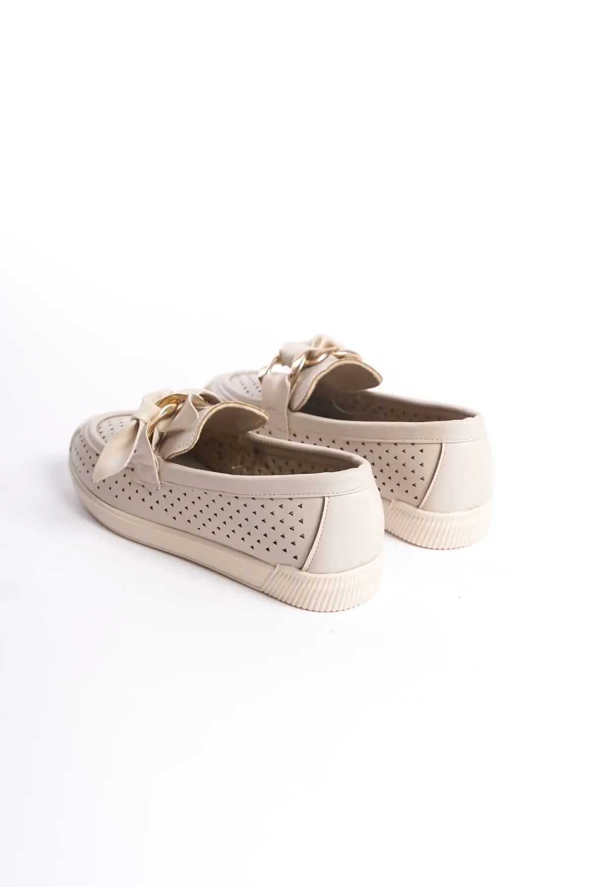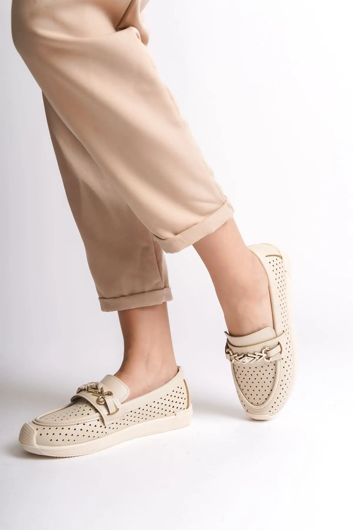 Lydıa Bağcıksız Ortopedik Rahat Taban Kalp Desenli Kadın Babet Ayakkabı Kt - Krem