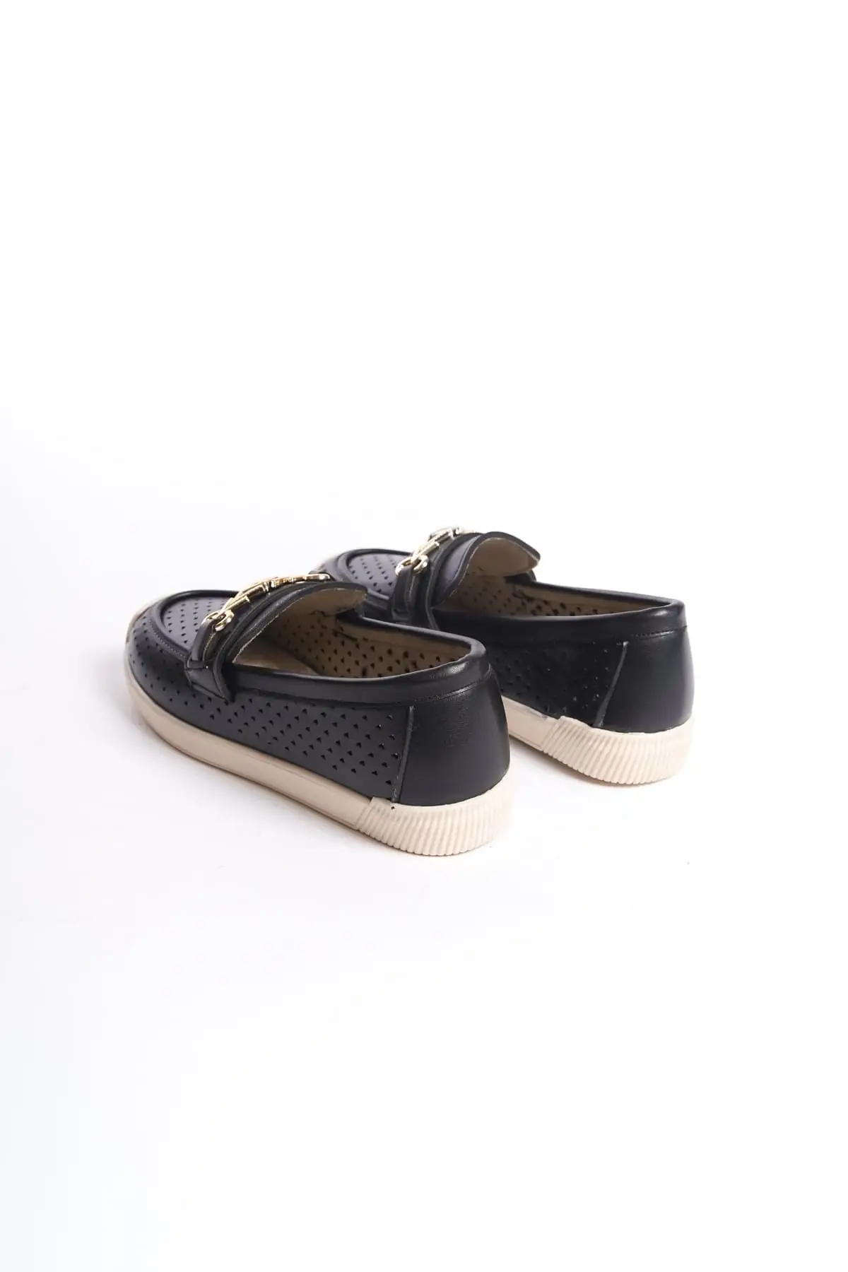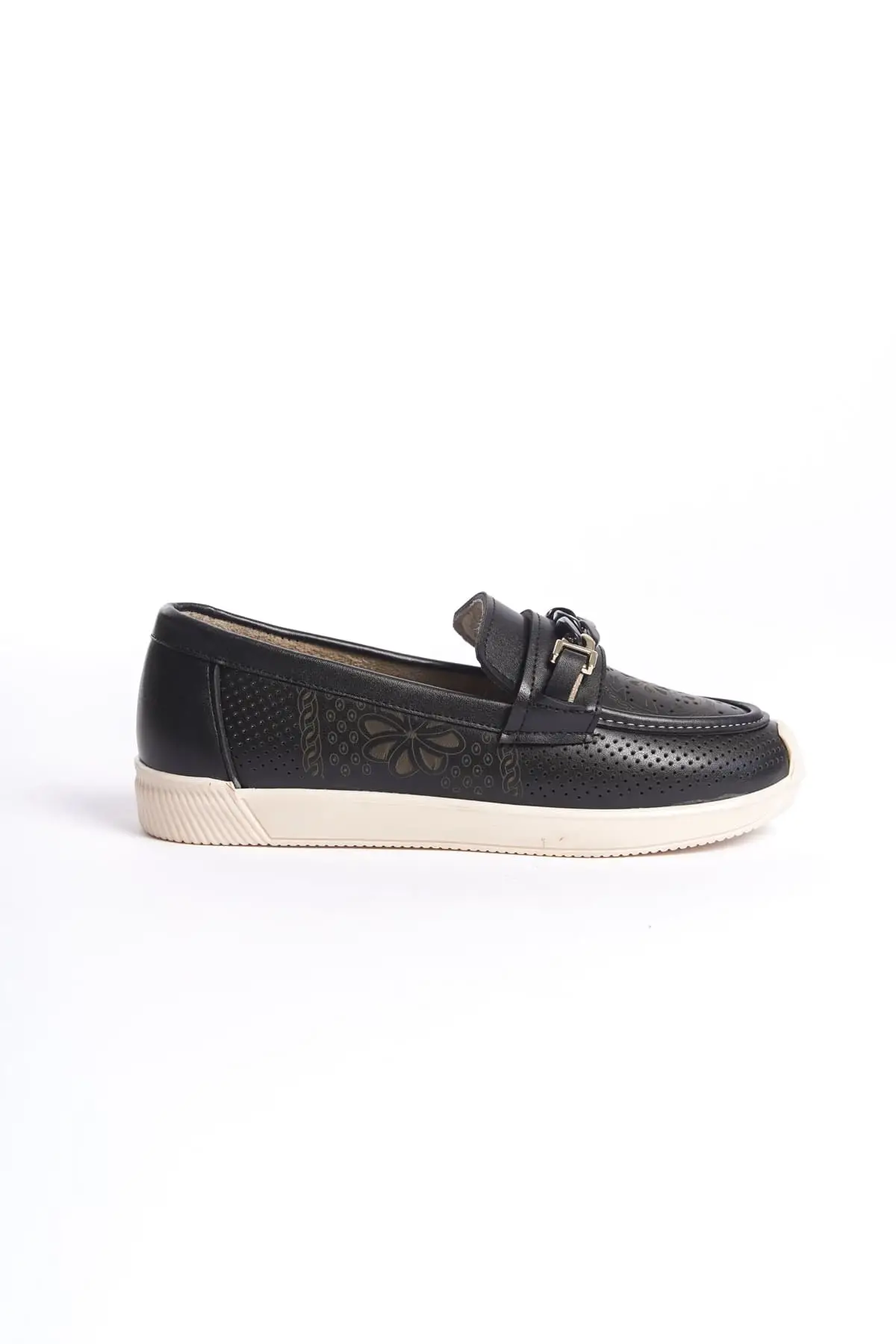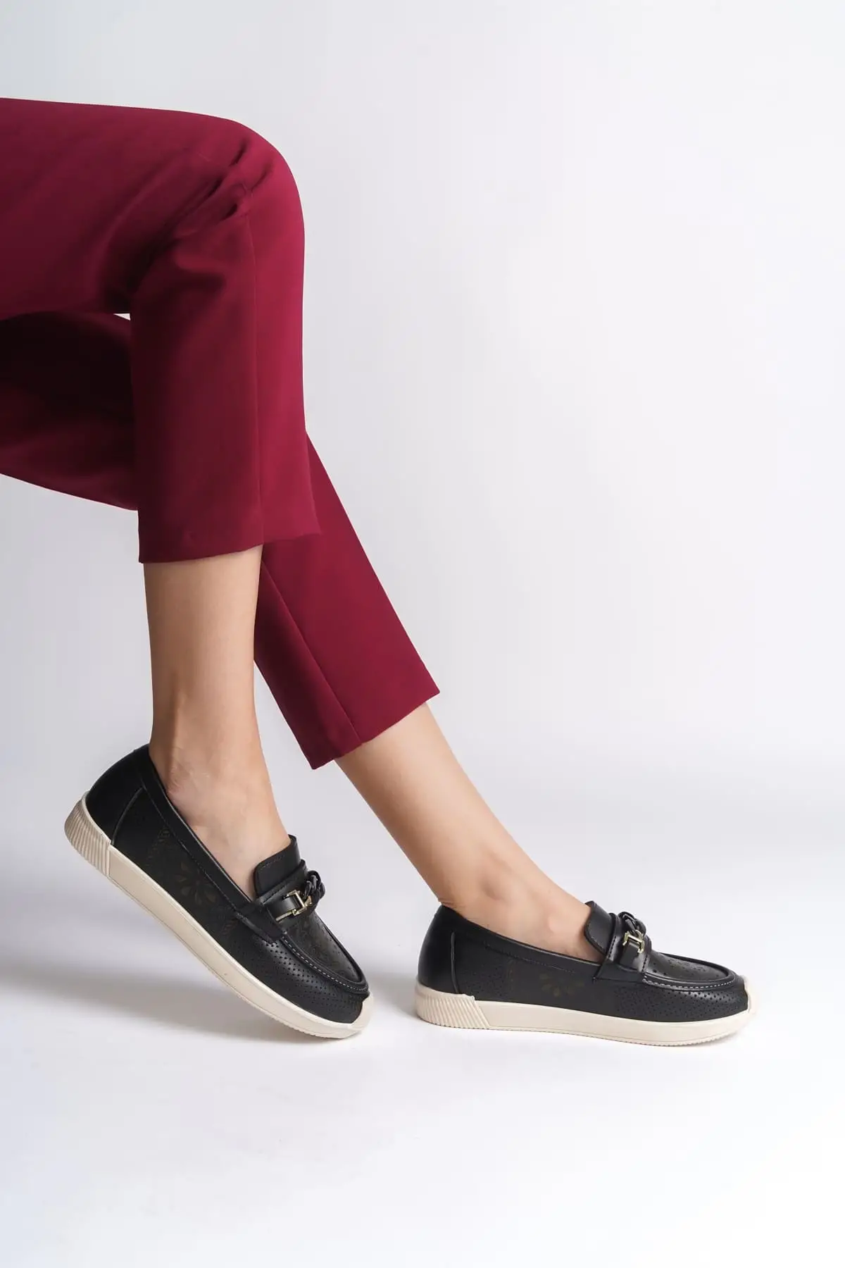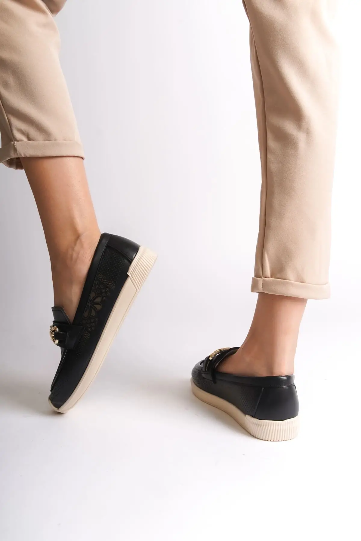 Layla Bağcıksız Ortopedik Rahat Taban Kalp Desenli Kadın Babet Ayakkabı Kt - Siyah