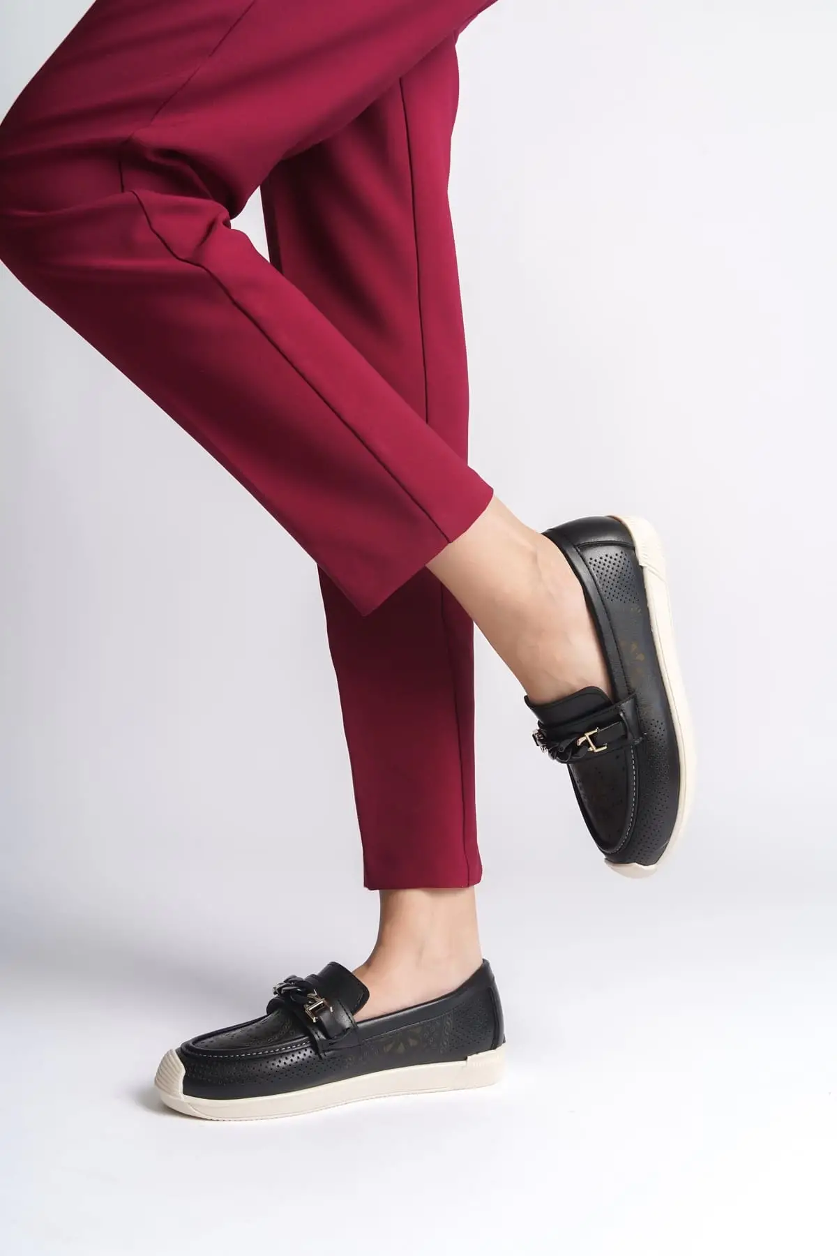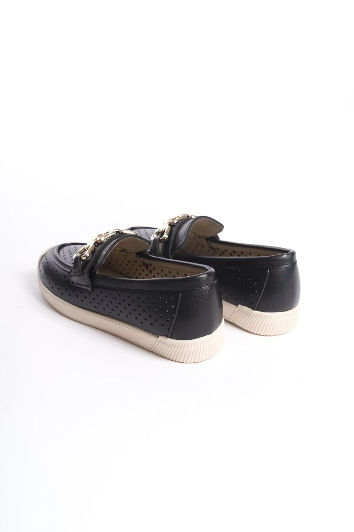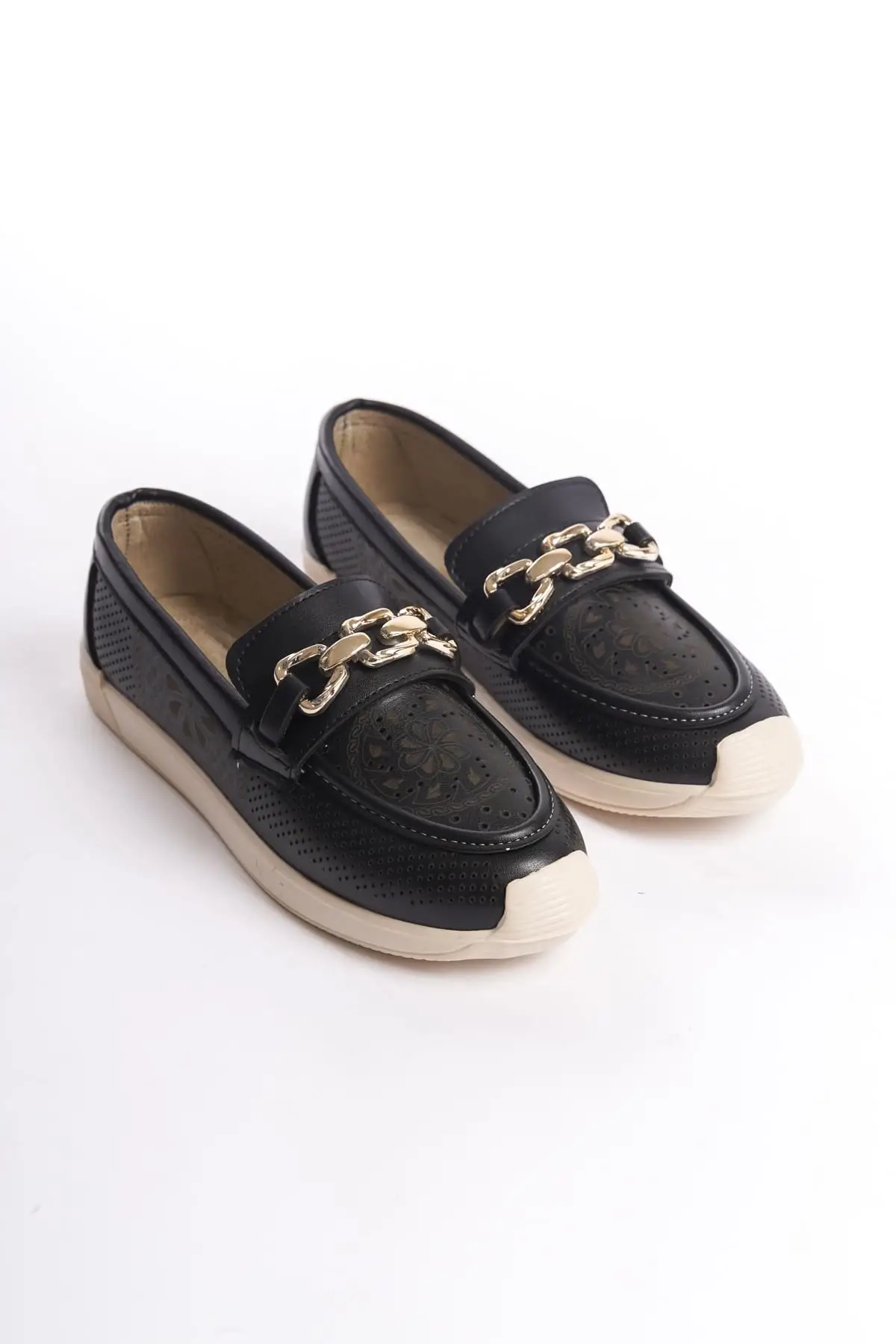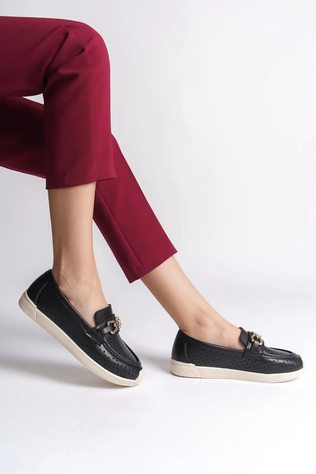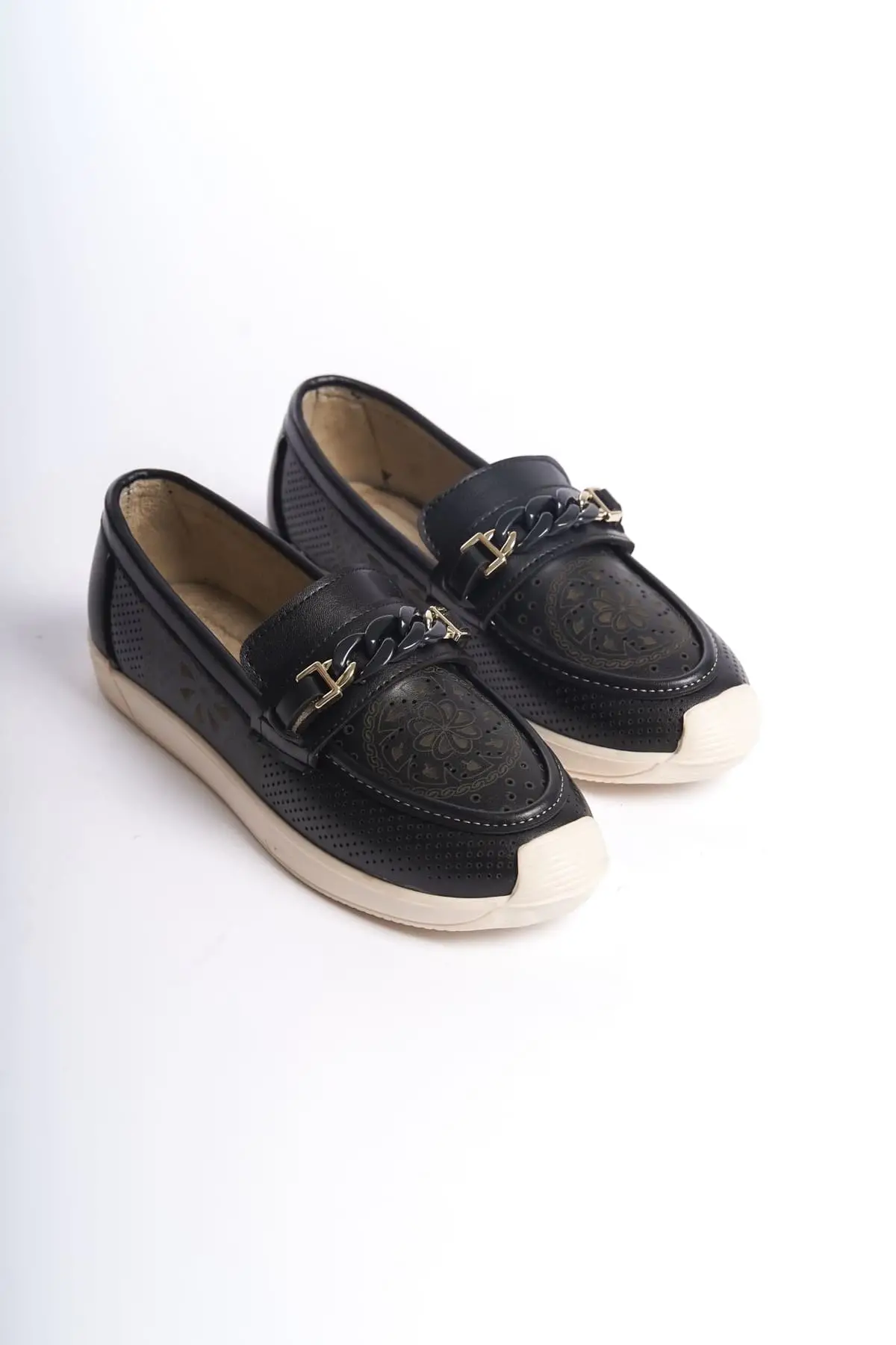 Layla Bağcıksız Ortopedik Rahat Taban Kalp Desenli Kadın Babet Ayakkabı Kt - Siyah