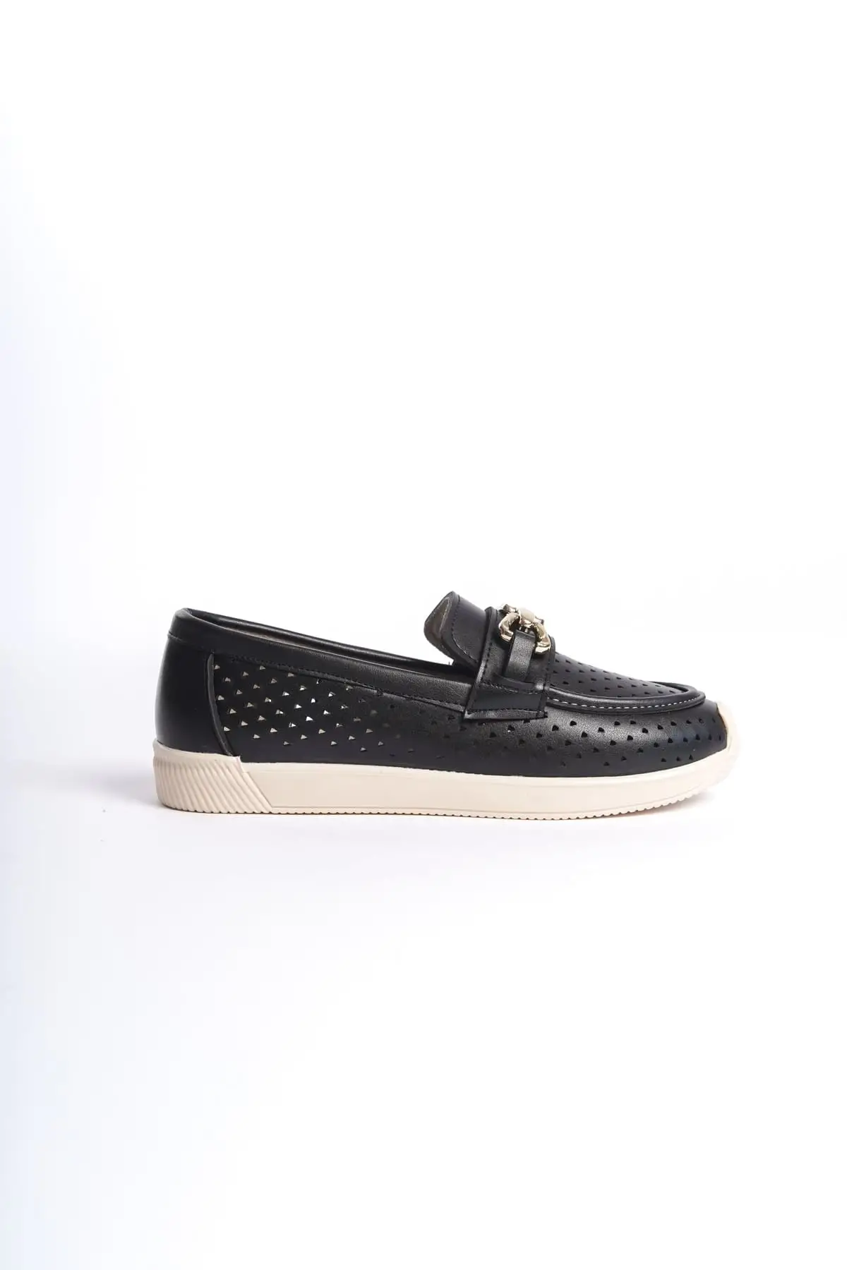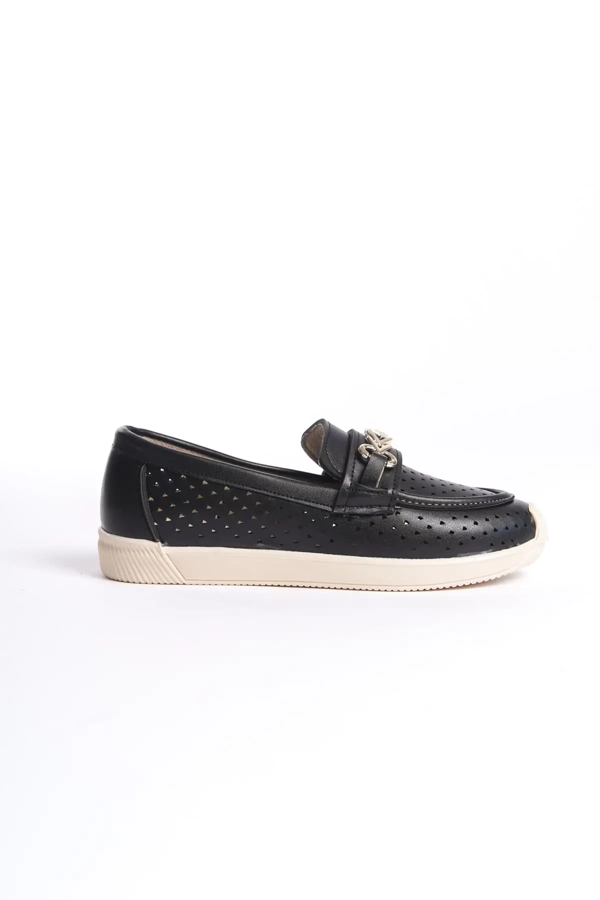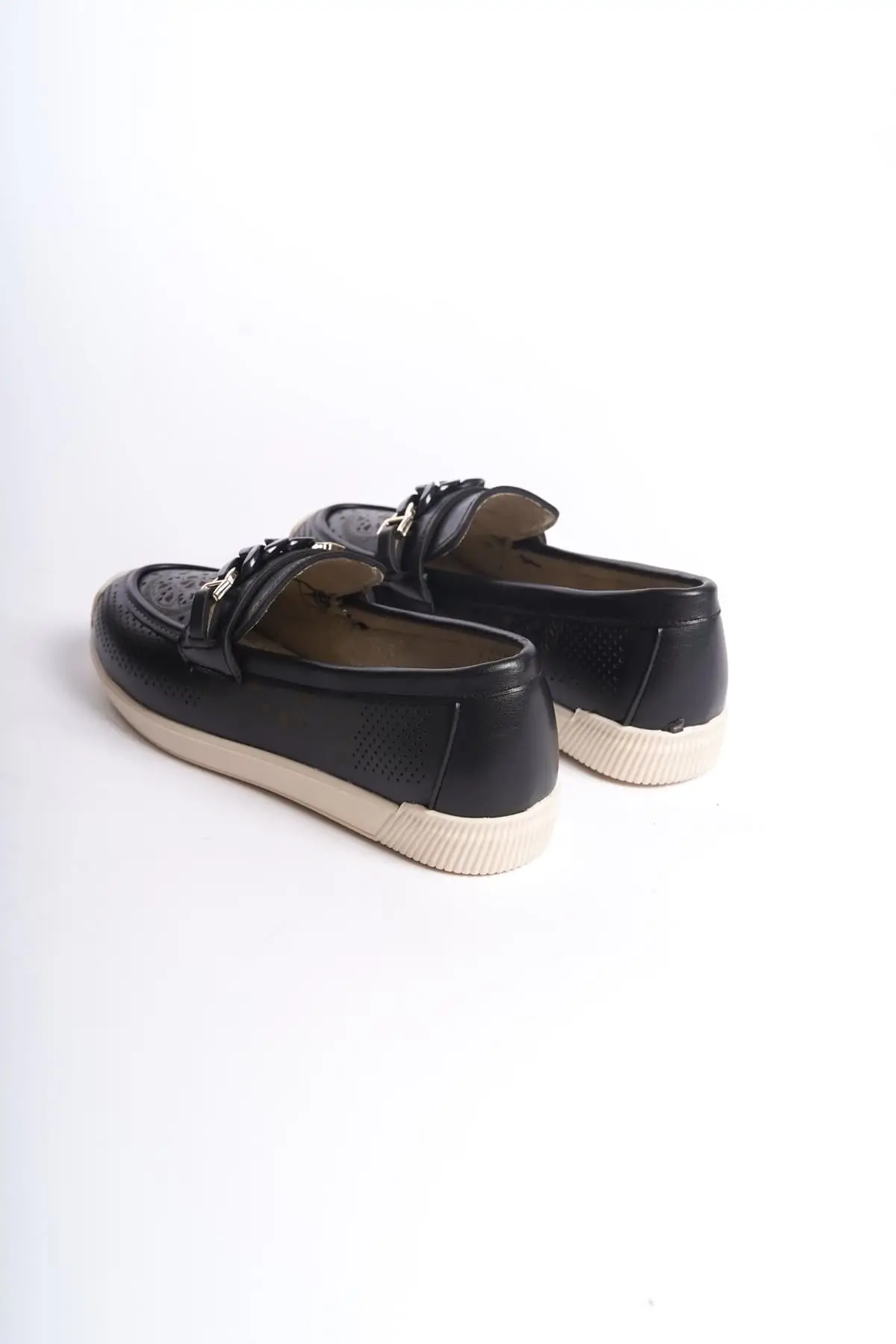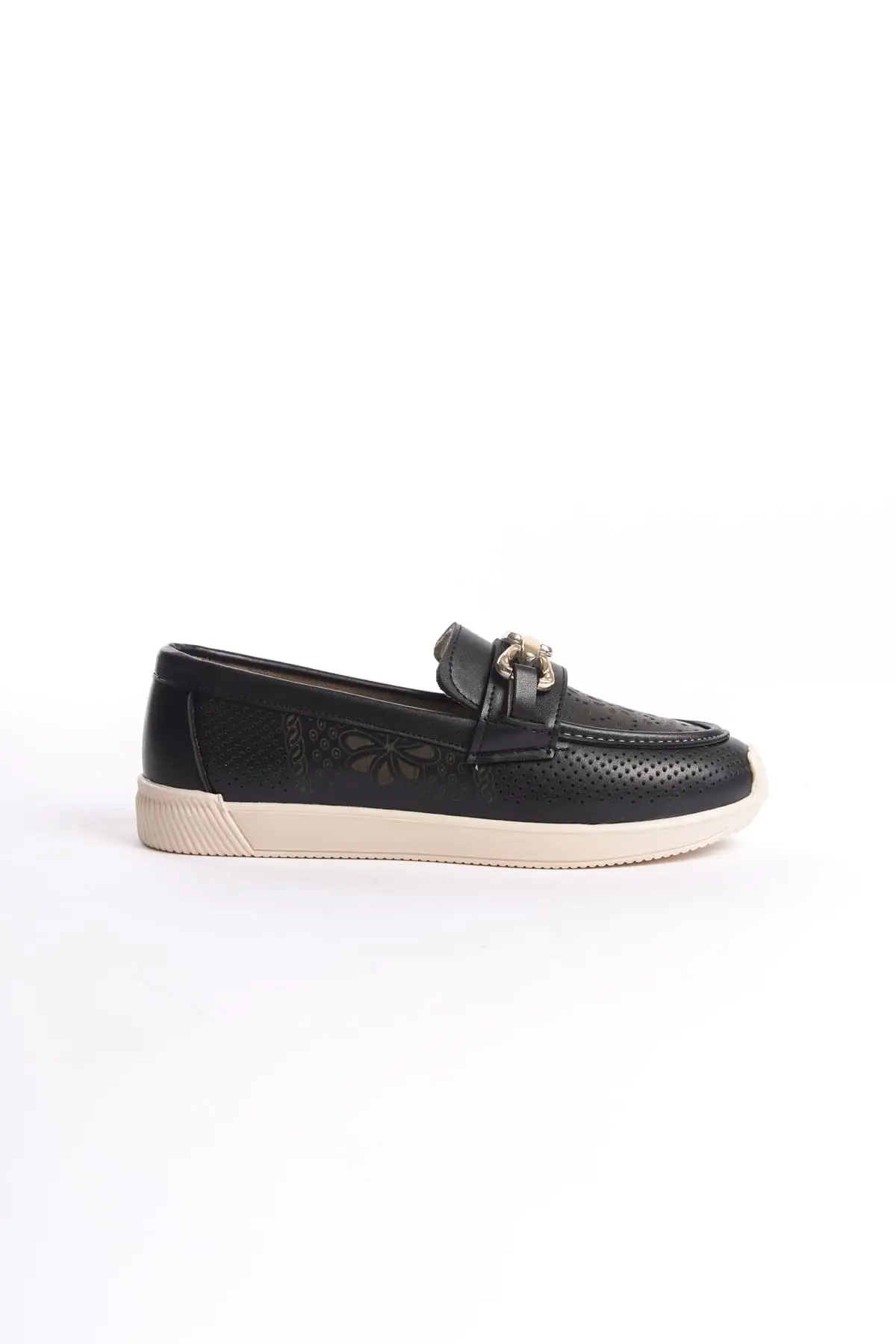 Layla Bağcıksız Ortopedik Rahat Taban Kalp Desenli Kadın Babet Ayakkabı Kt - Siyah
