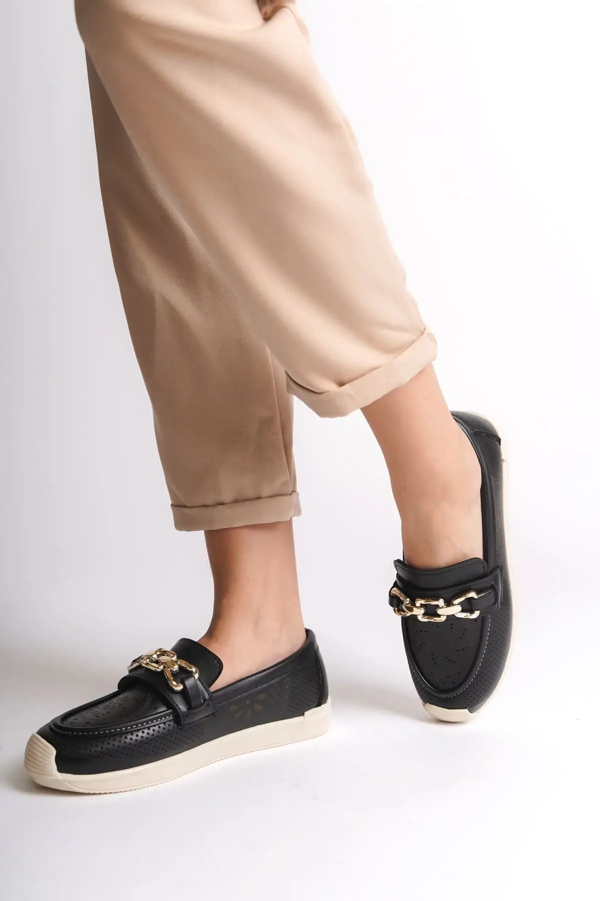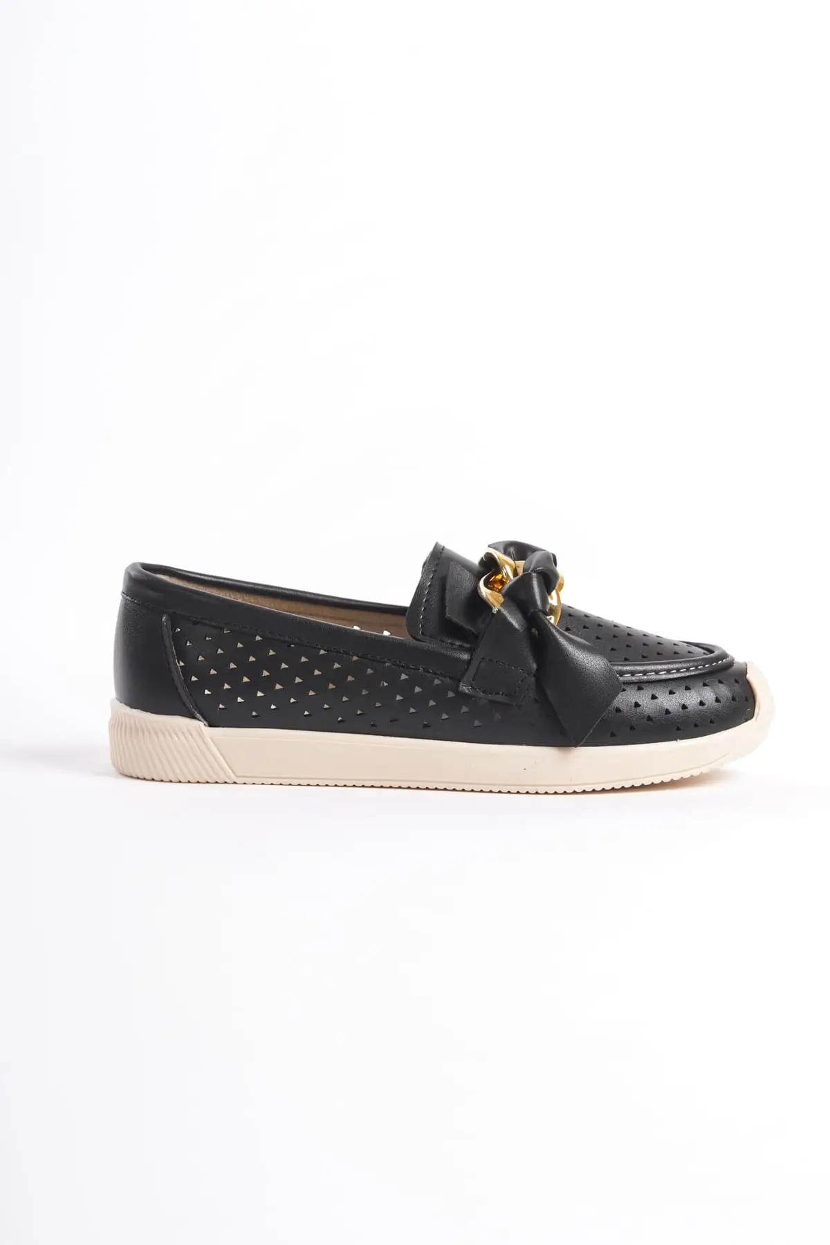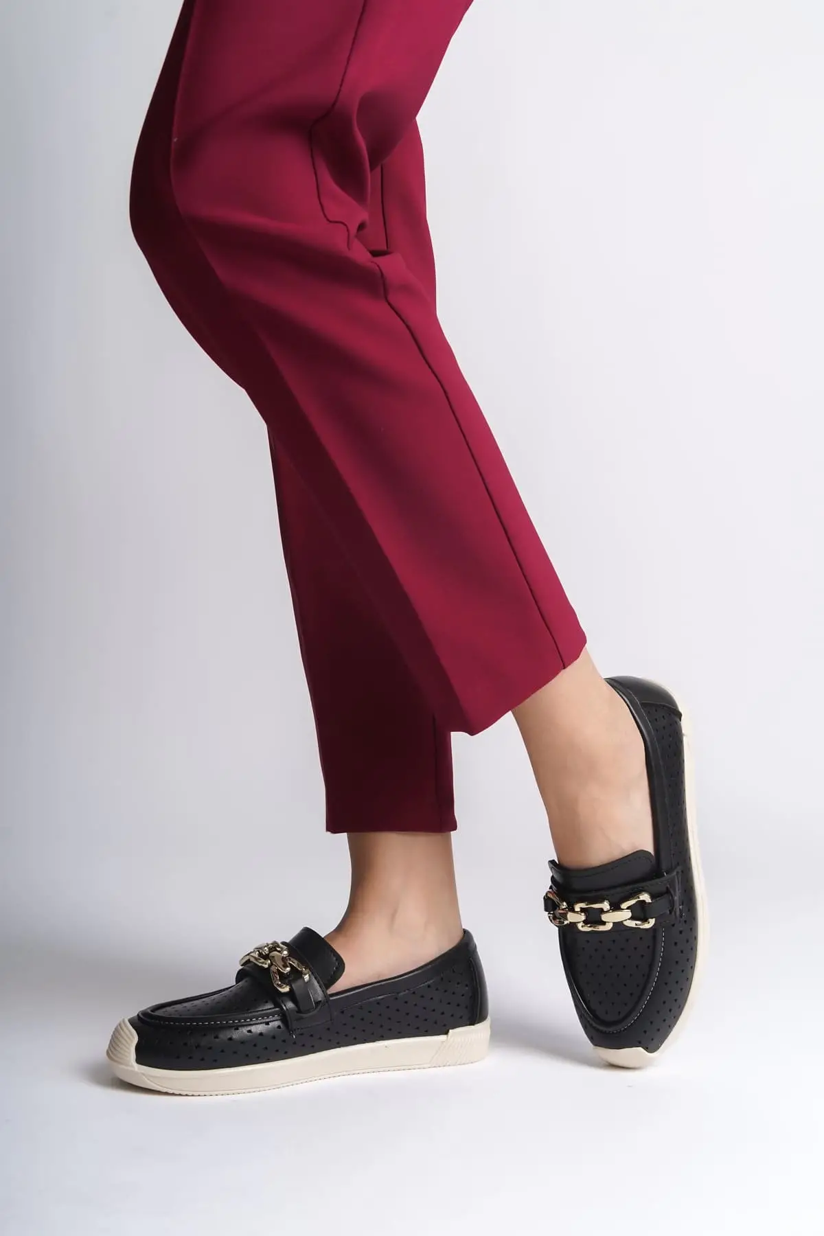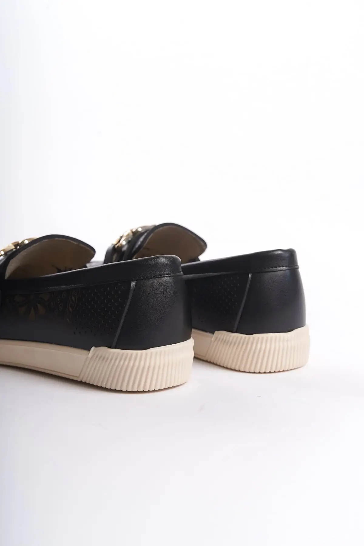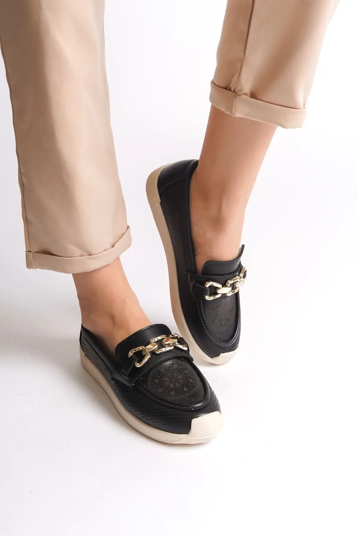 Layla Bağcıksız Ortopedik Rahat Taban Kalp Desenli Kadın Babet Ayakkabı Kt - Siyah