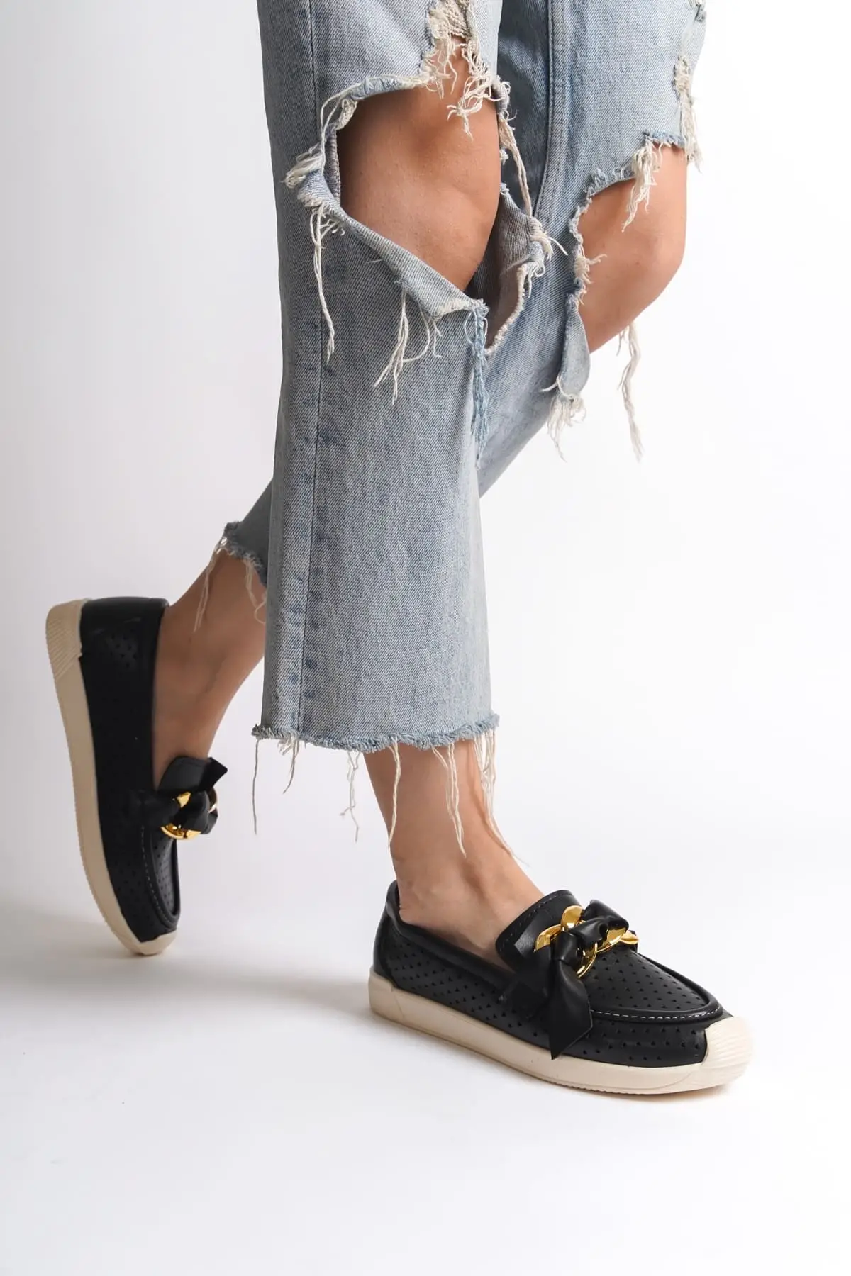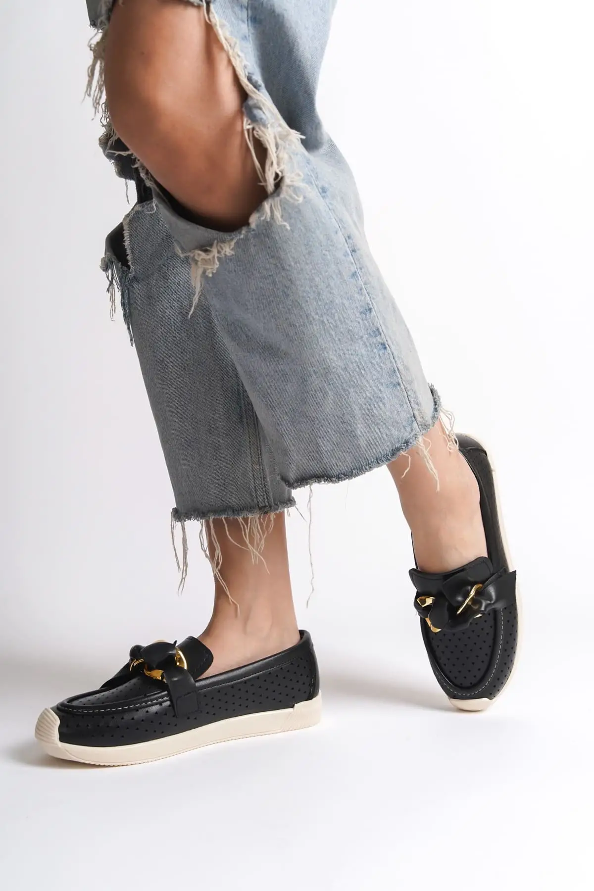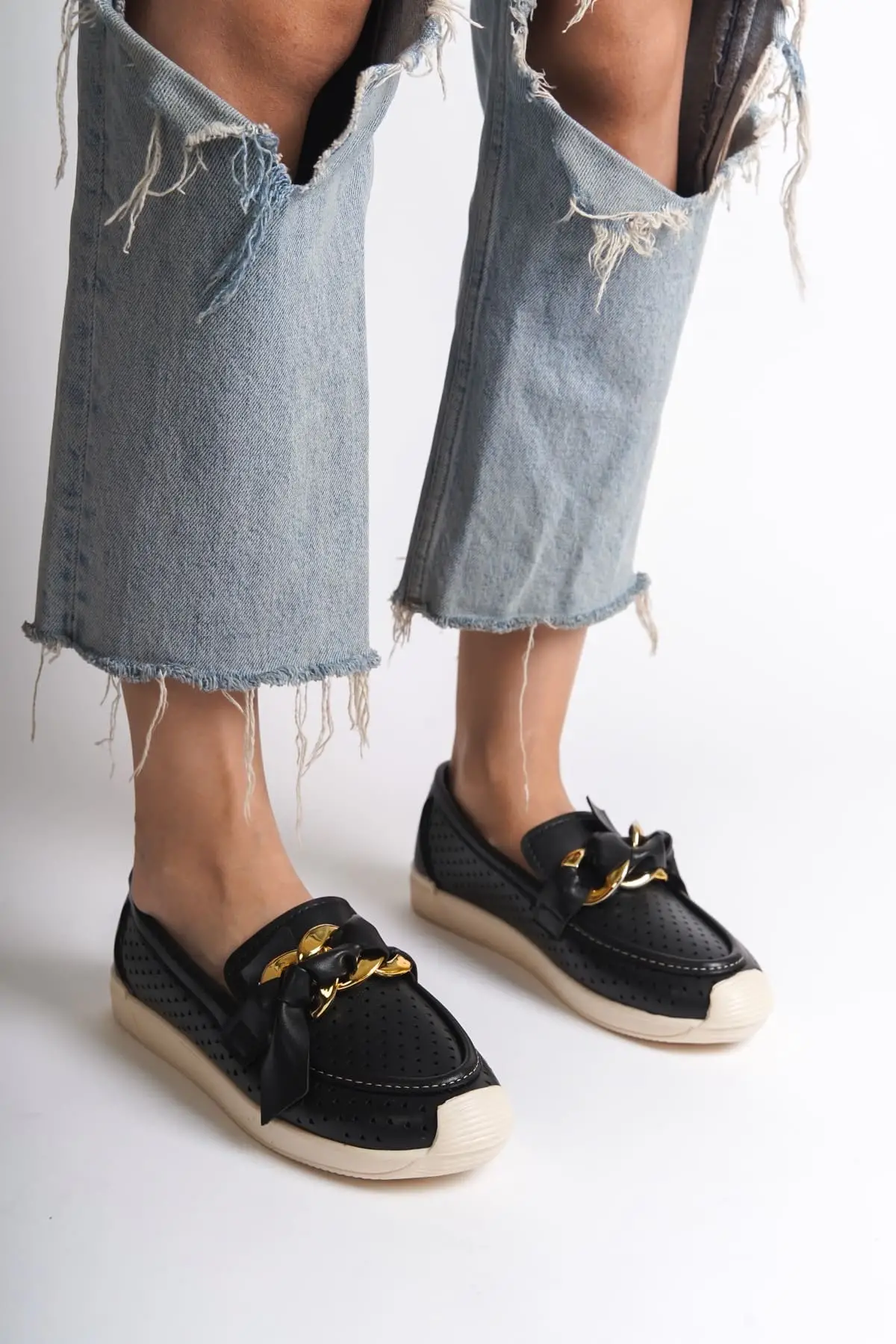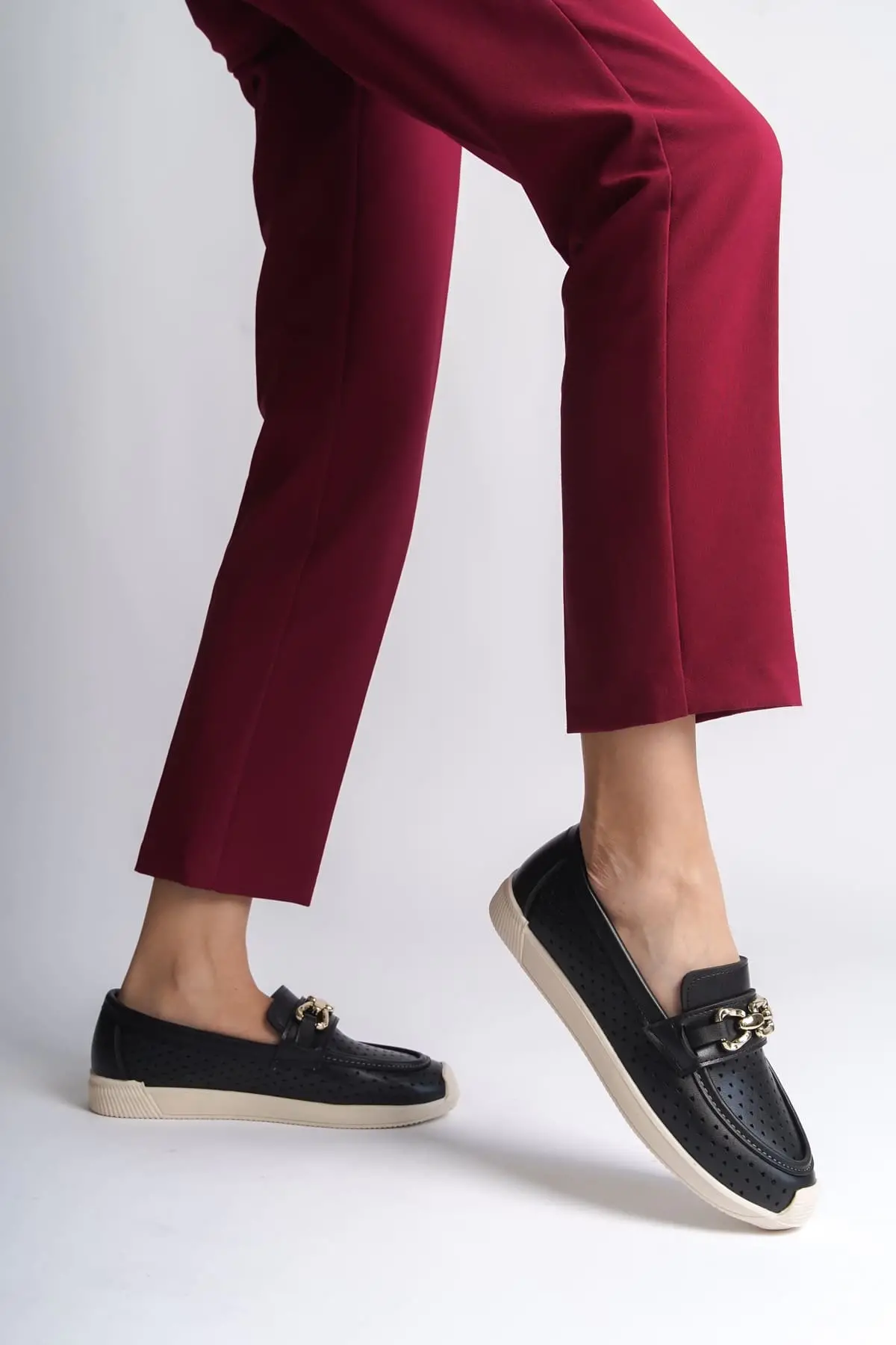 Layla Bağcıksız Ortopedik Rahat Taban Kalp Desenli Kadın Babet Ayakkabı Kt - Siyah