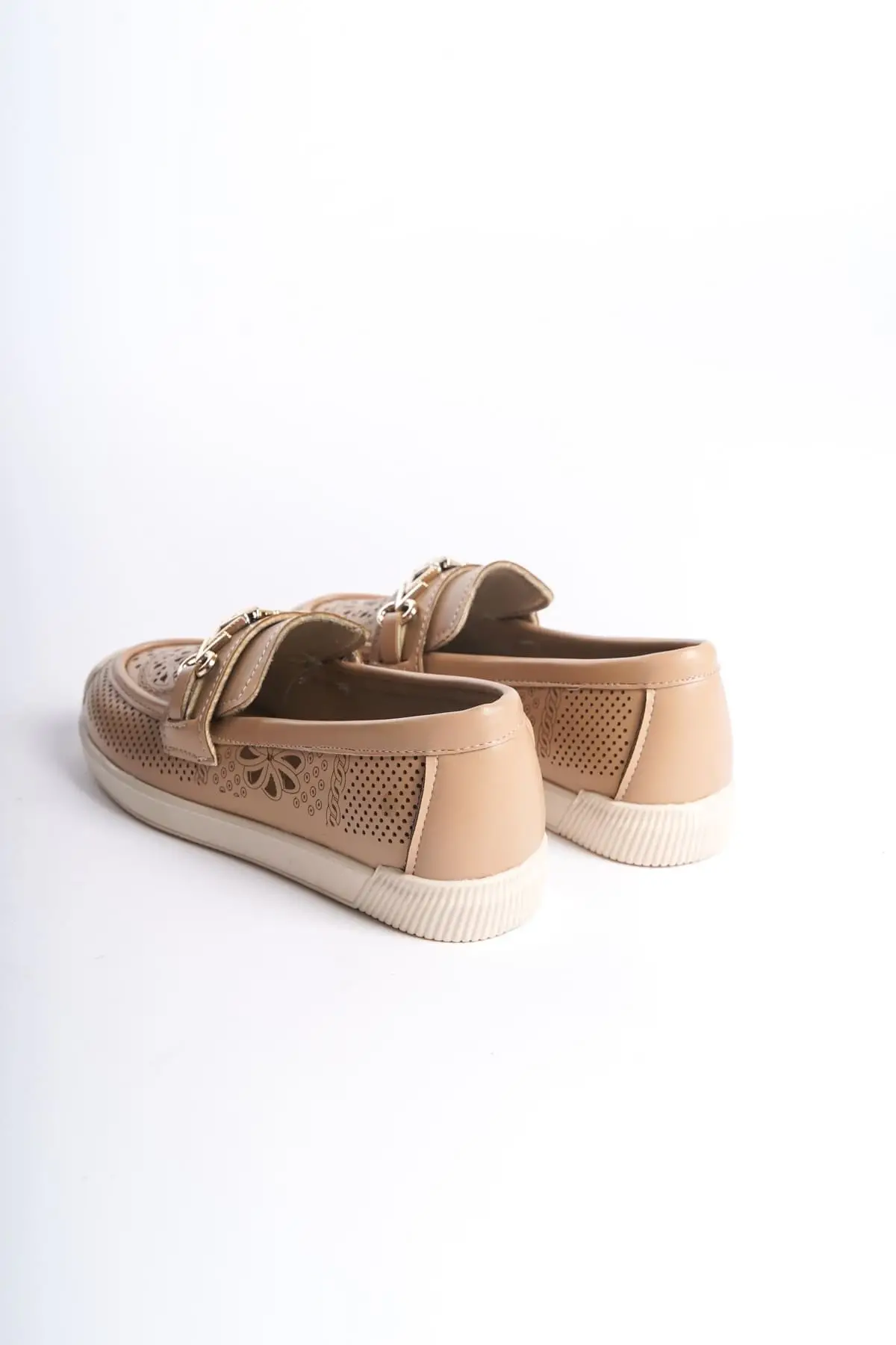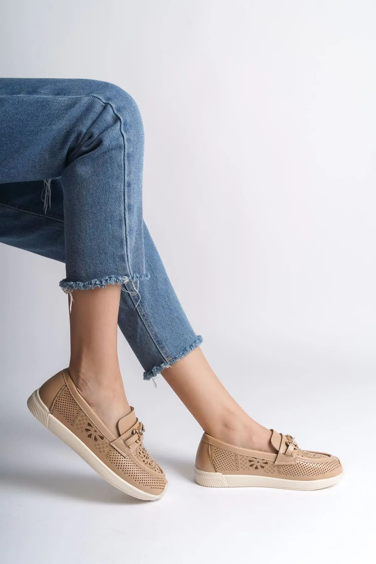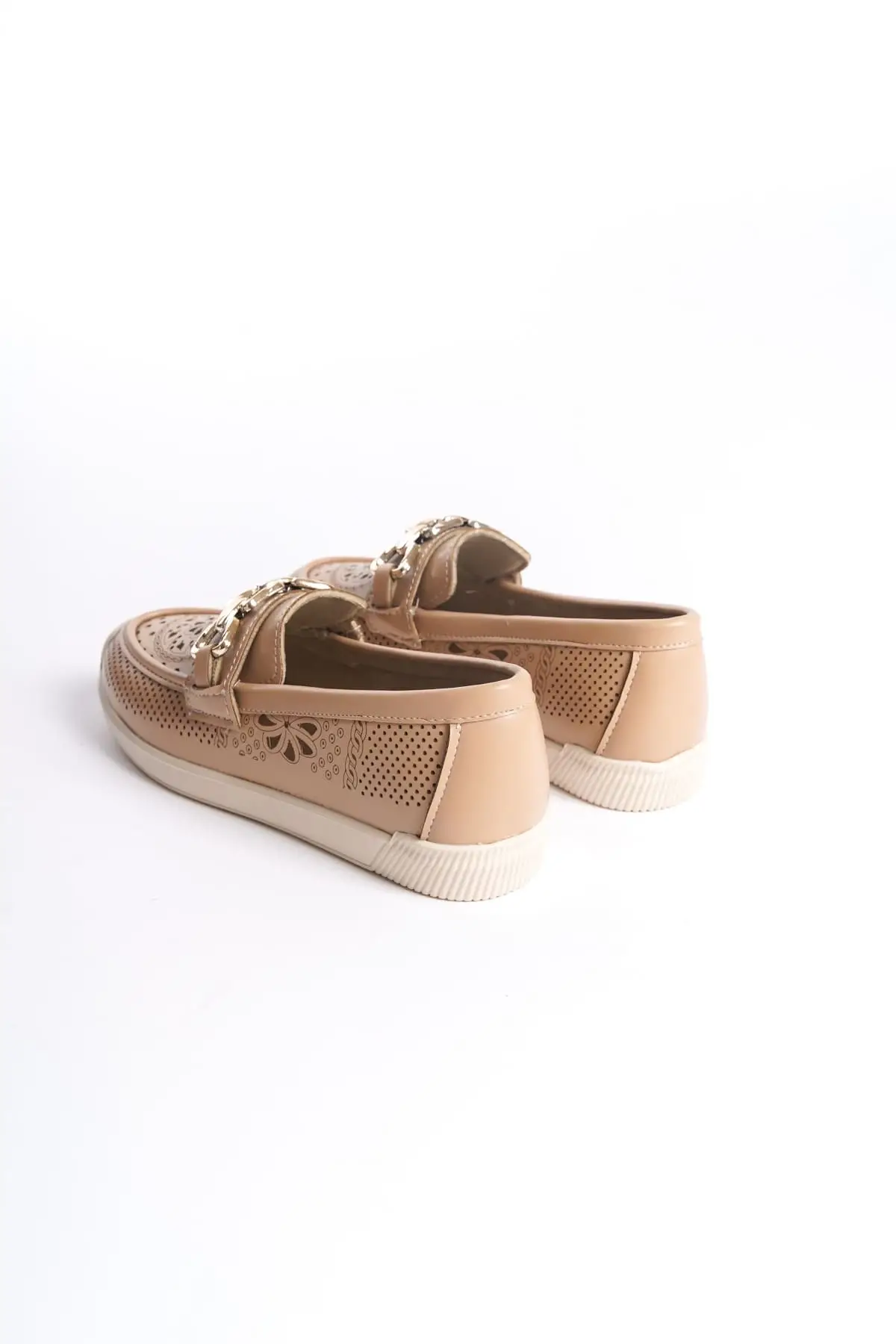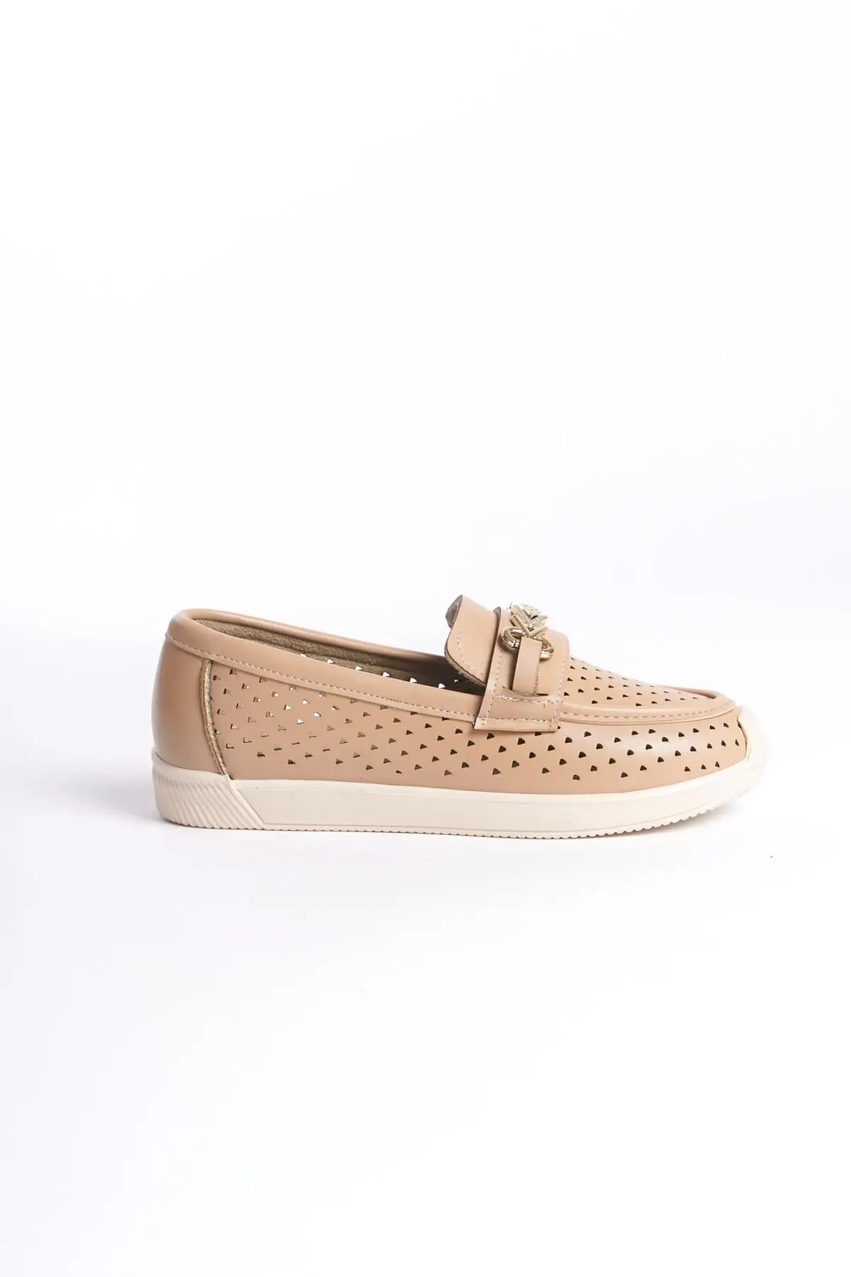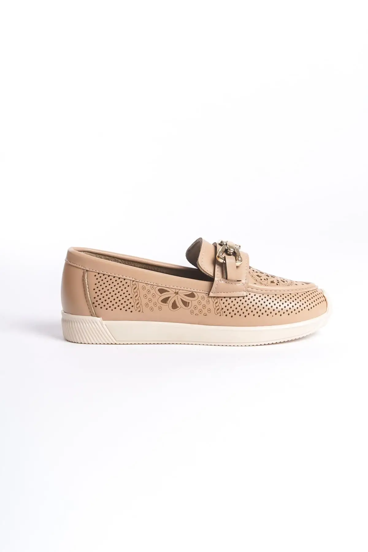 Lydıa Bağcıksız Ortopedik Rahat Taban Kalp Desenli Kadın Babet Ayakkabı Kt - Ten