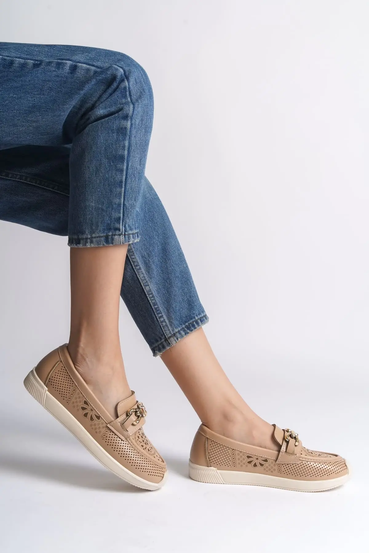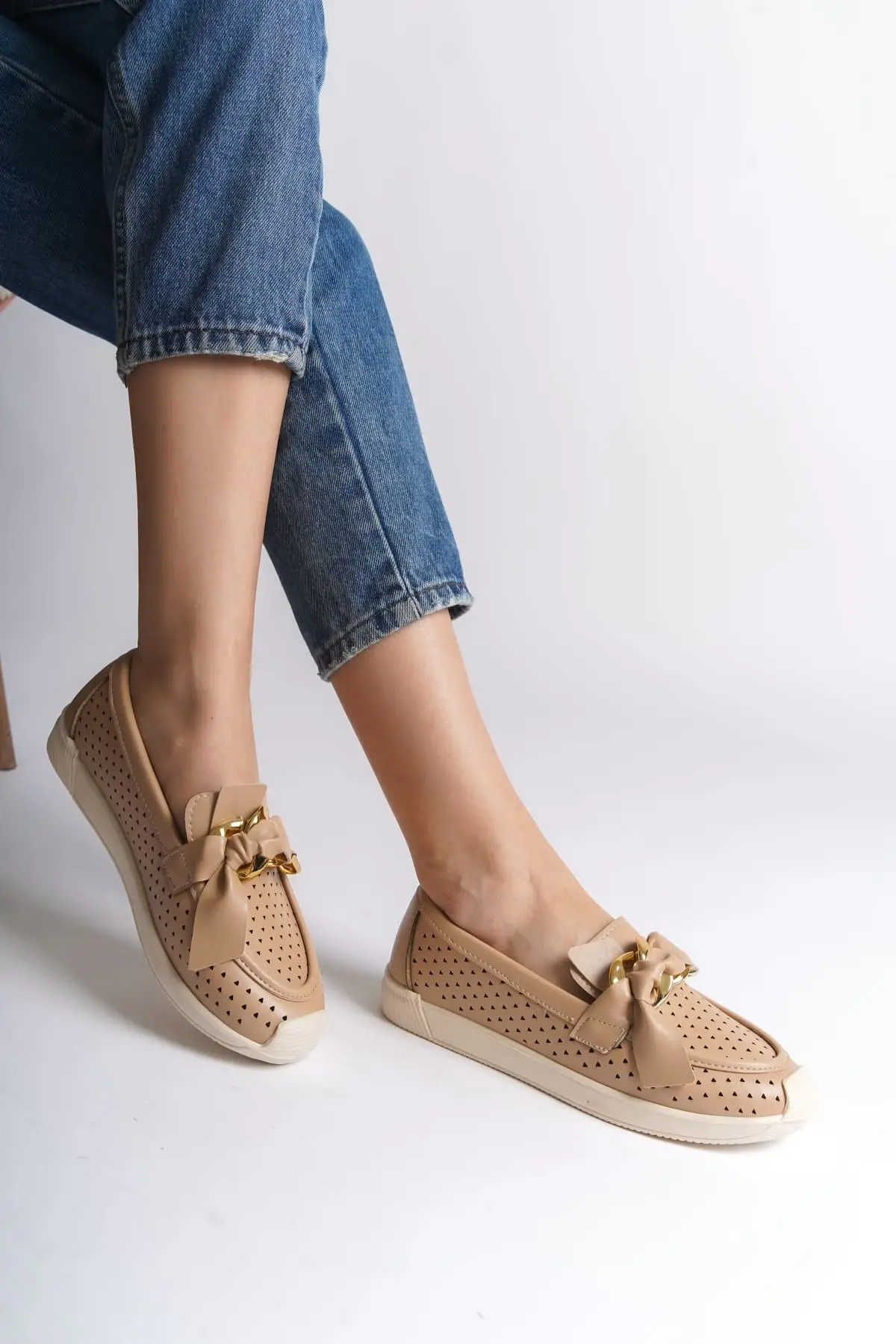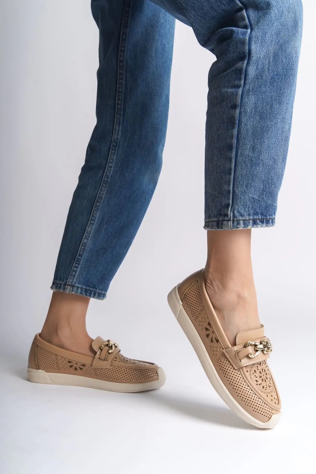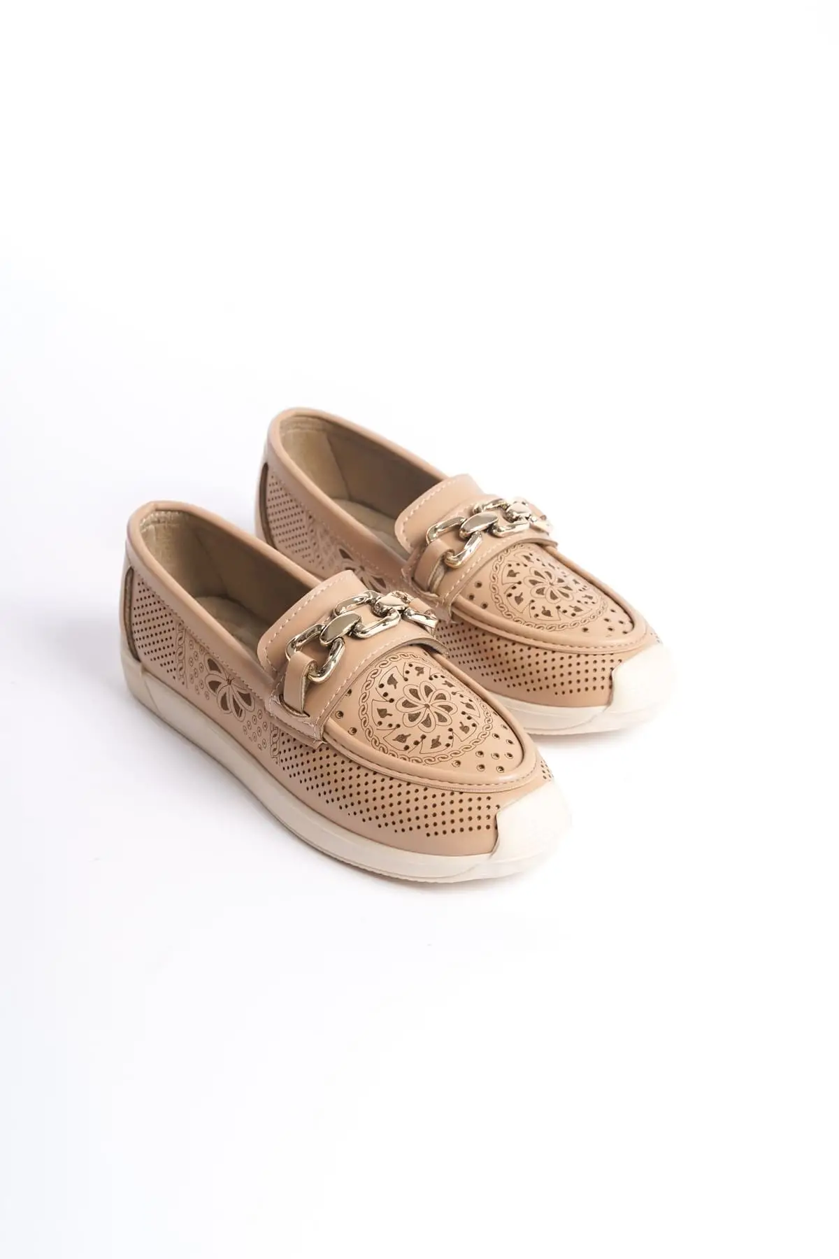 Lydıa Bağcıksız Ortopedik Rahat Taban Kalp Desenli Kadın Babet Ayakkabı Kt - Ten