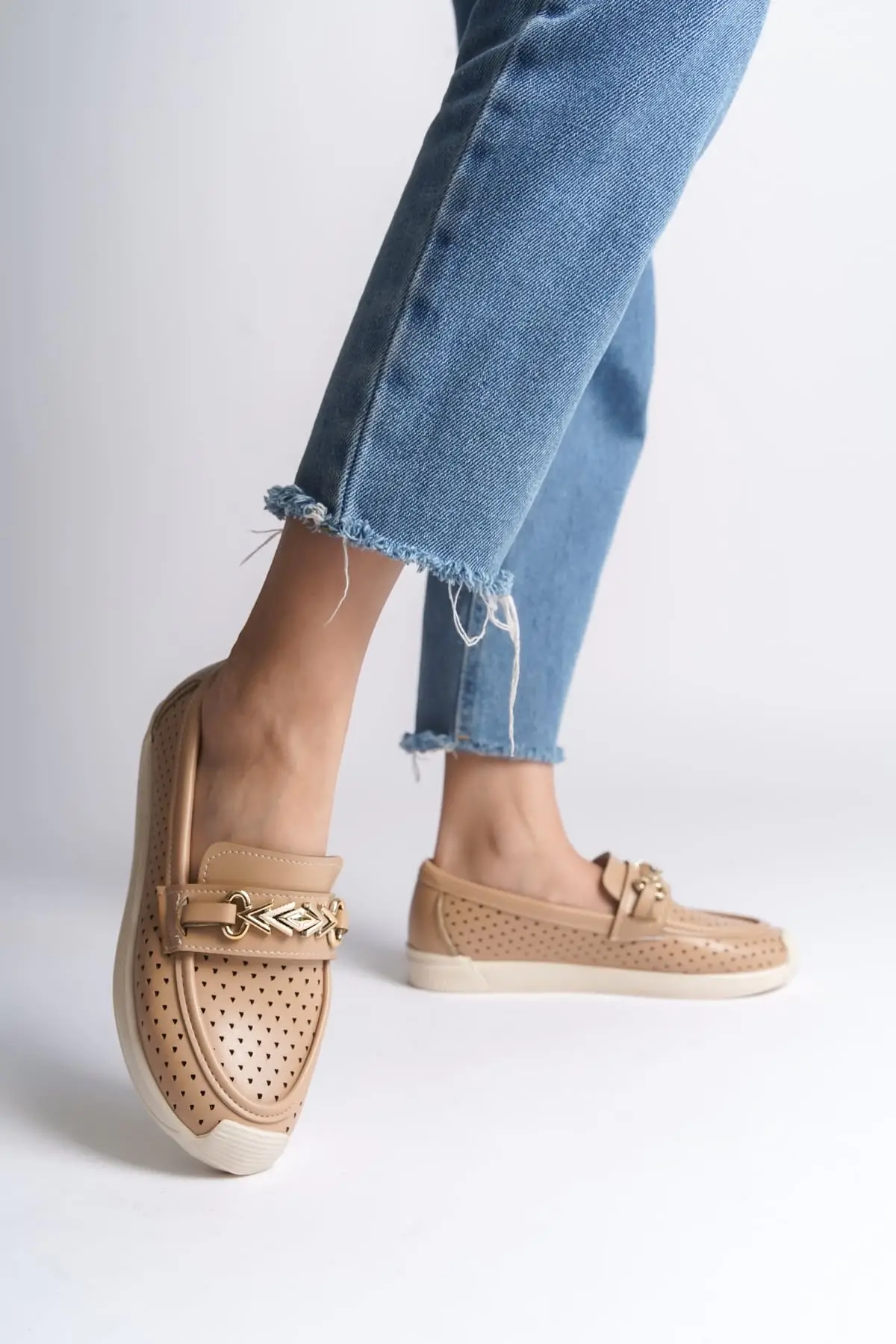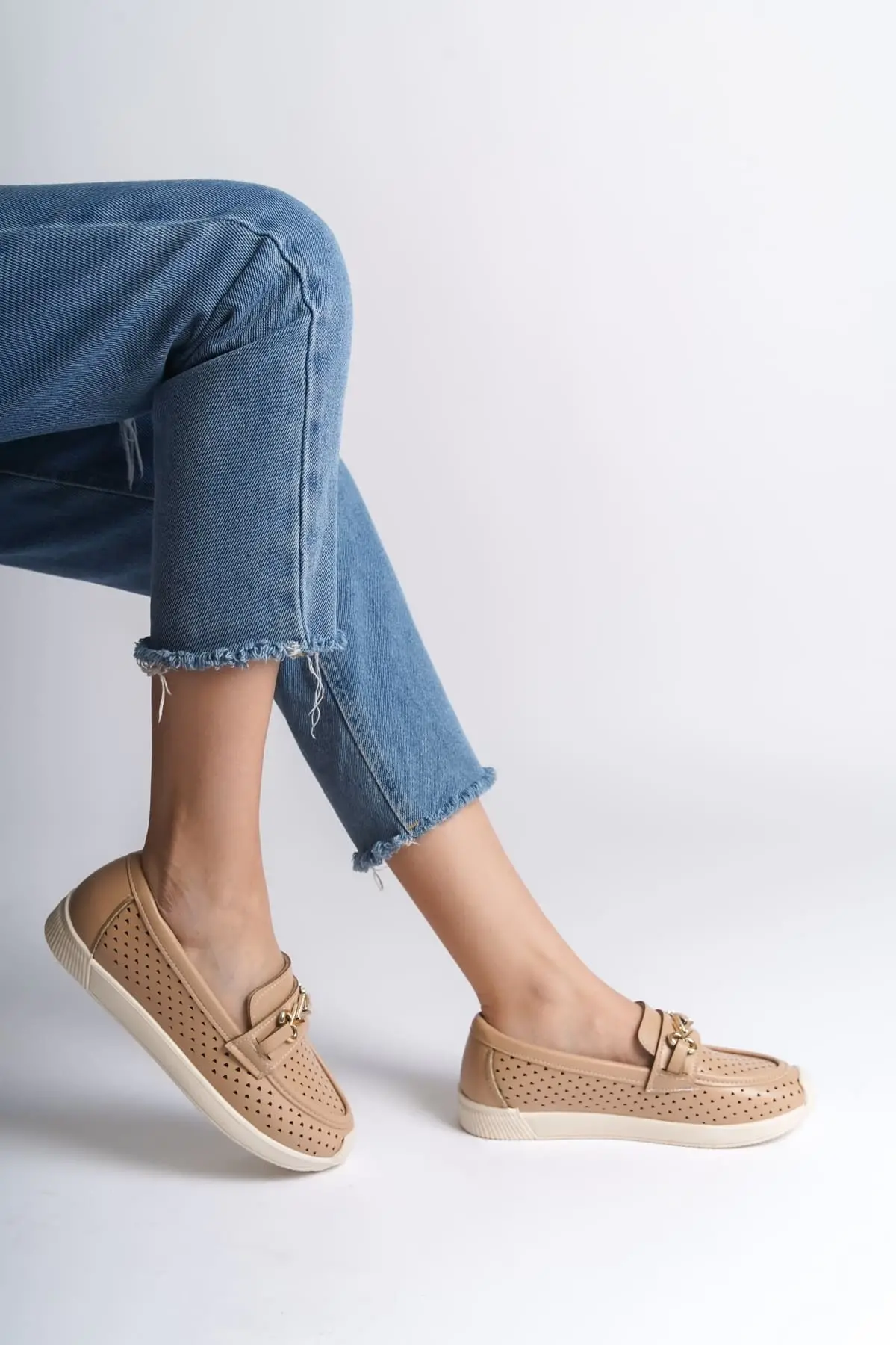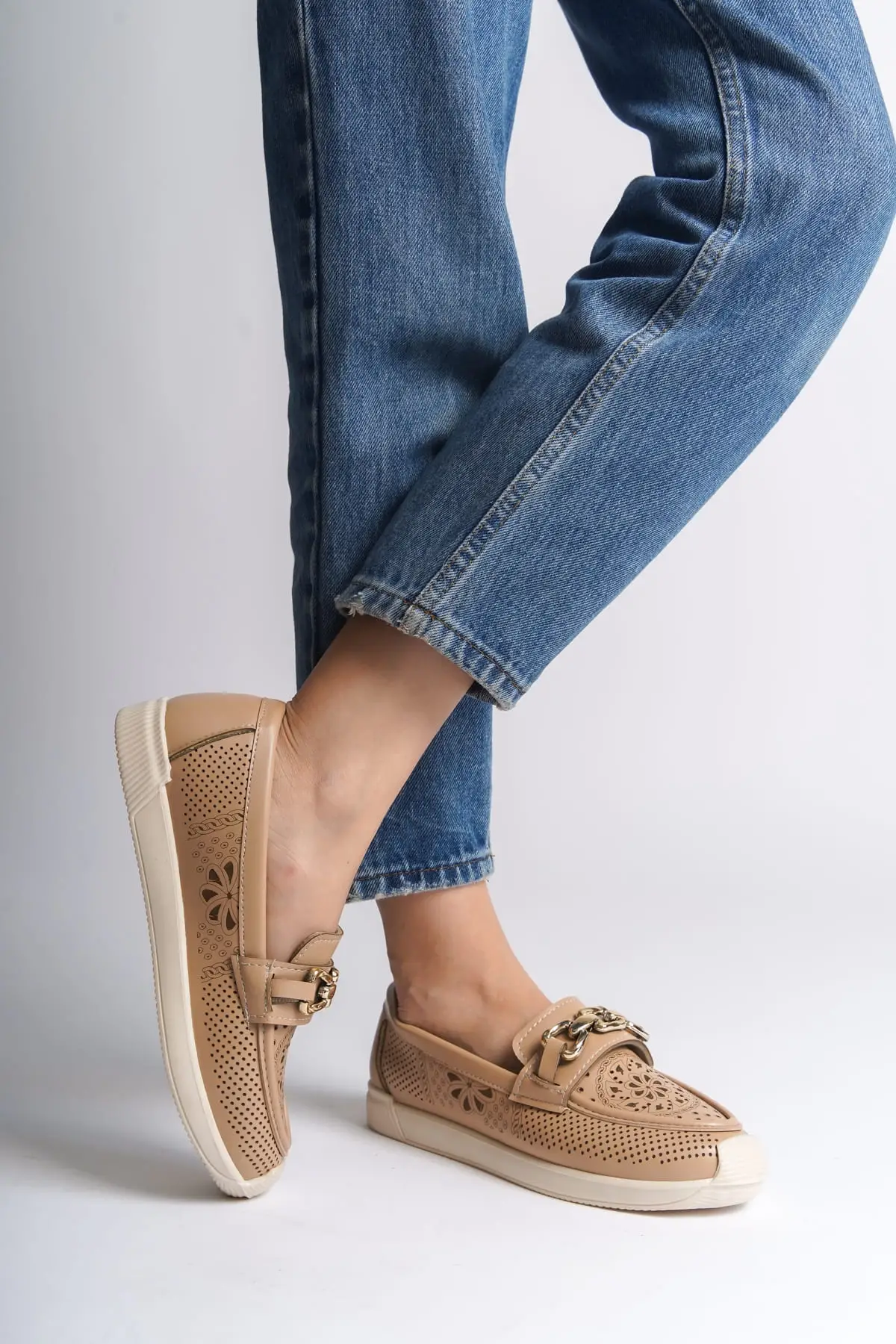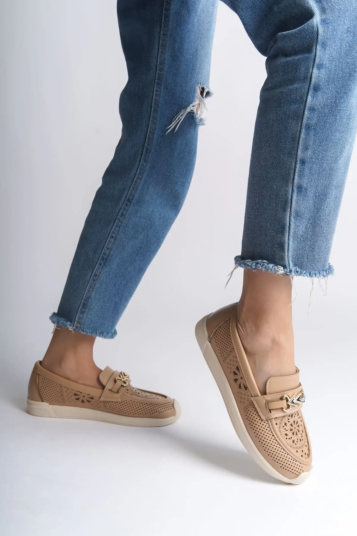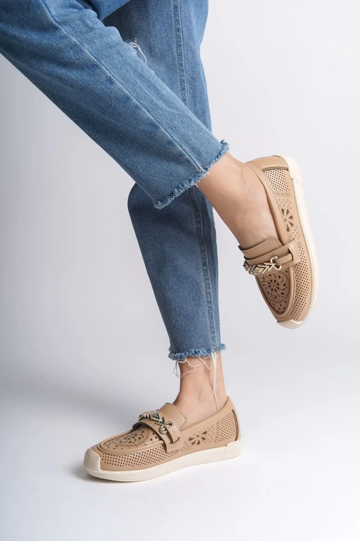 Lydıa Bağcıksız Ortopedik Rahat Taban Kalp Desenli Kadın Babet Ayakkabı Kt - Ten