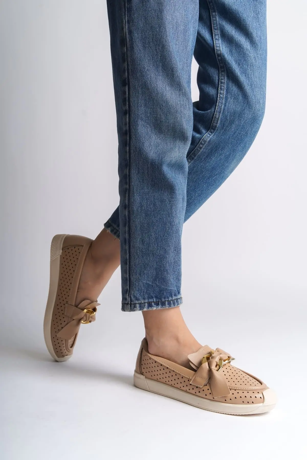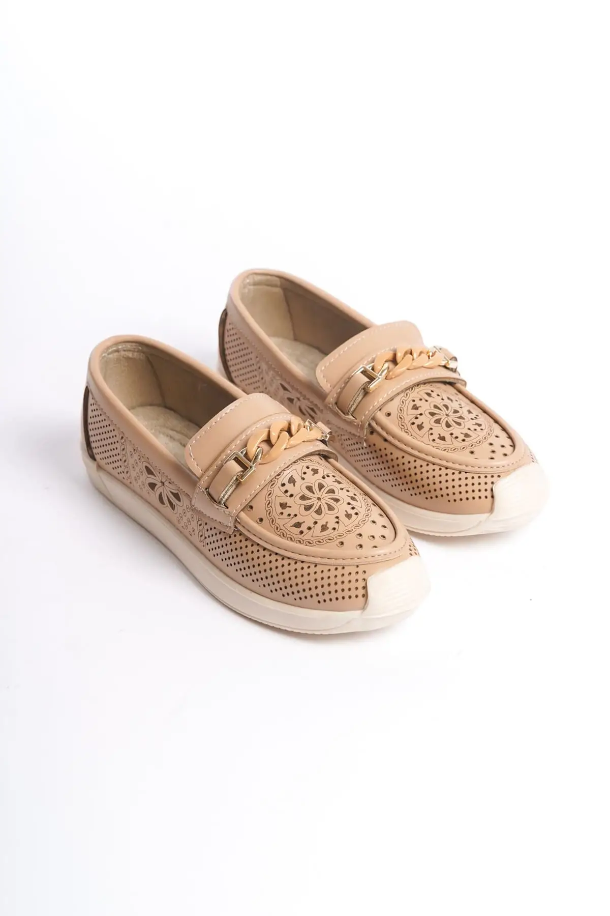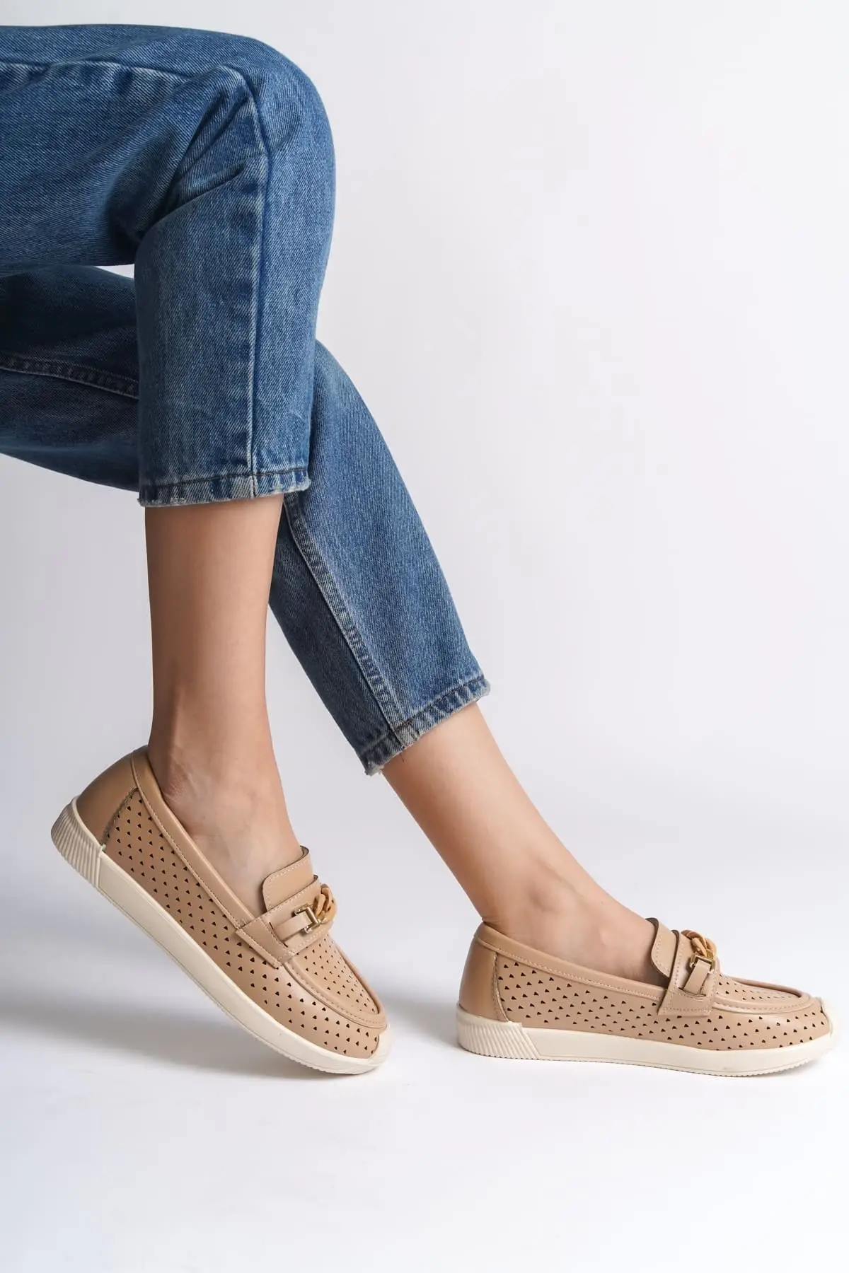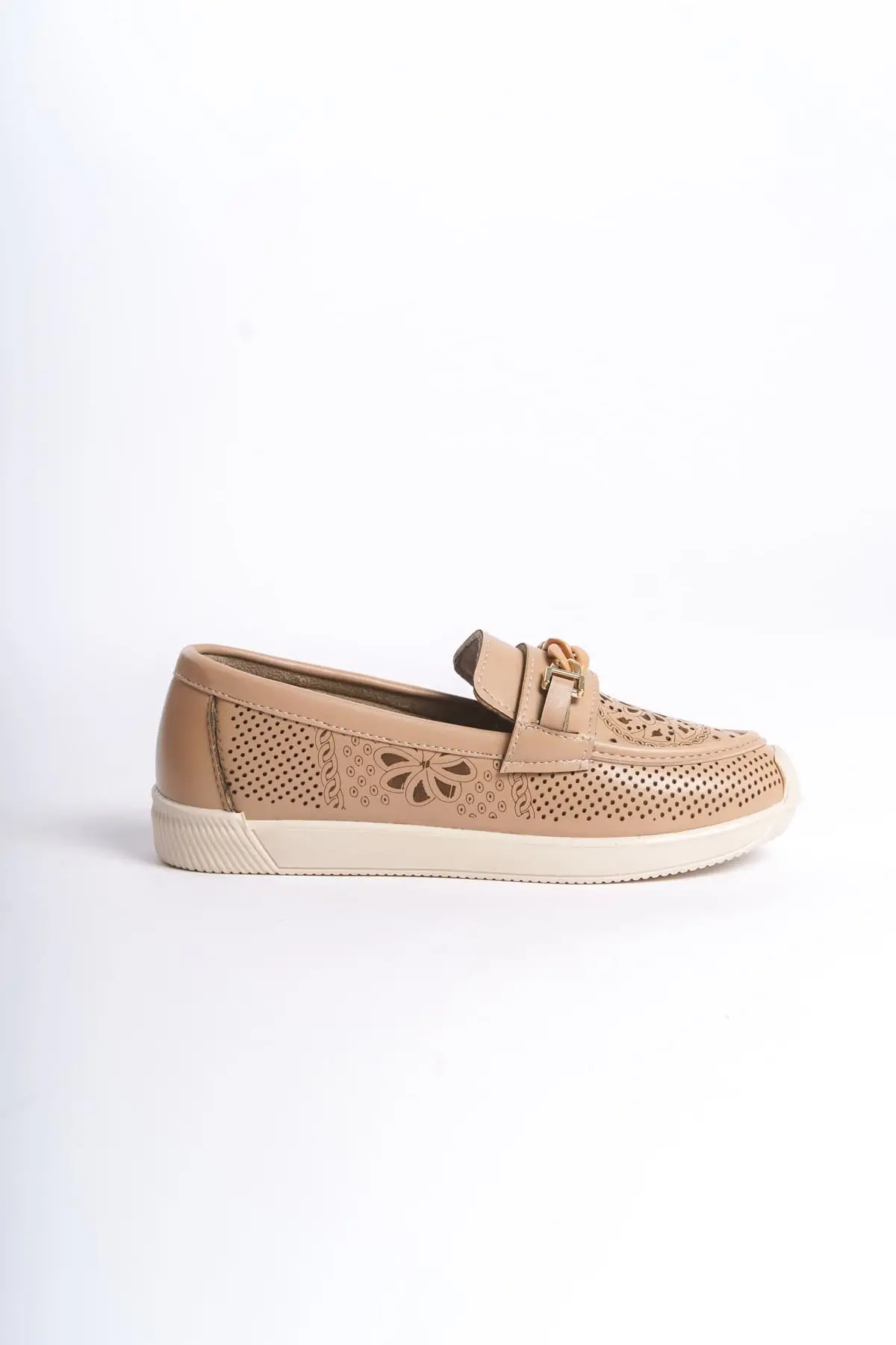 Lydıa Bağcıksız Ortopedik Rahat Taban Kalp Desenli Kadın Babet Ayakkabı Kt - Ten