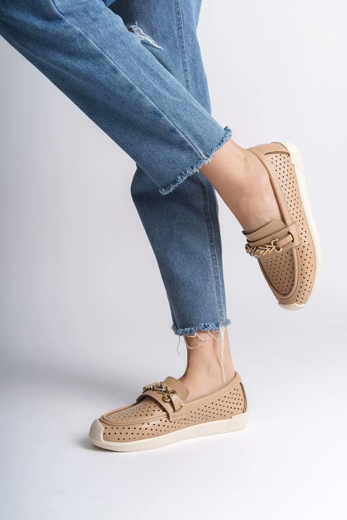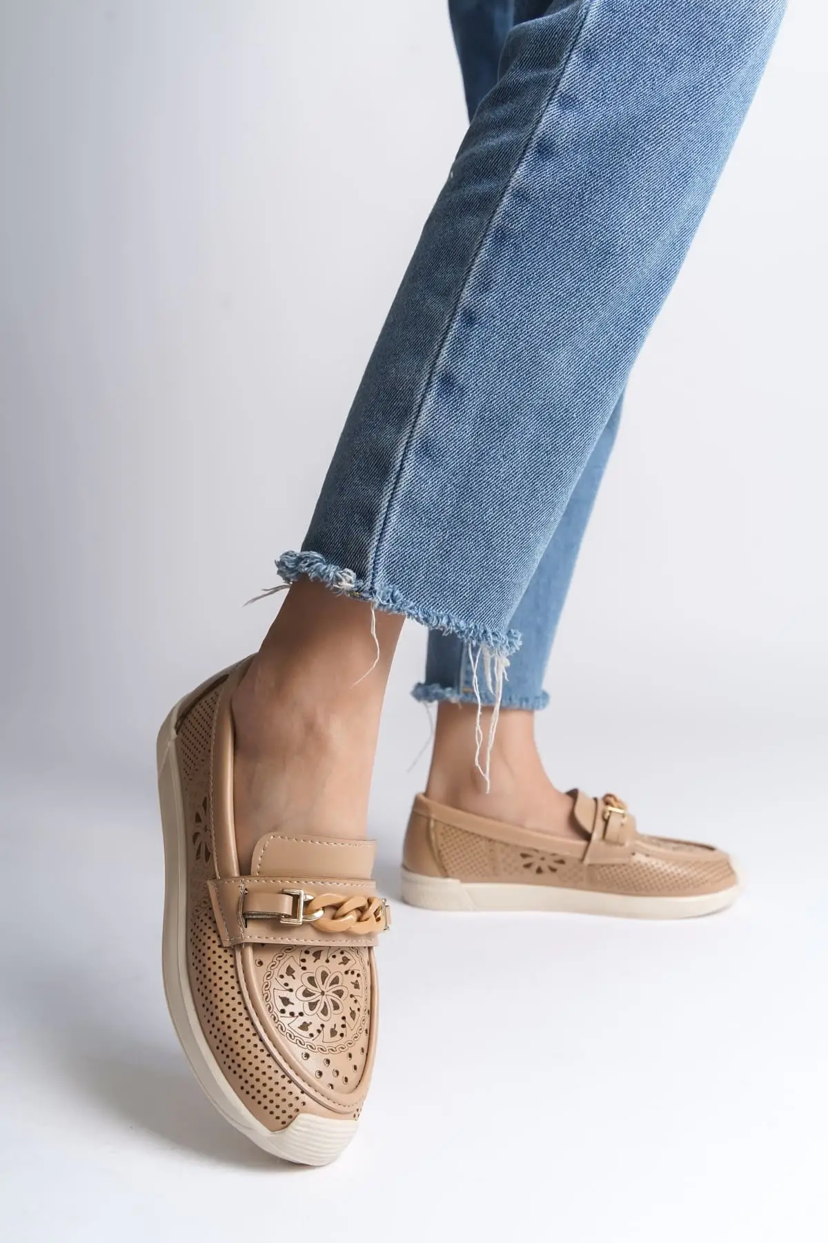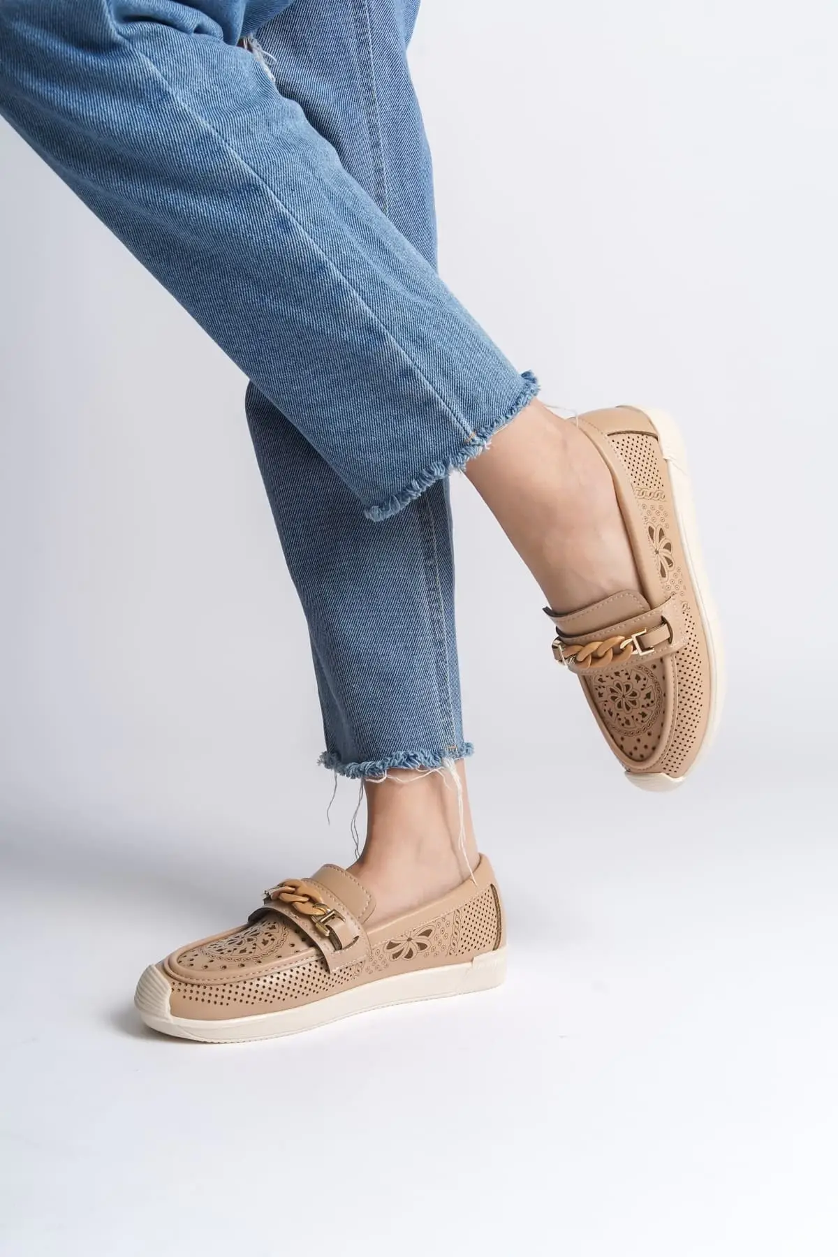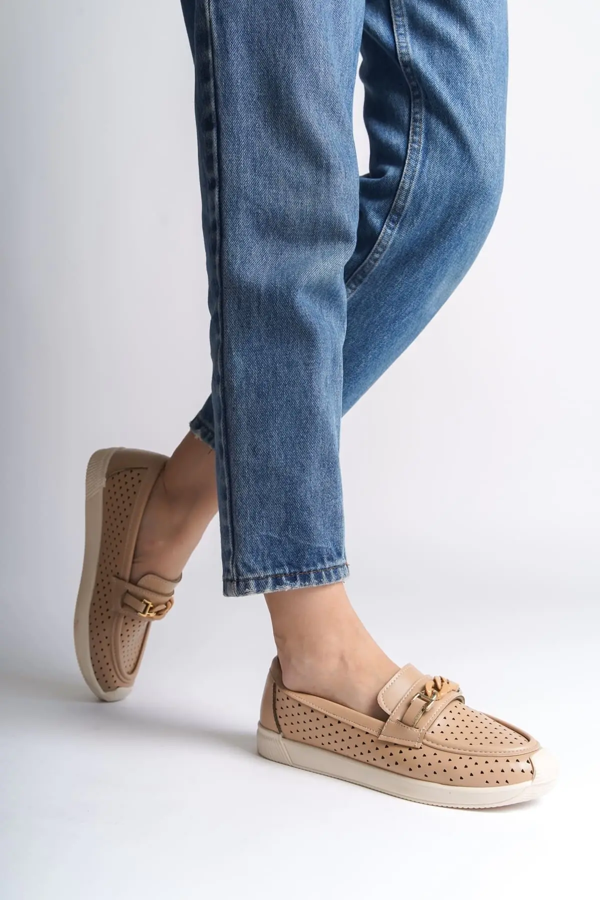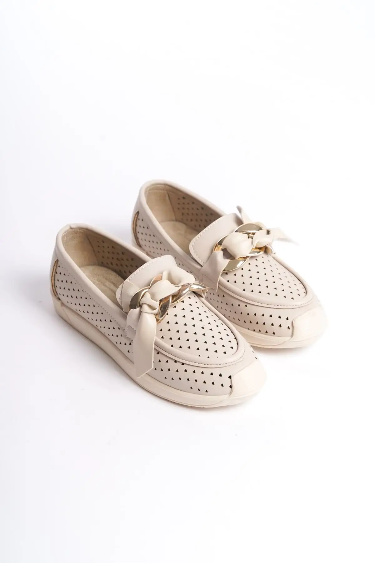 Lydıa Bağcıksız Ortopedik Rahat Taban Kalp Desenli Kadın Babet Ayakkabı Kt - Ten