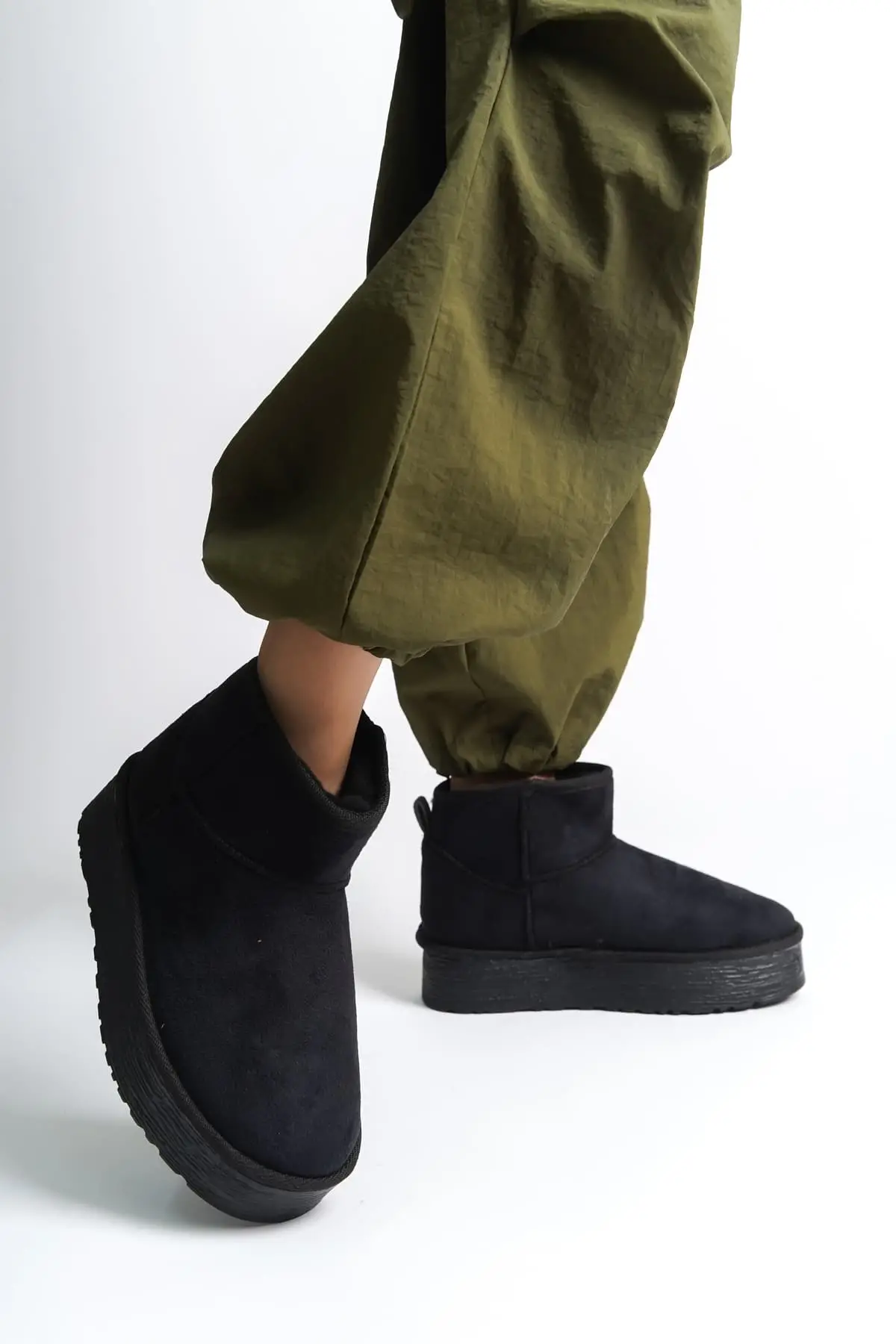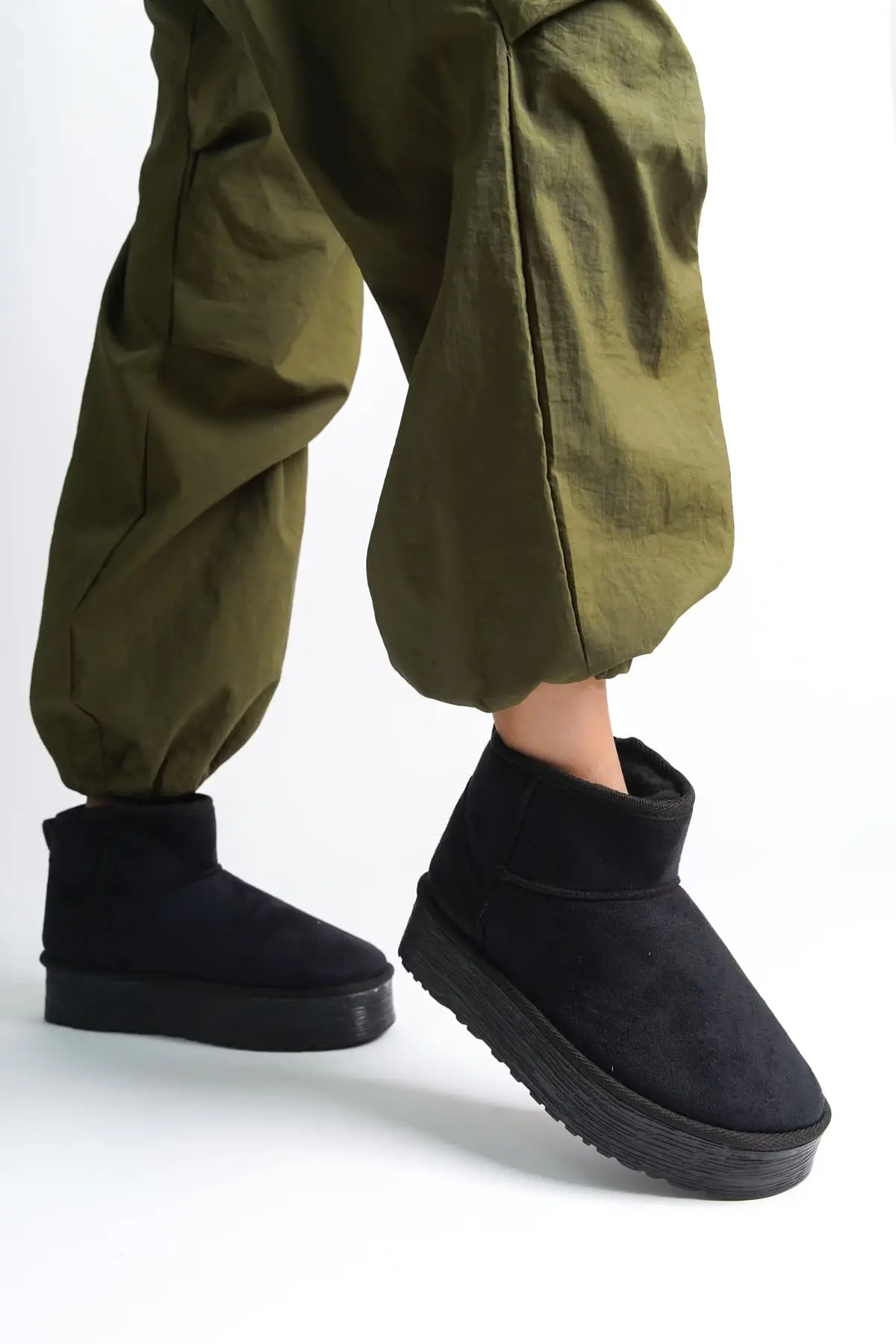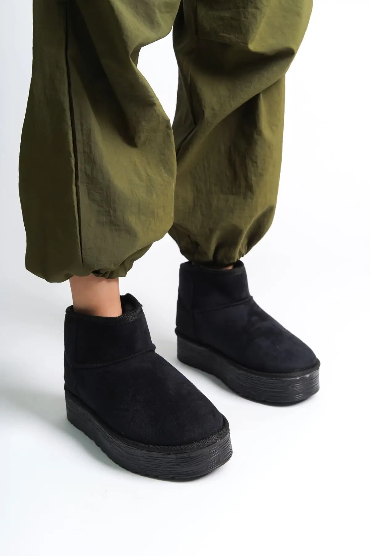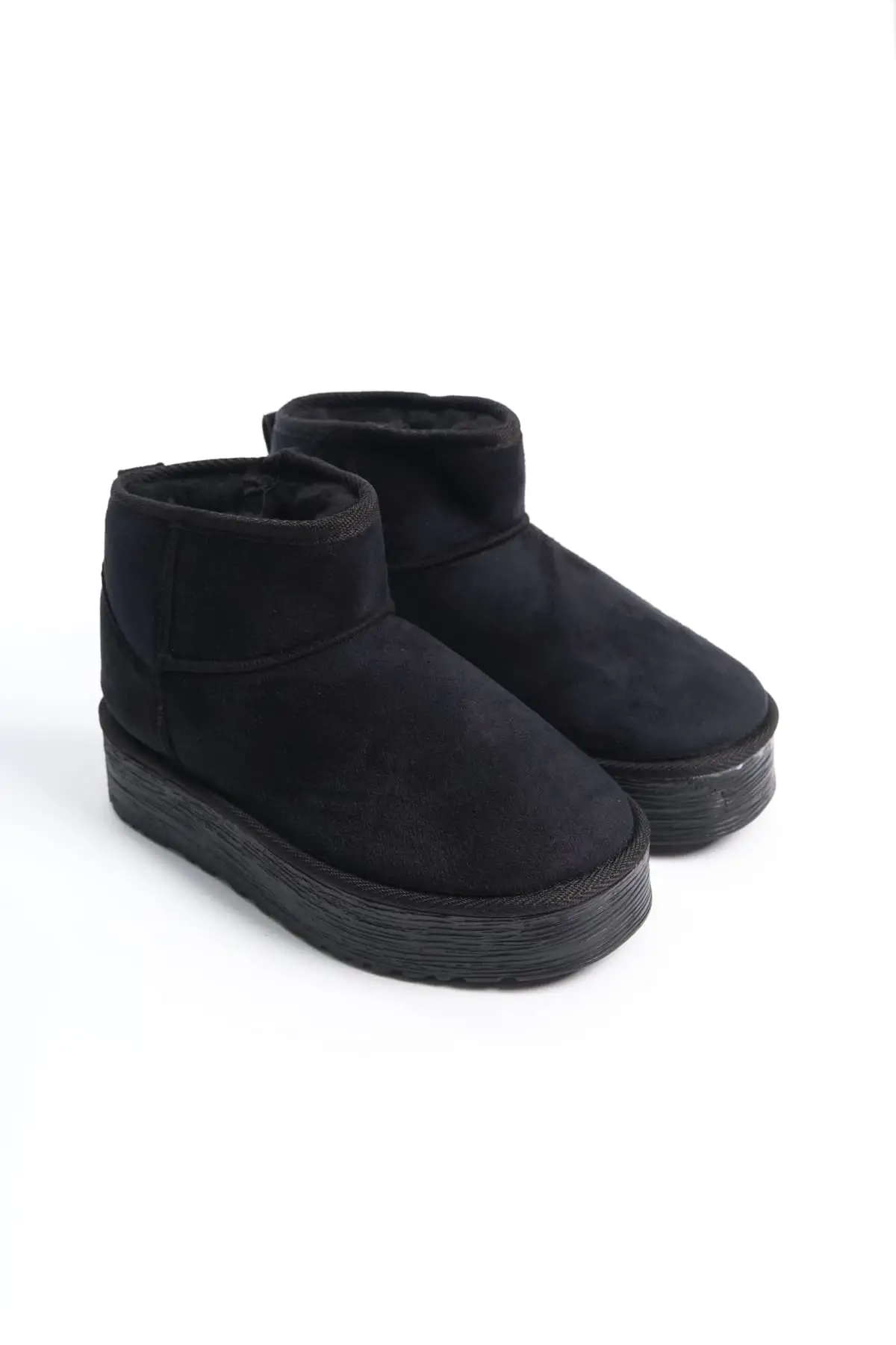 Amelıa Bağcıksız Düz Ve Kalın Taban İçi Kürklü Kısa Süet Kadın Bot St - Siyah