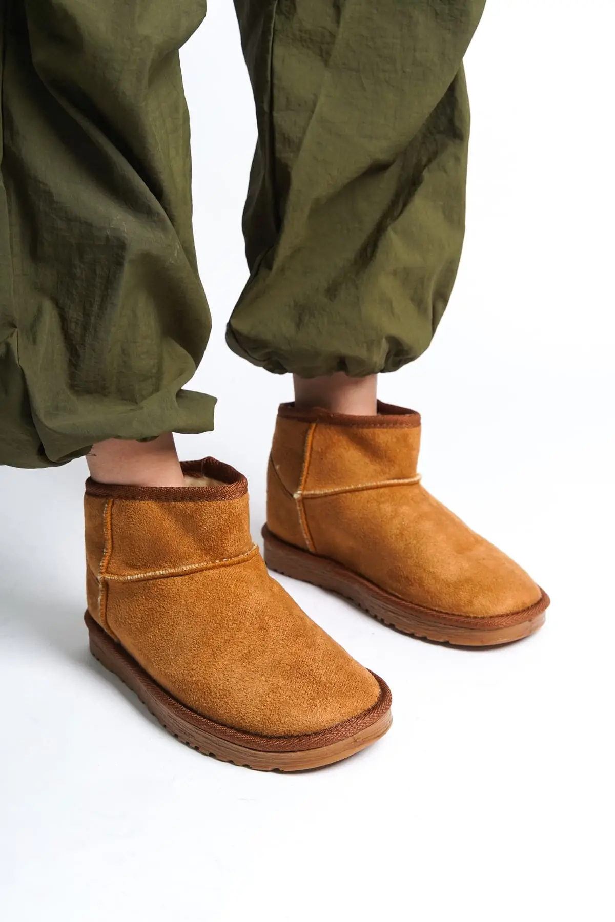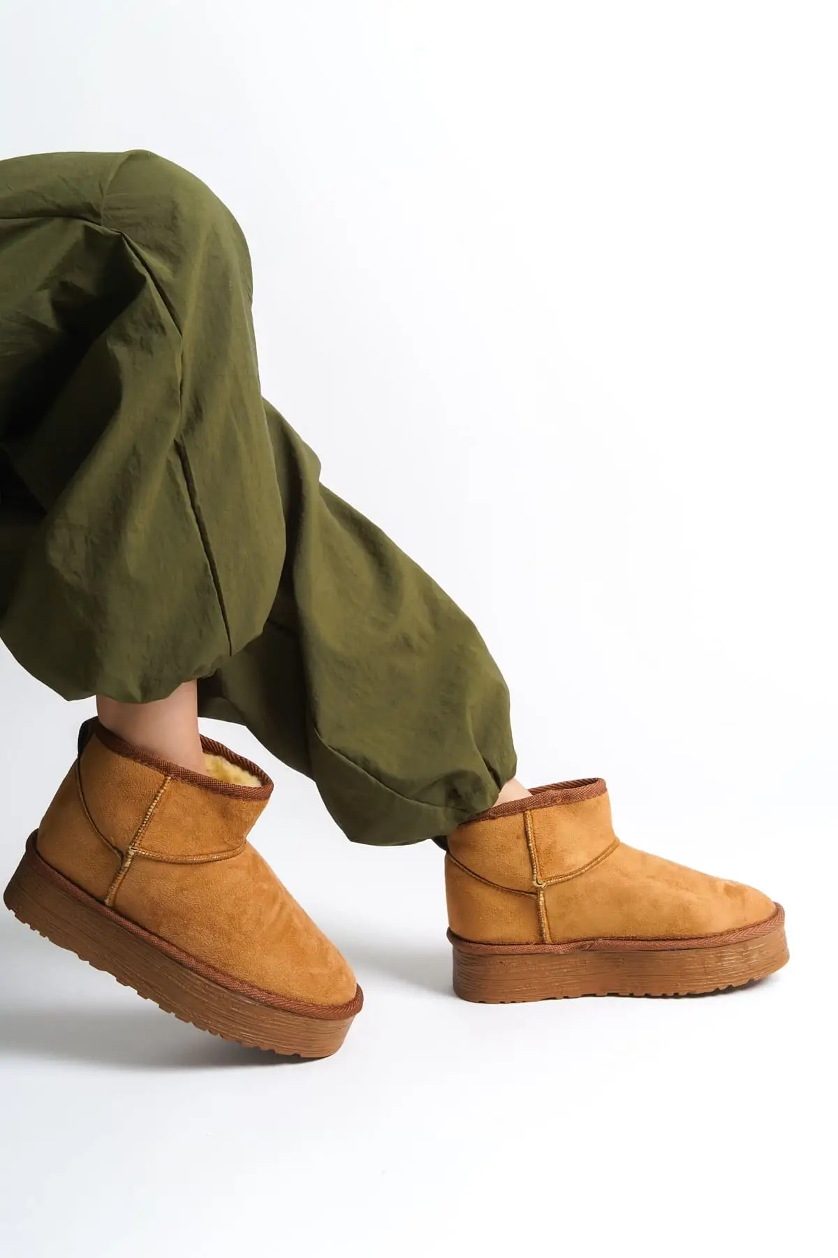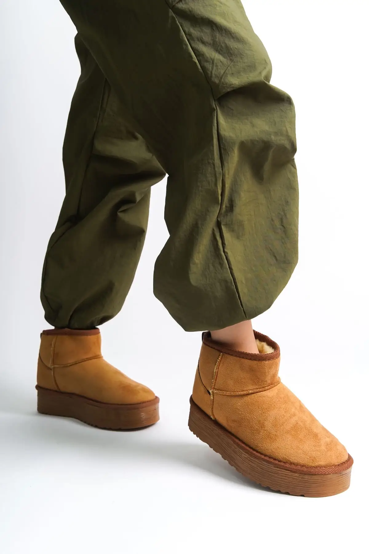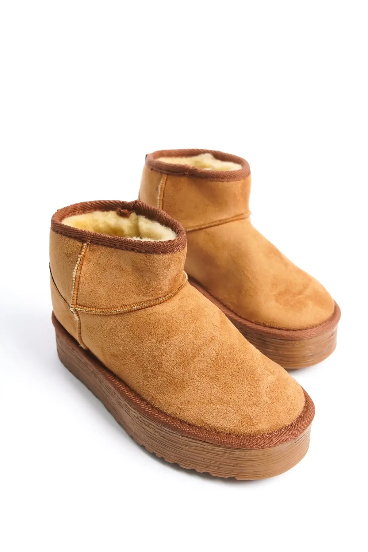 Jolıe Bağcıksız Düz Taban İçi Kürklü Kısa Süet Kadın Bot Tt - Taba
