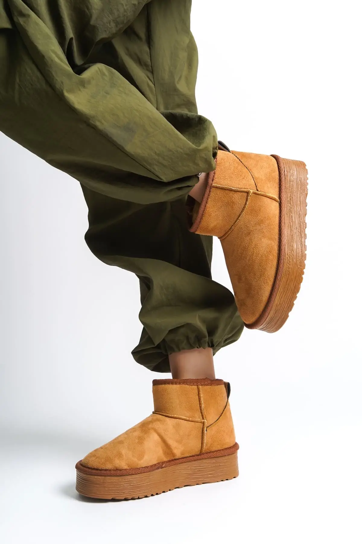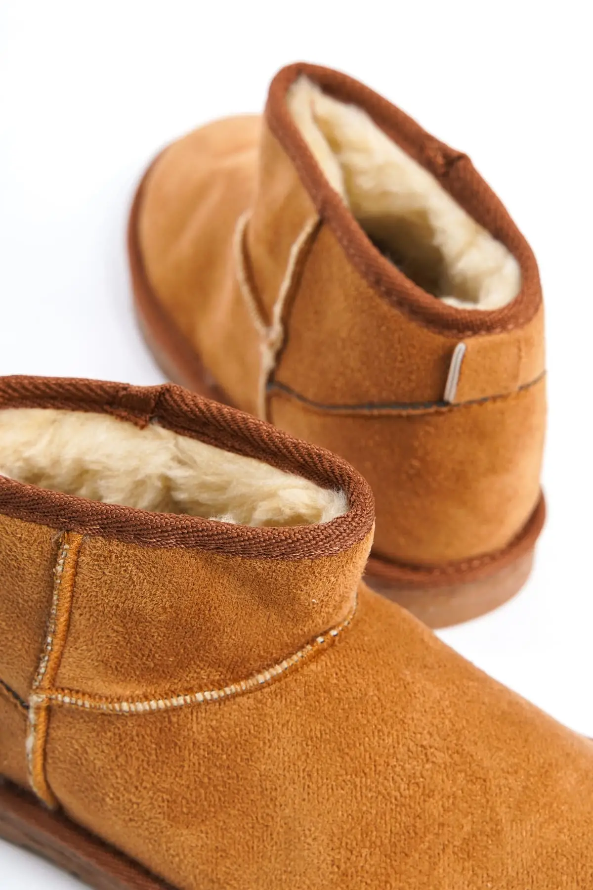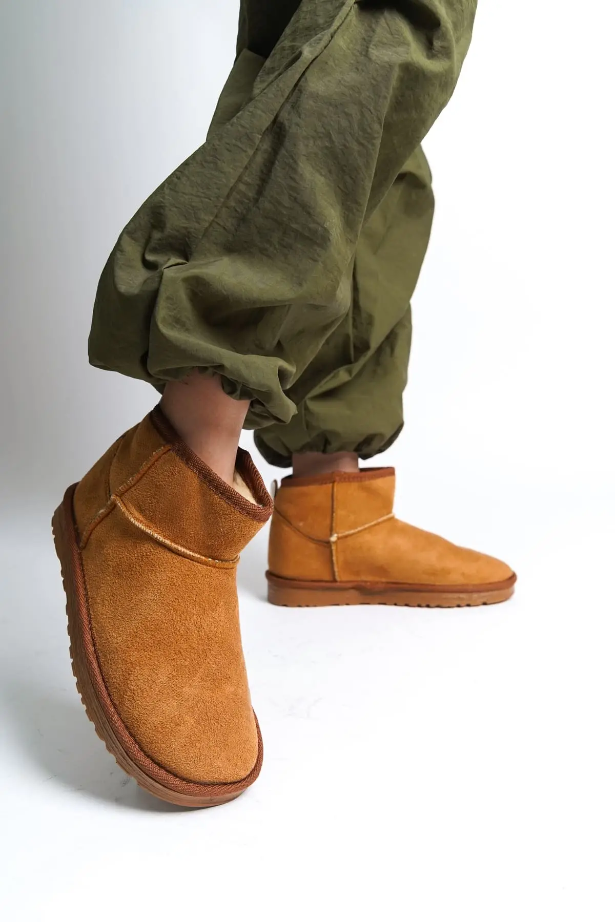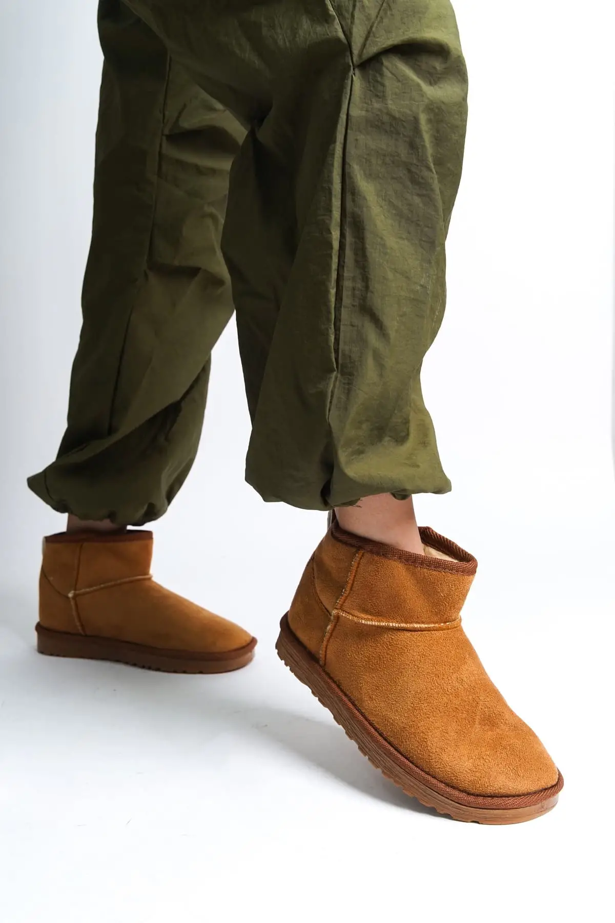 Jolıe Bağcıksız Düz Taban İçi Kürklü Kısa Süet Kadın Bot Tt - Taba