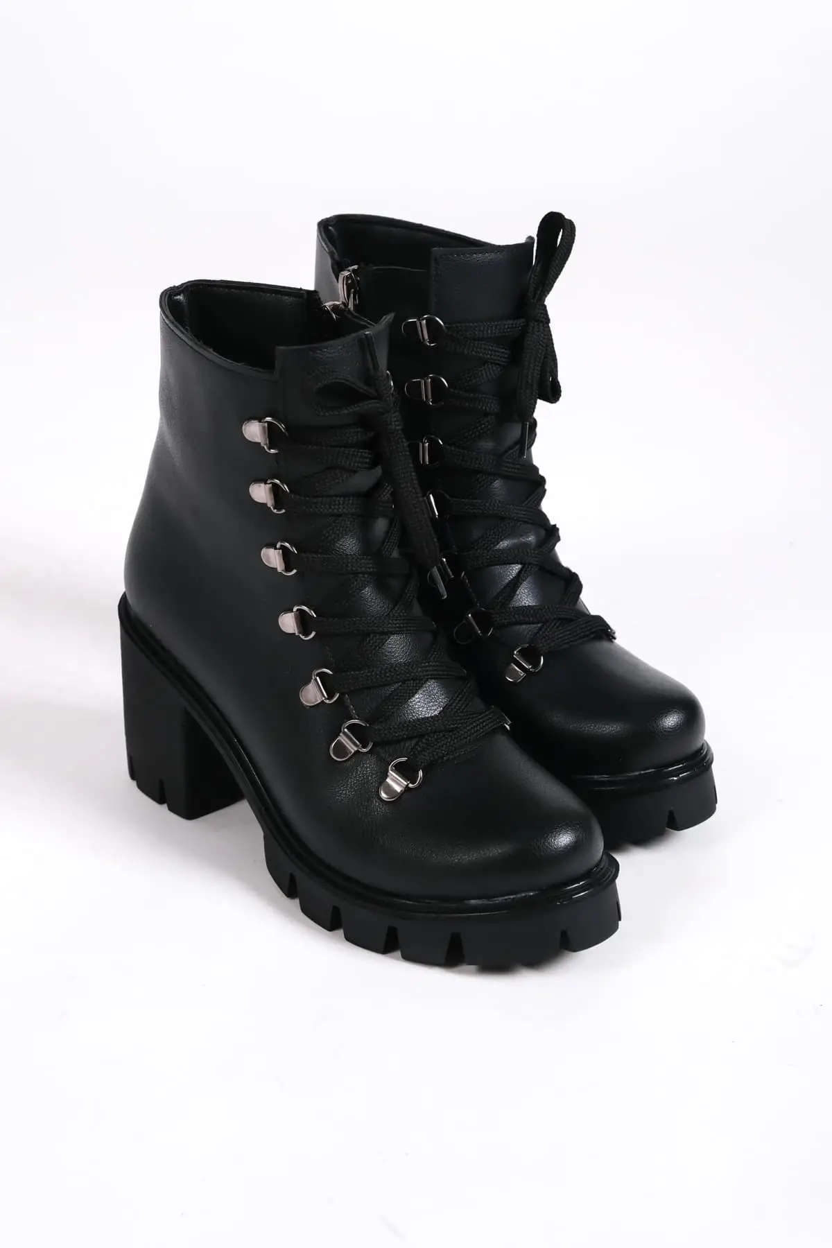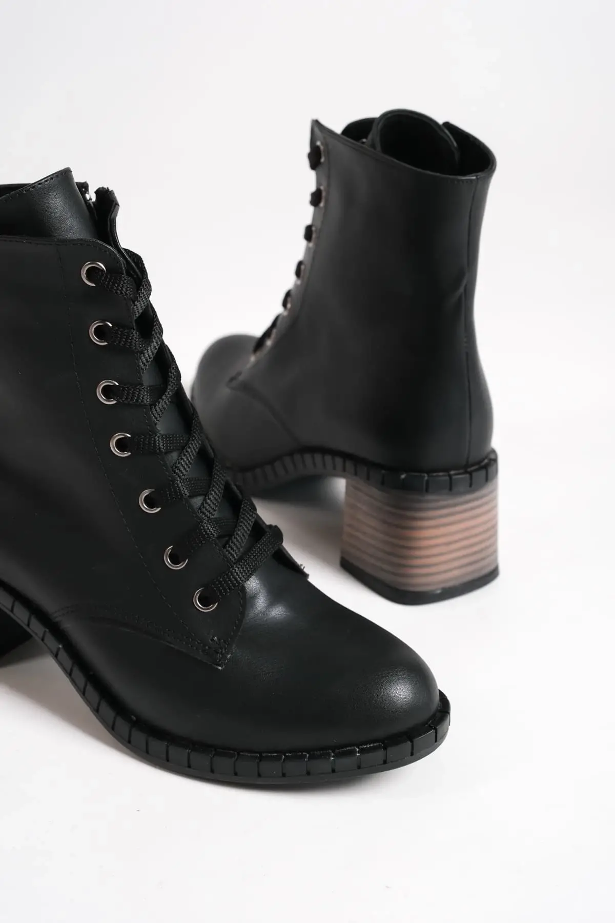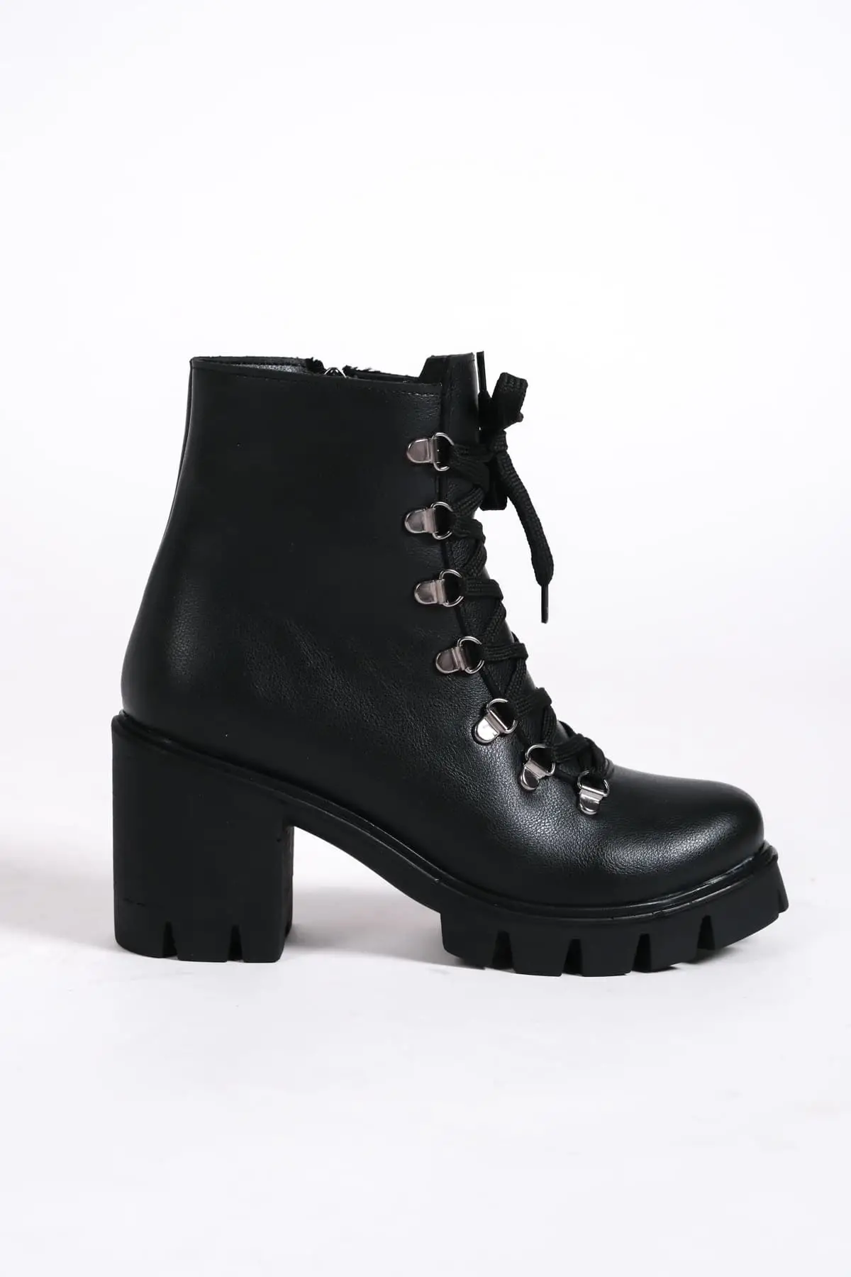Emma Bağcıklı Fermuarlı Ortopedik Taban Topuklukadın Bot St - Siyah