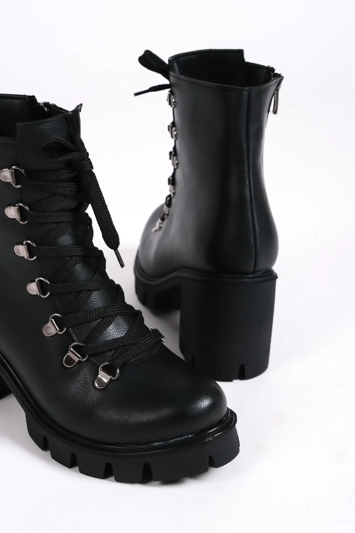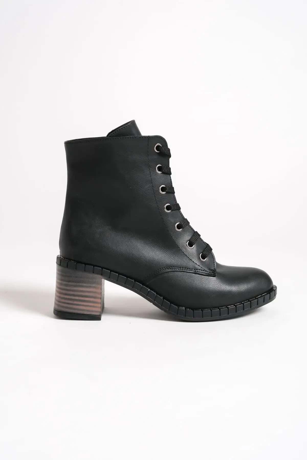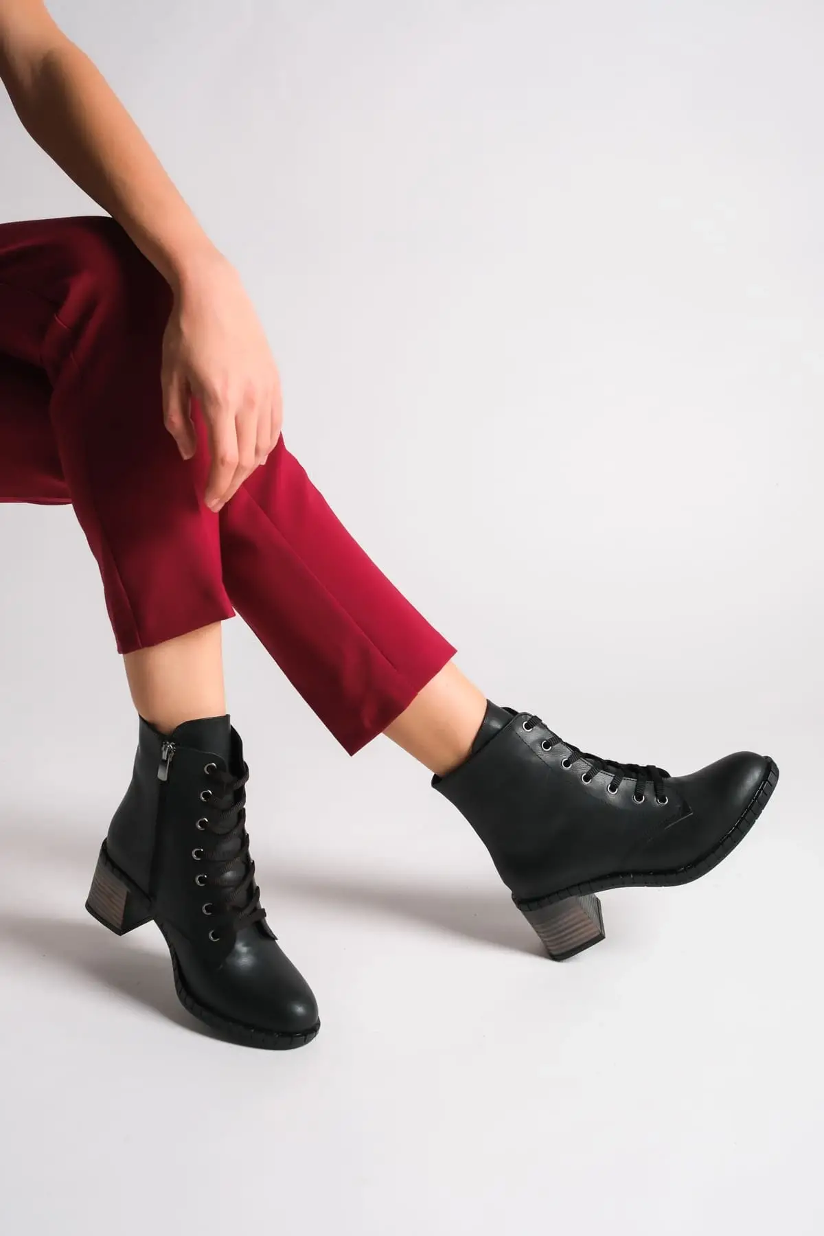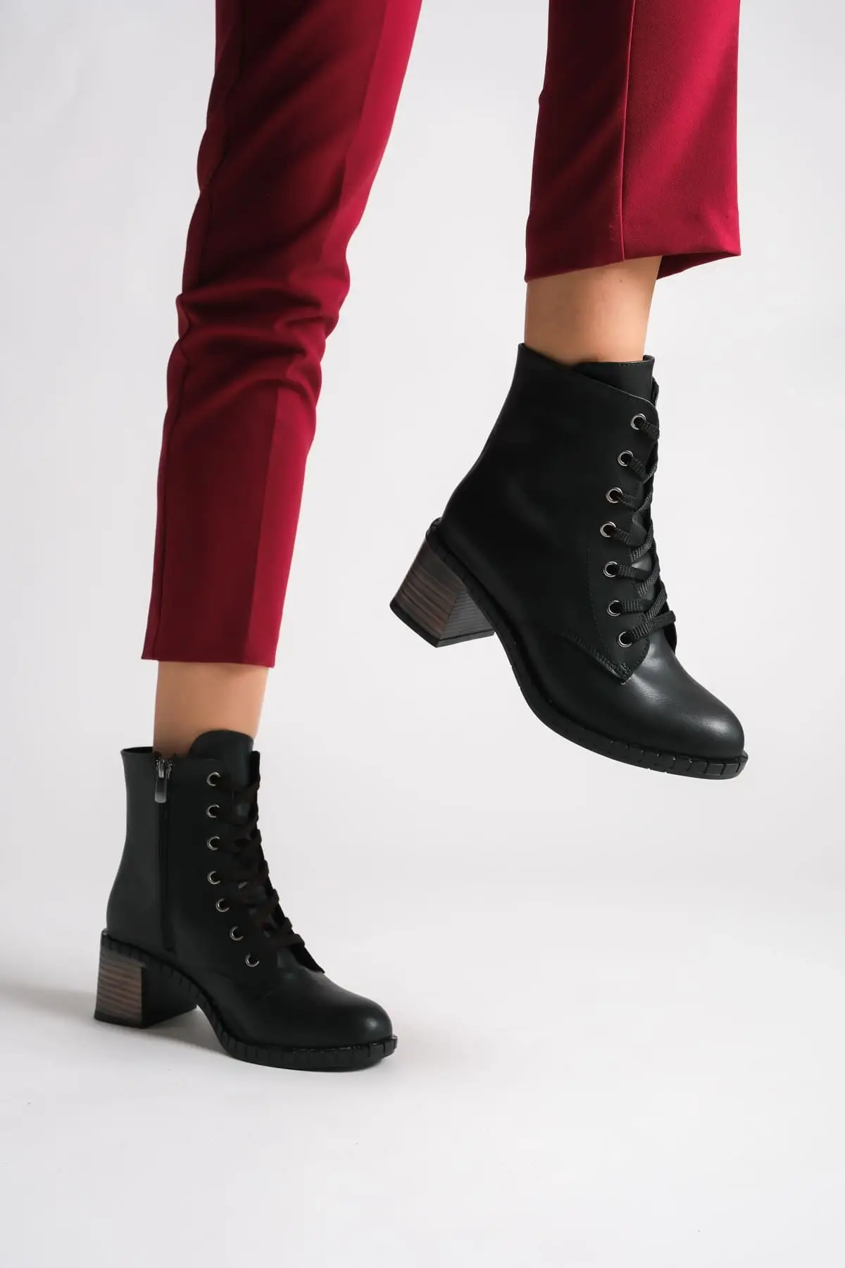 Emma Bağcıklı Fermuarlı Ortopedik Taban Topuklukadın Bot St - Siyah