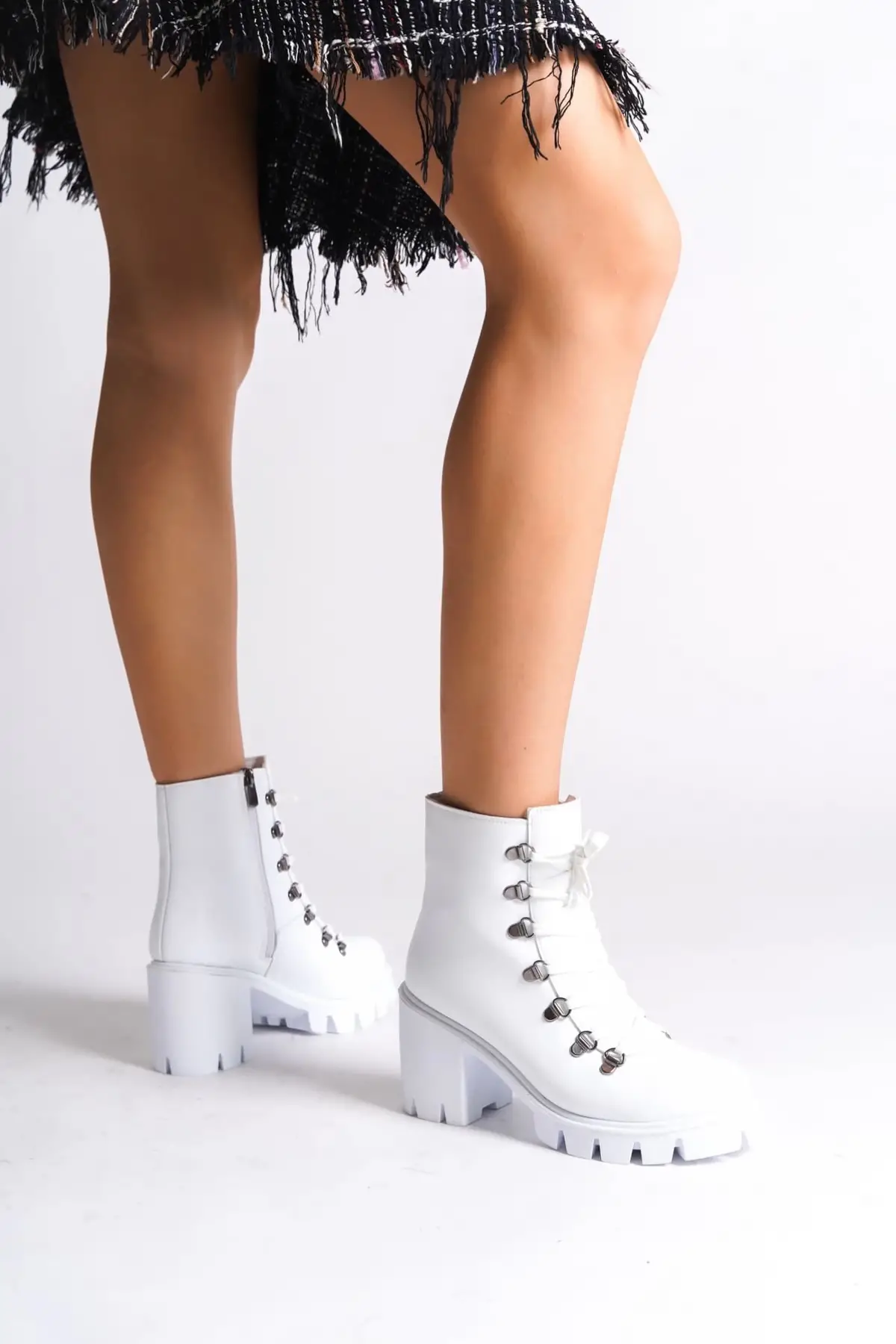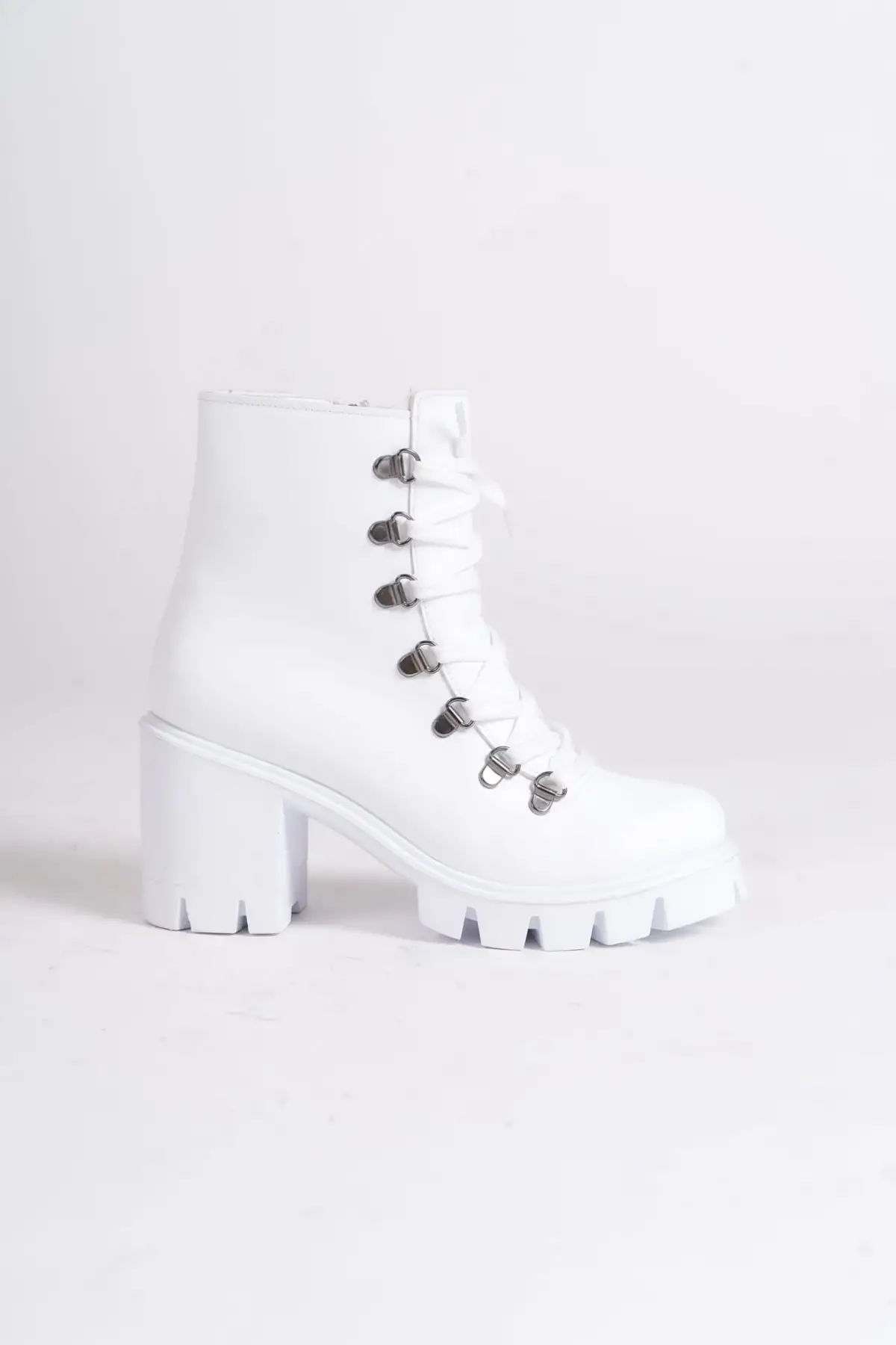 Emma Bağcıklı Fermuarlı Ortopedik Taban Topuklukadın Bot Bt - Beyaz