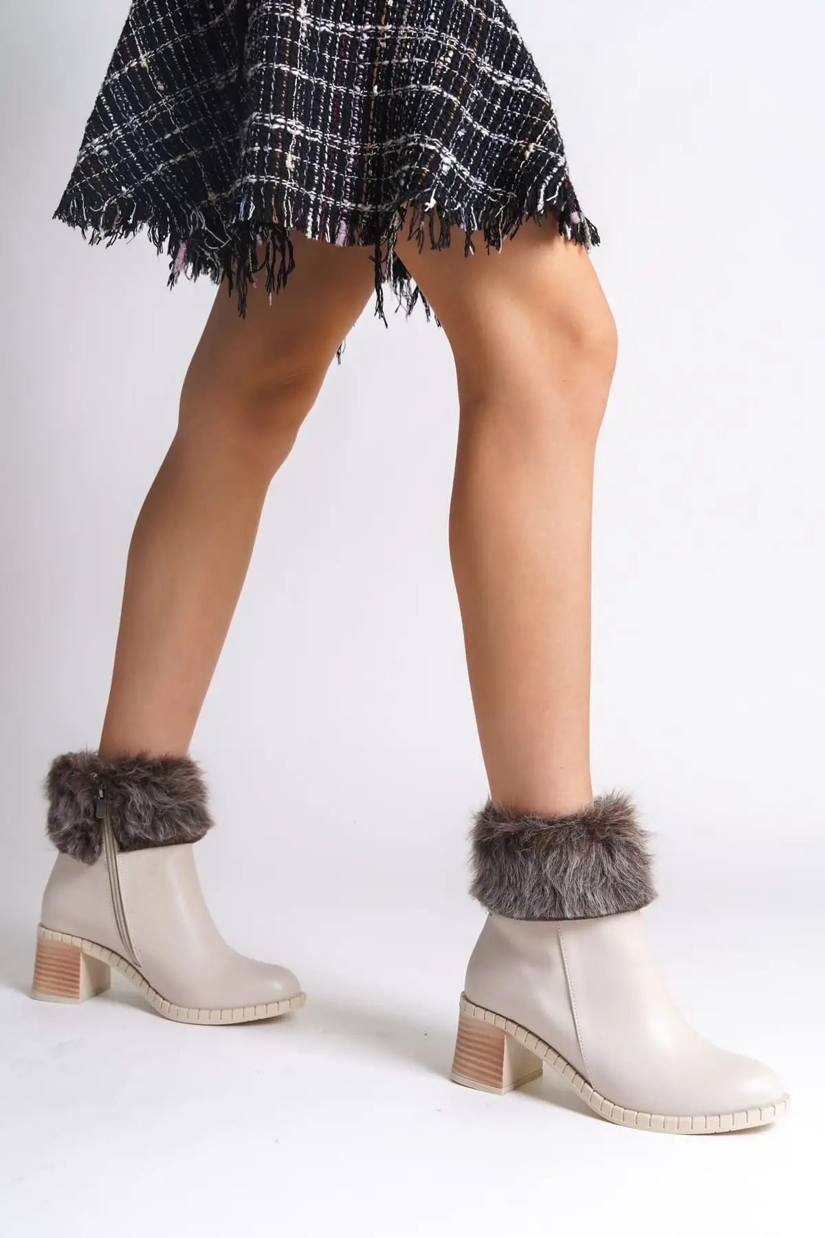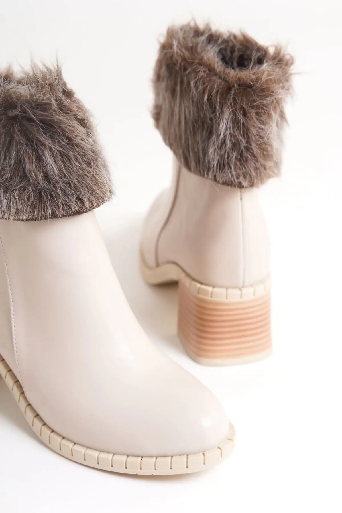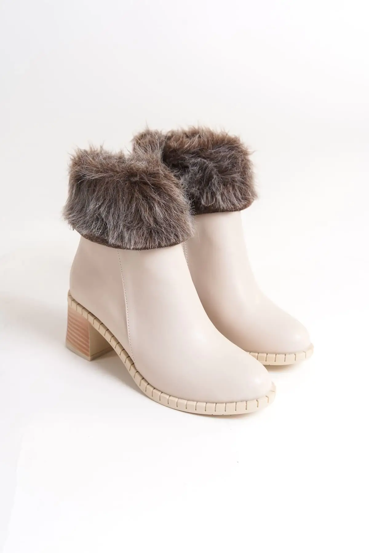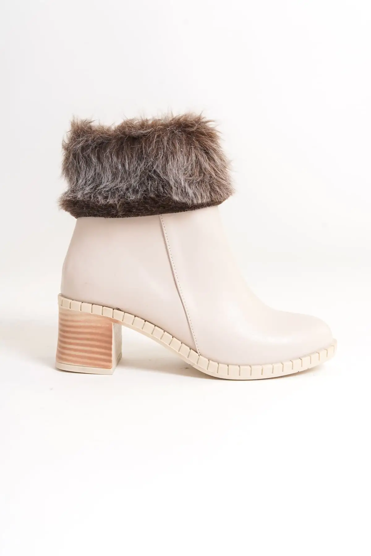 Julıa Fermuarlı Ortopedik Taban Tüylü Topuklu Kadın Bot Kt - Krem