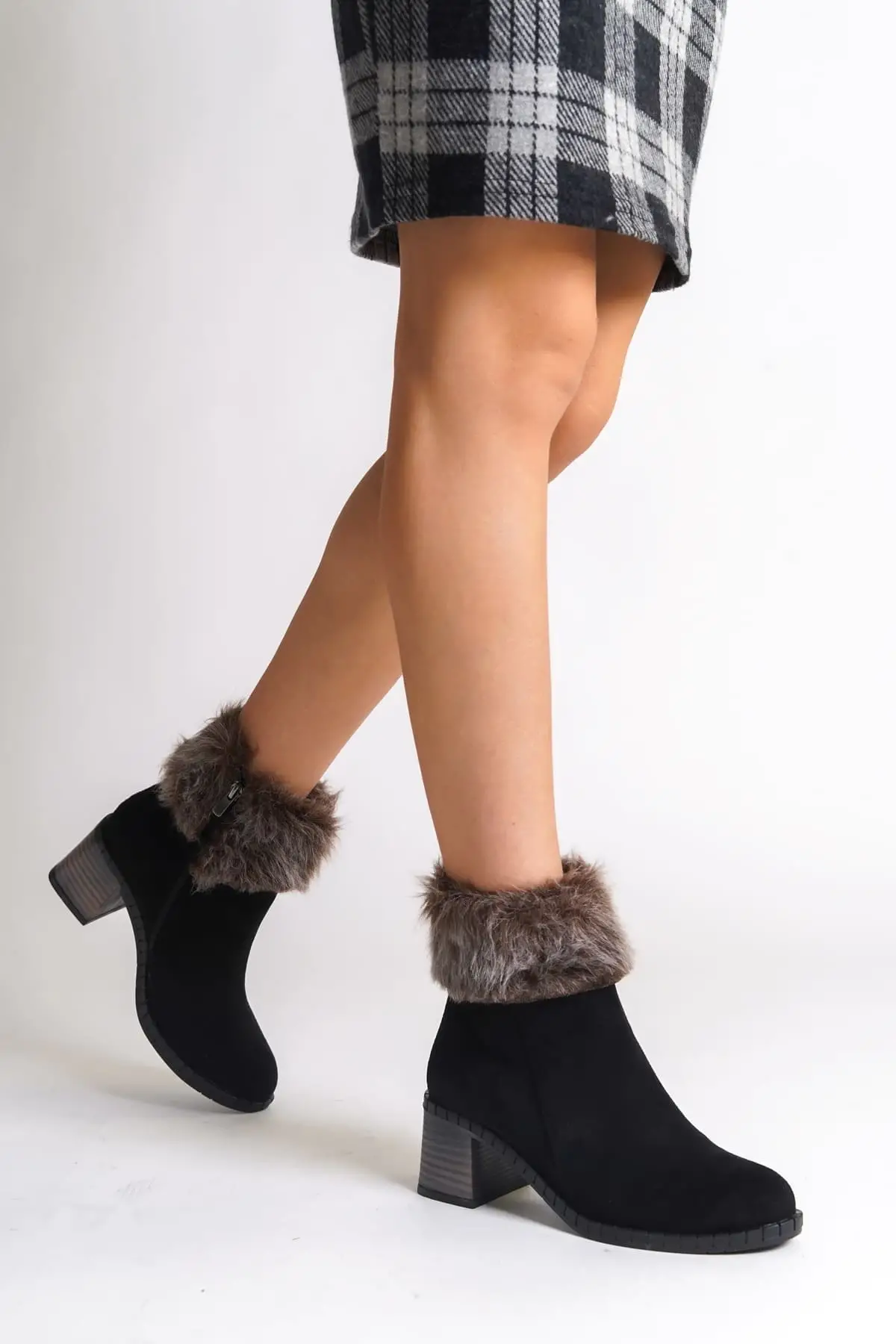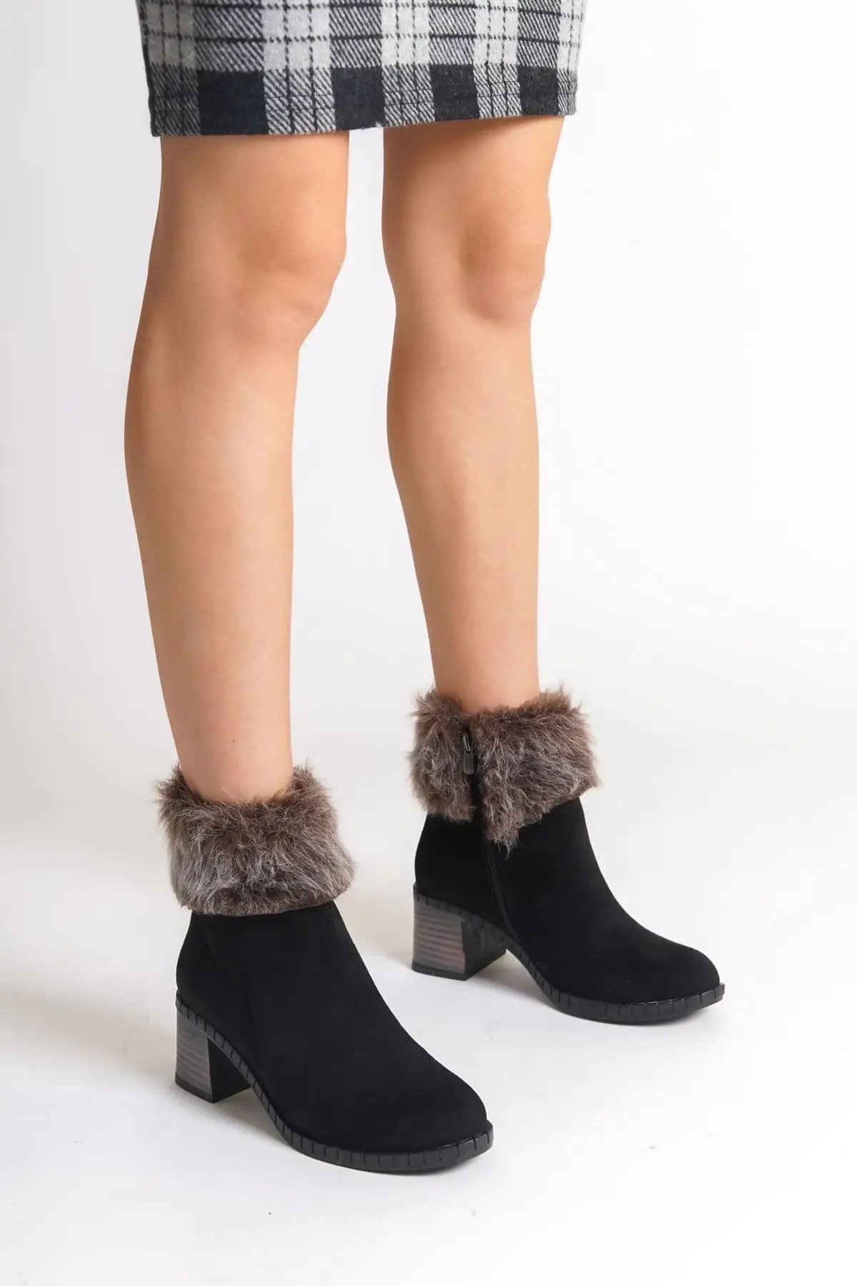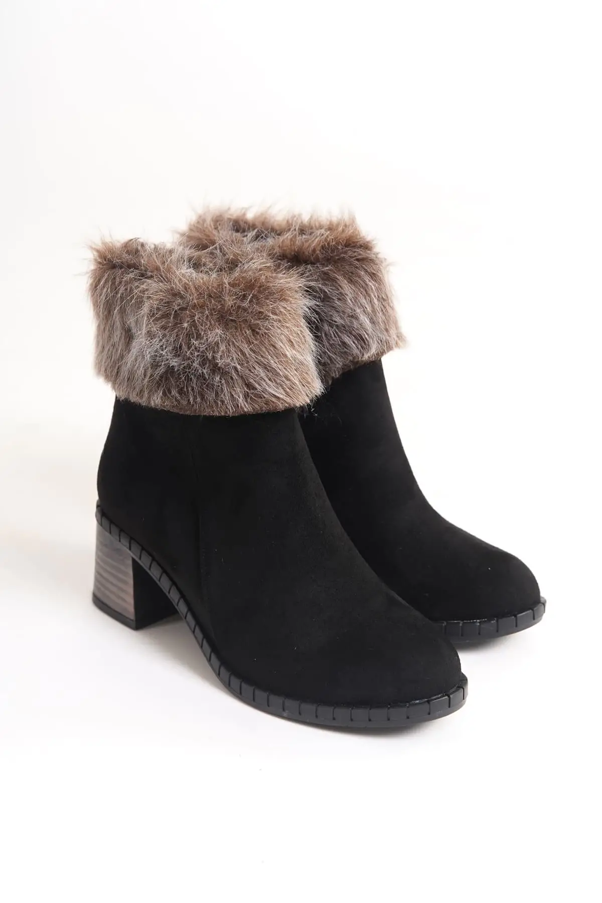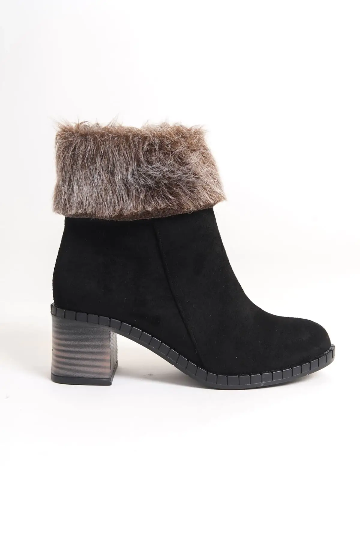 Julıa Fermuarlı Ortopedik Taban Tüylü Topuklu Süet Kadın Bot St - Siyah