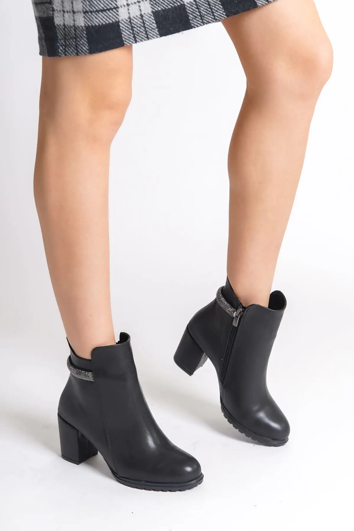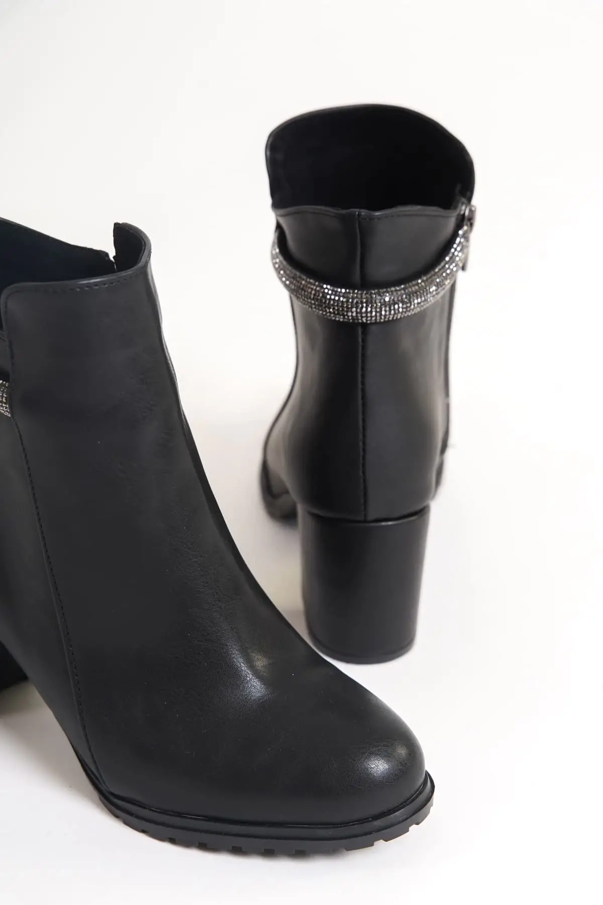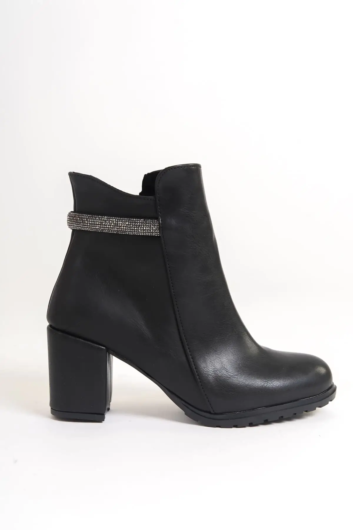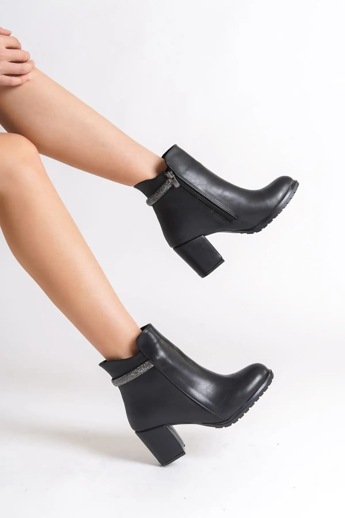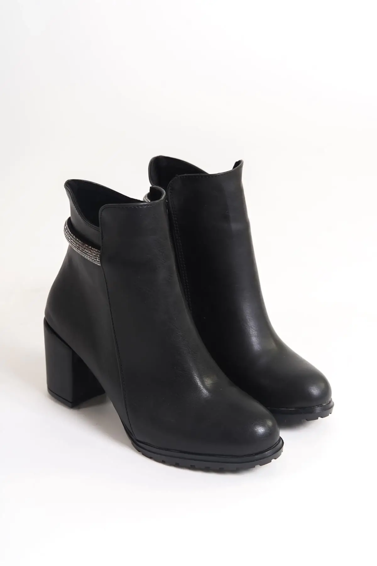 Lıa Fermuarlı Ortopedik Taban Taşlı Topuklu Kadın Bot St - Siyah