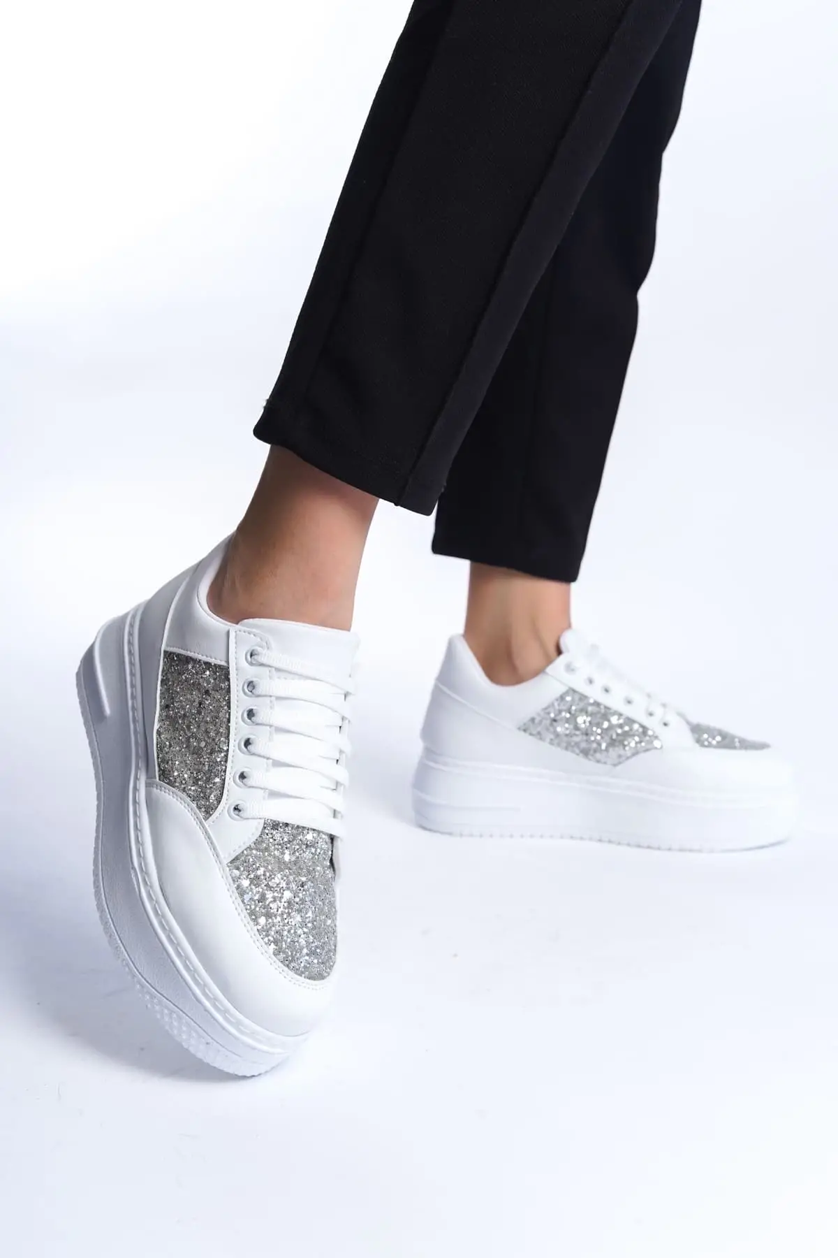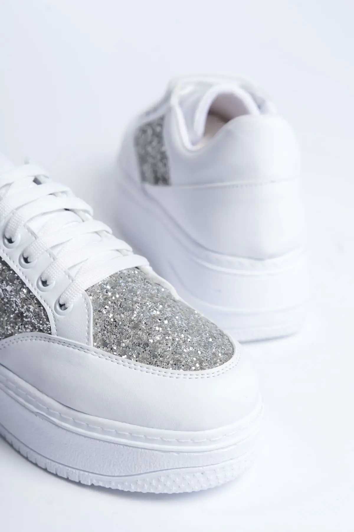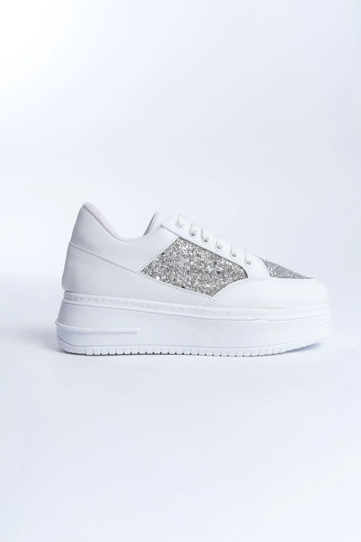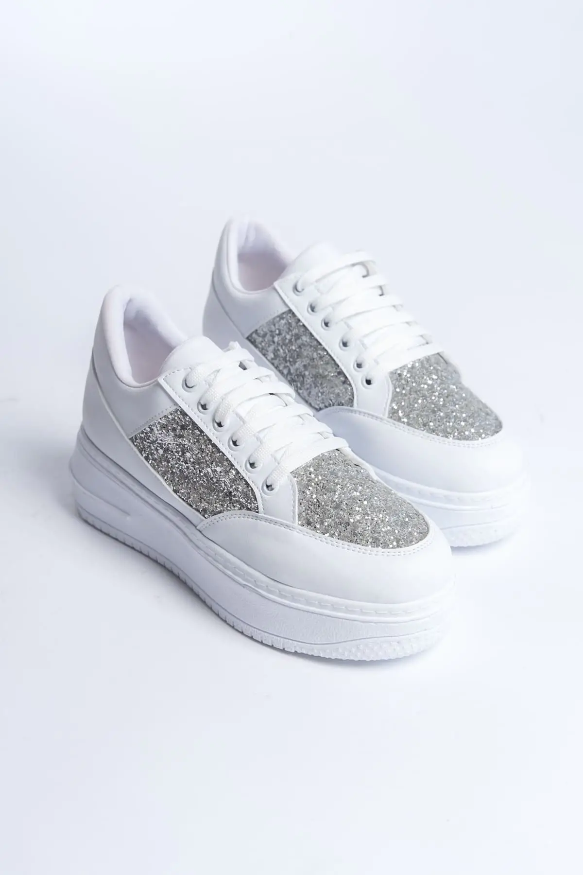 Mıpa Bağcıklı Ortopedik Taban Simli Kadın Sneaker Spor Ayakkabı Bt - Beyaz