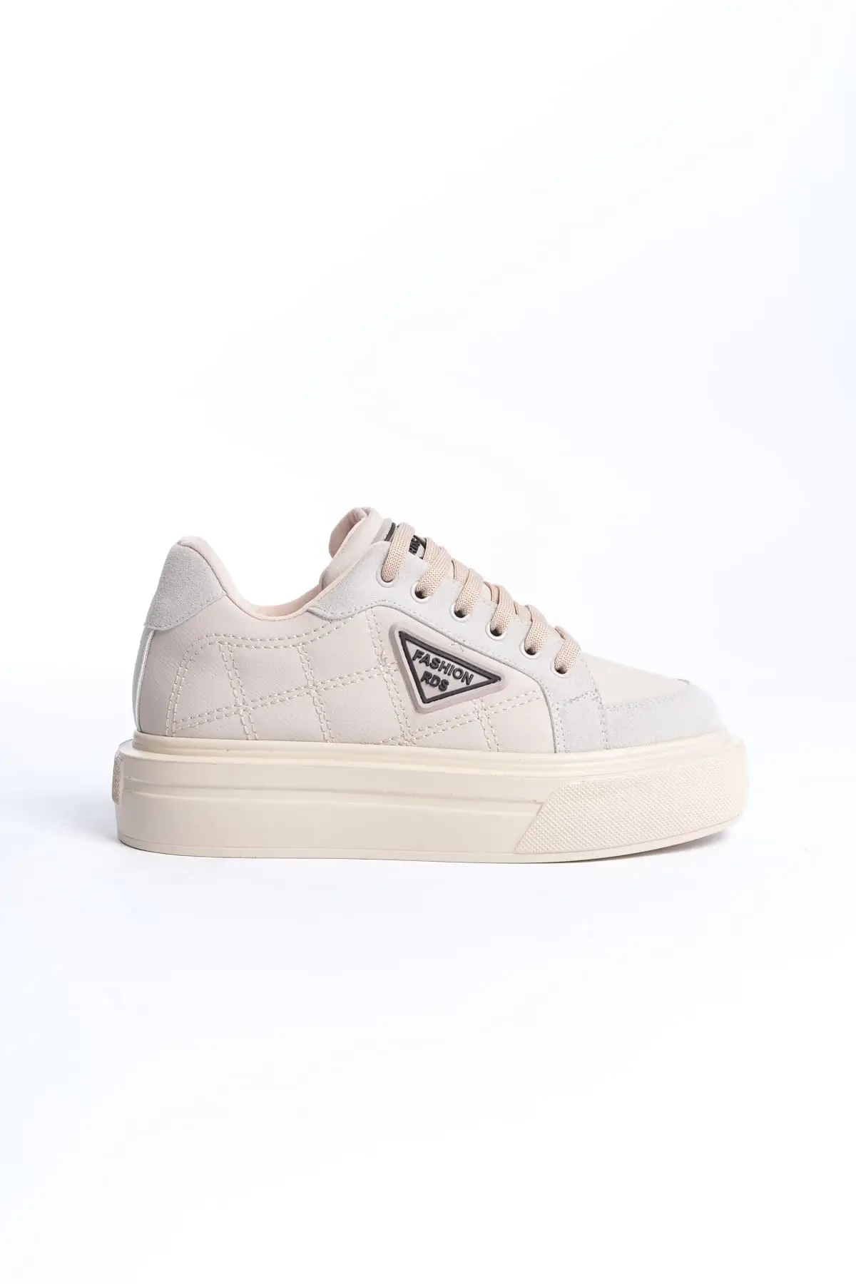 Prag Bağcıklı Ortopedik Taban Desenli Kadın Sneaker Spor Ayakkabı Kt - Krem